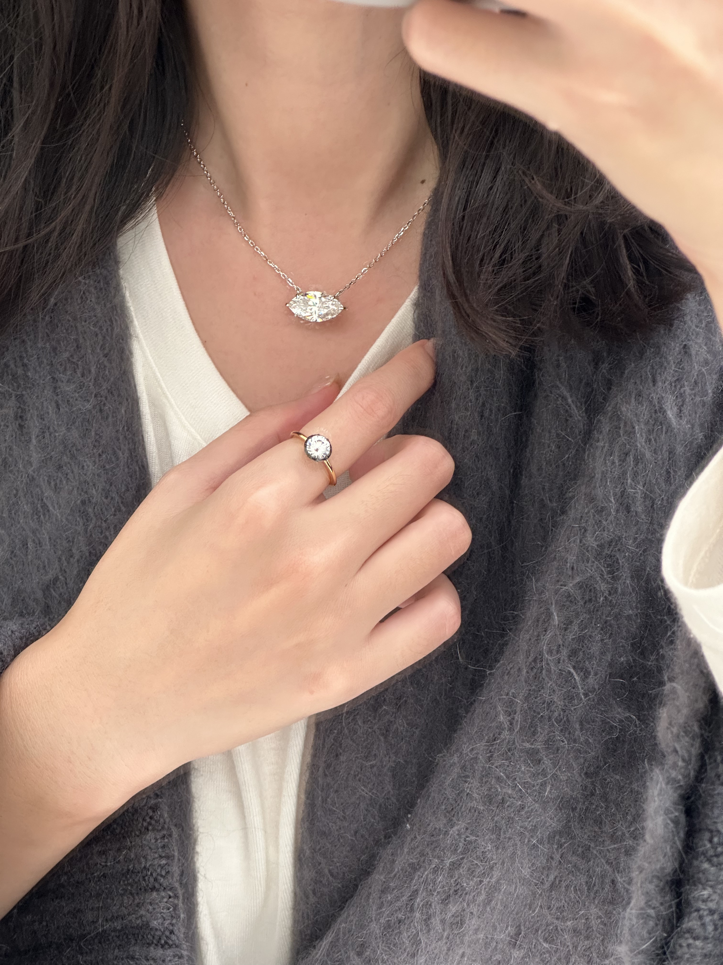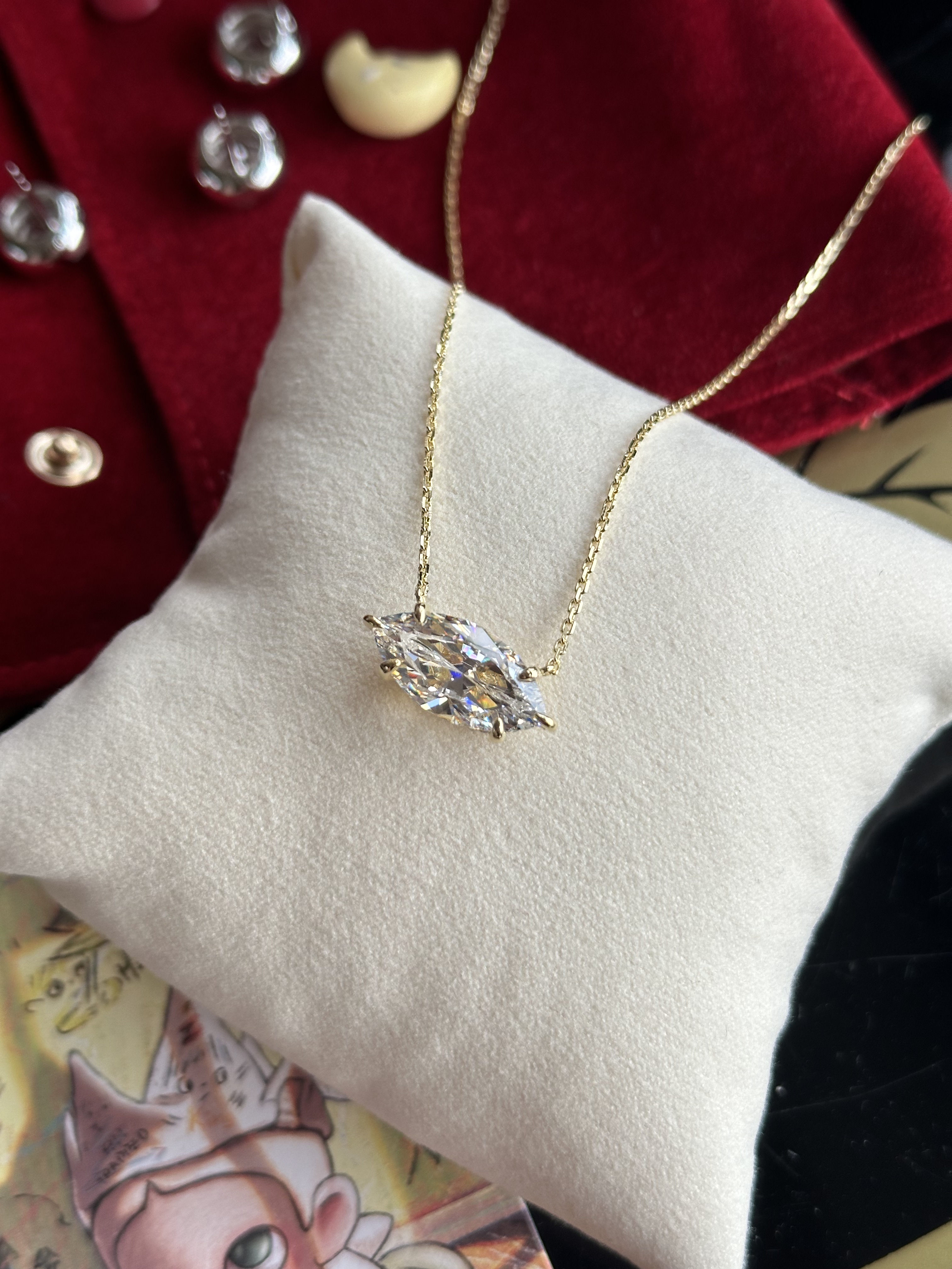 Silver Pistal Elegant and Luxurious 7 Carat g Color Marquise Diamond Necklace S925 Silver Plated with White Gold