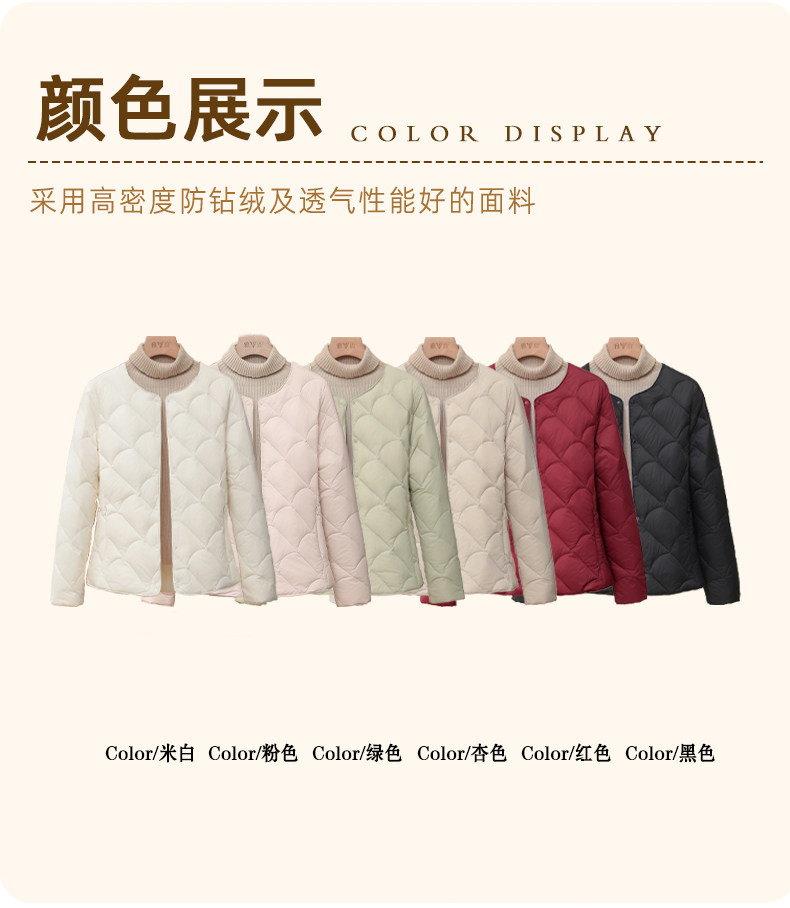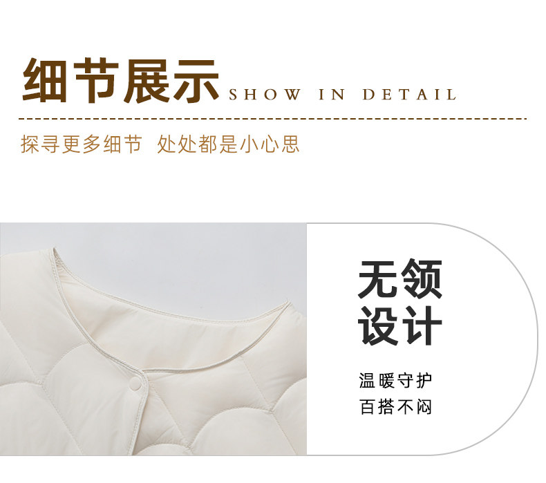 Yalu 2025 Autumn/Winter New Lightweight down Jacket for Women, Collarless, Slim Fit, Warm, Windproof, Fish Scale Pattern Inner Lining Coat