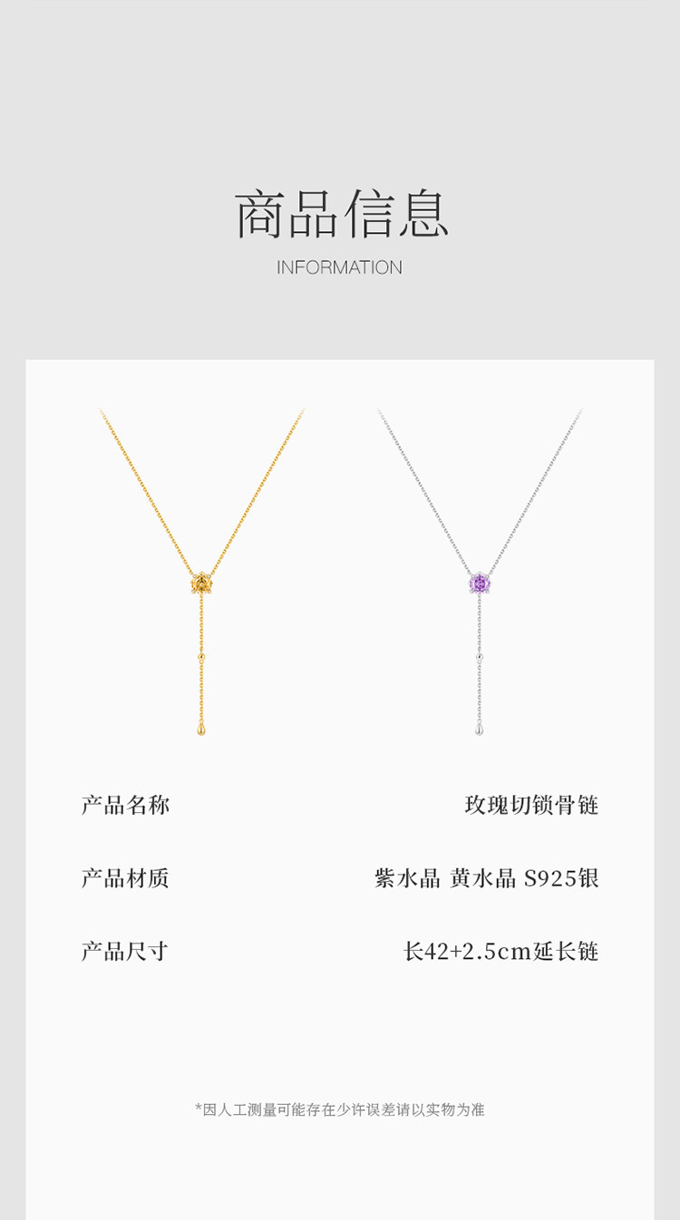 iSTONE Rose Cut White Crystal Necklace Topaz Sterling Silver Light Luxury High-End Amethyst Necklace