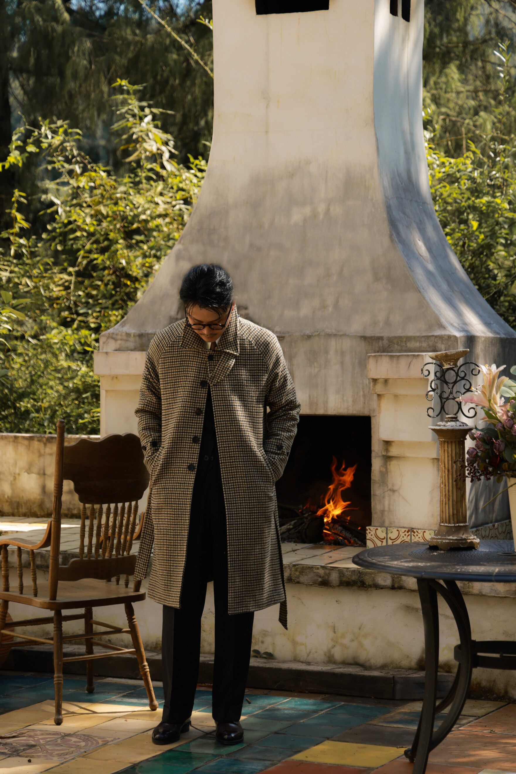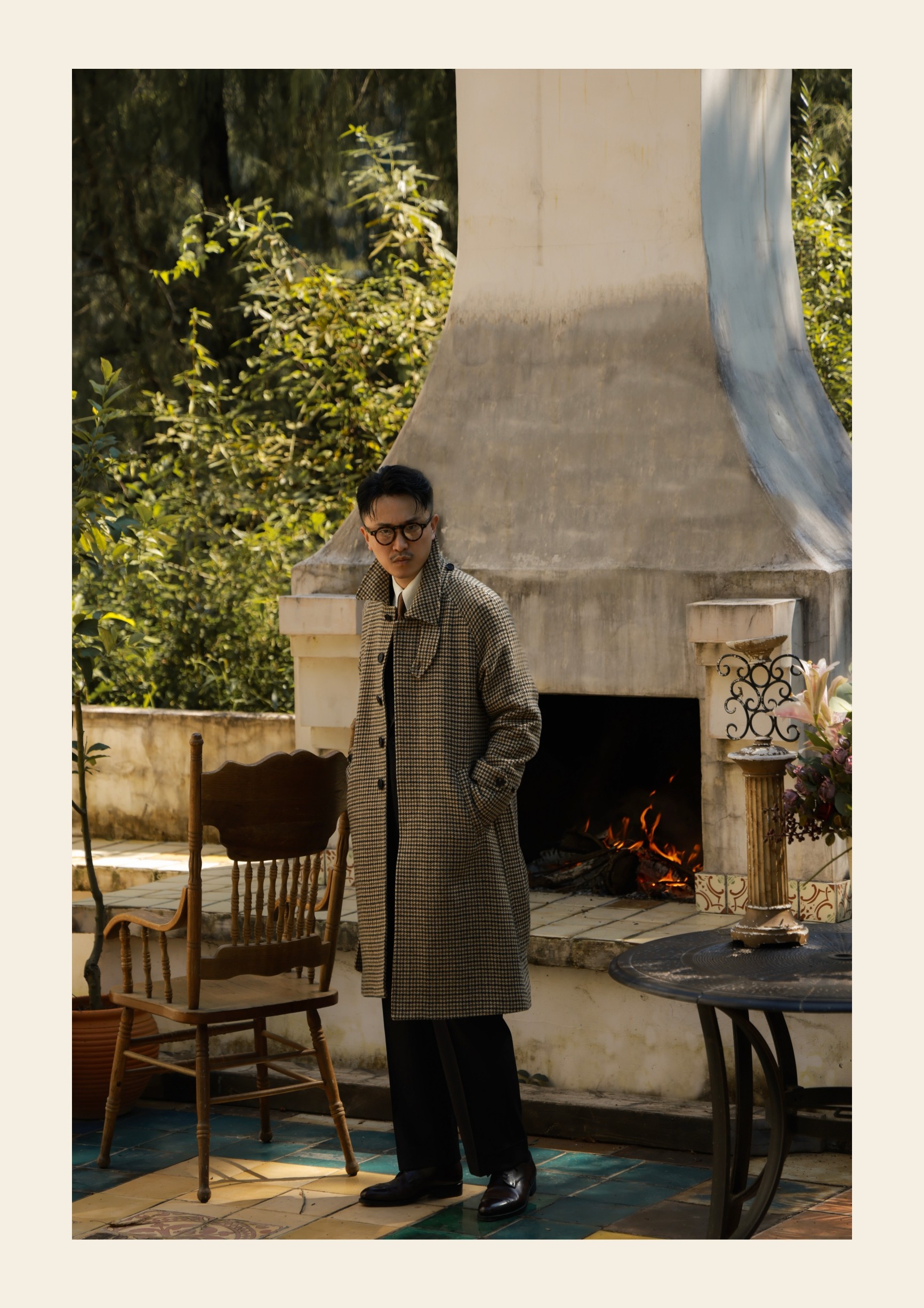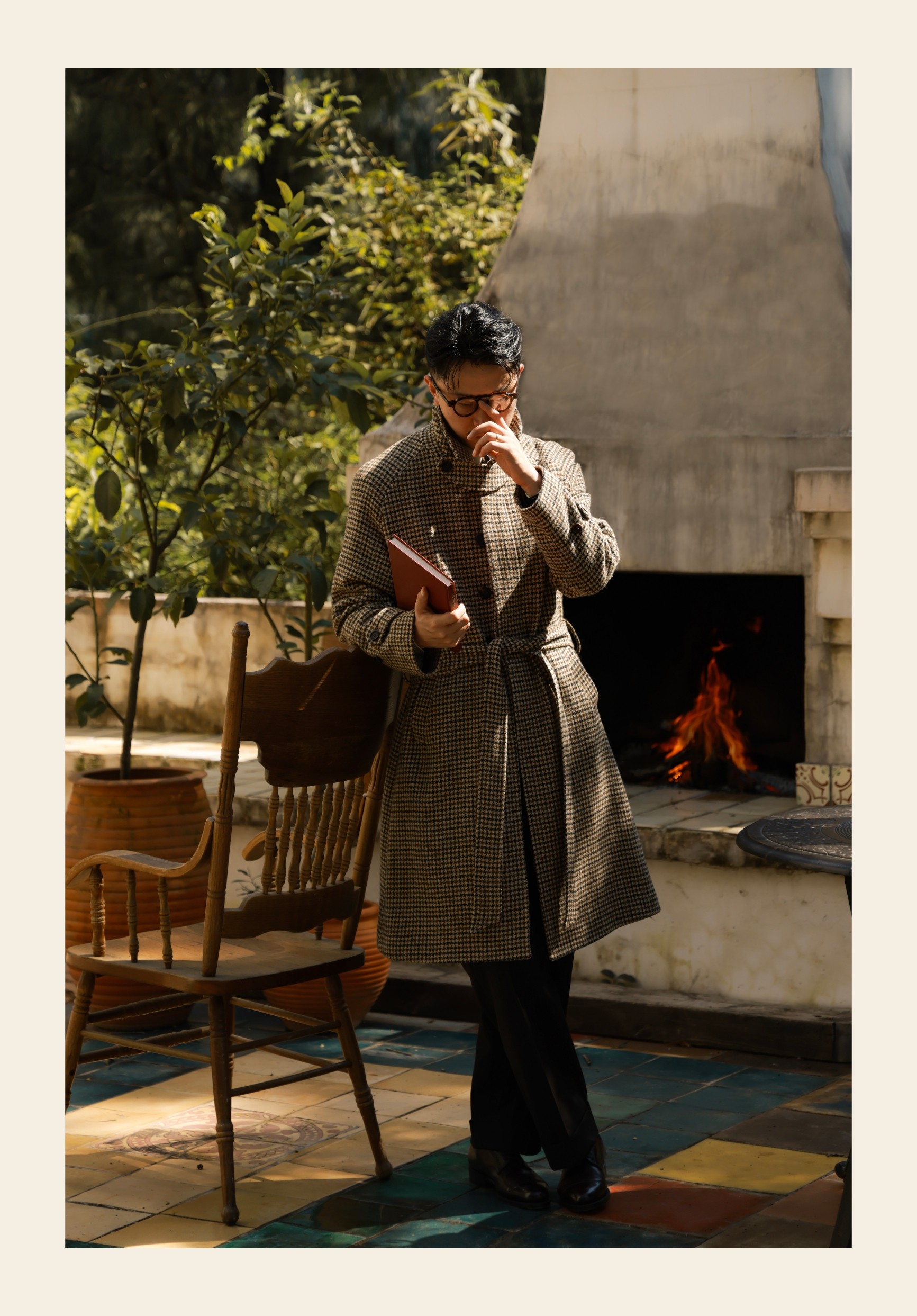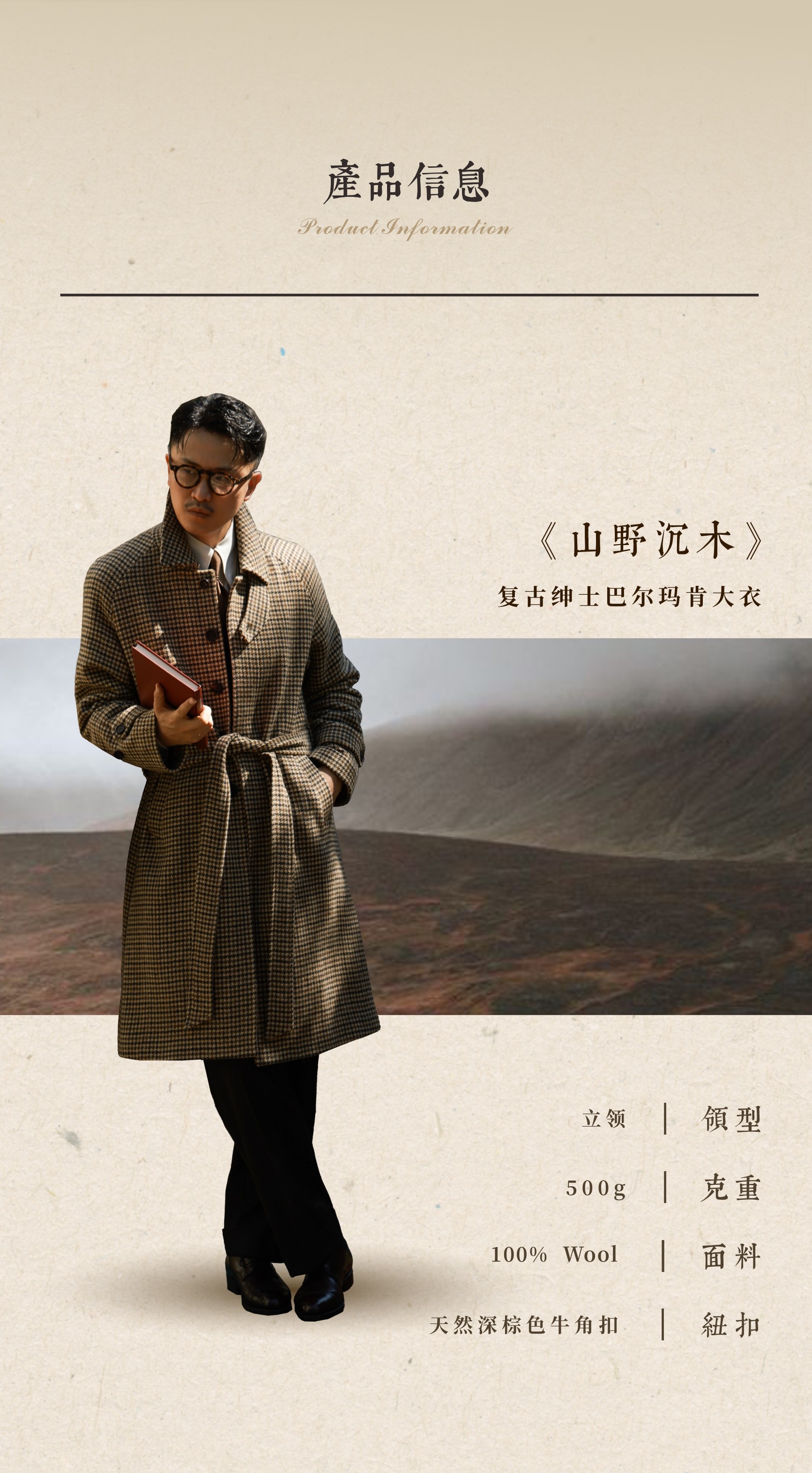 Ugentle Men's Winter Pure Wool'Mountain Driftwood' Coarse Wool Single-Breasted Balmacon Coat