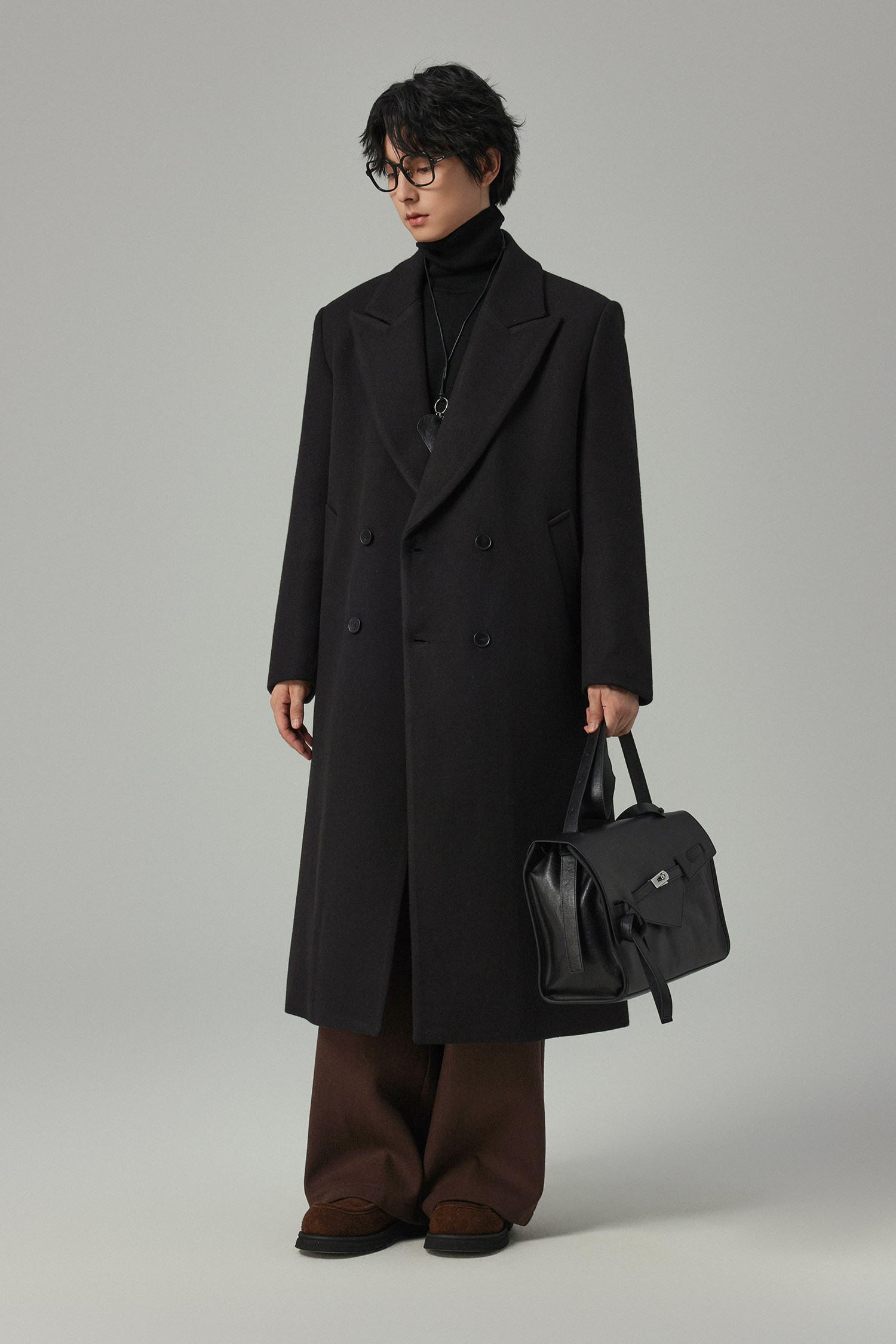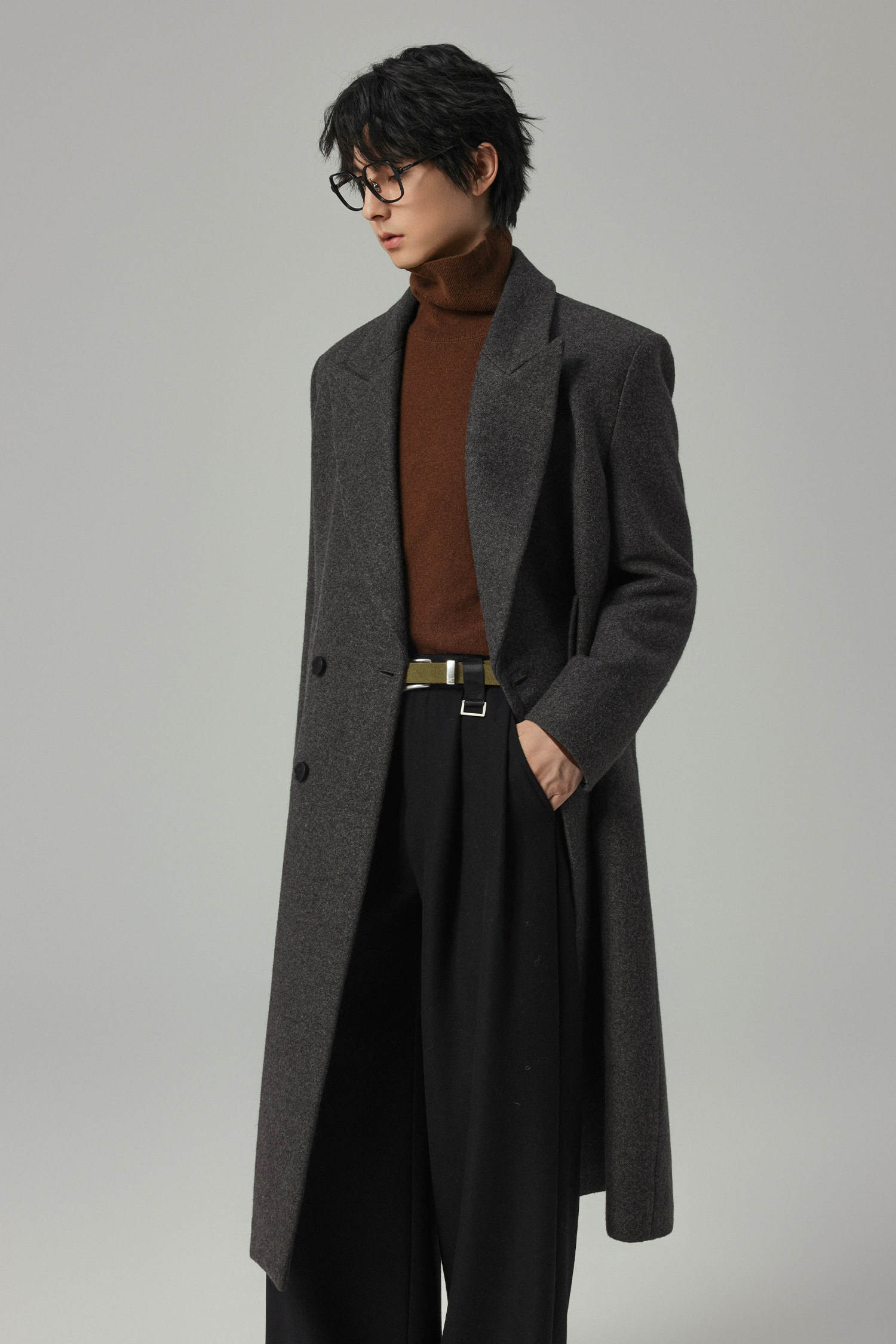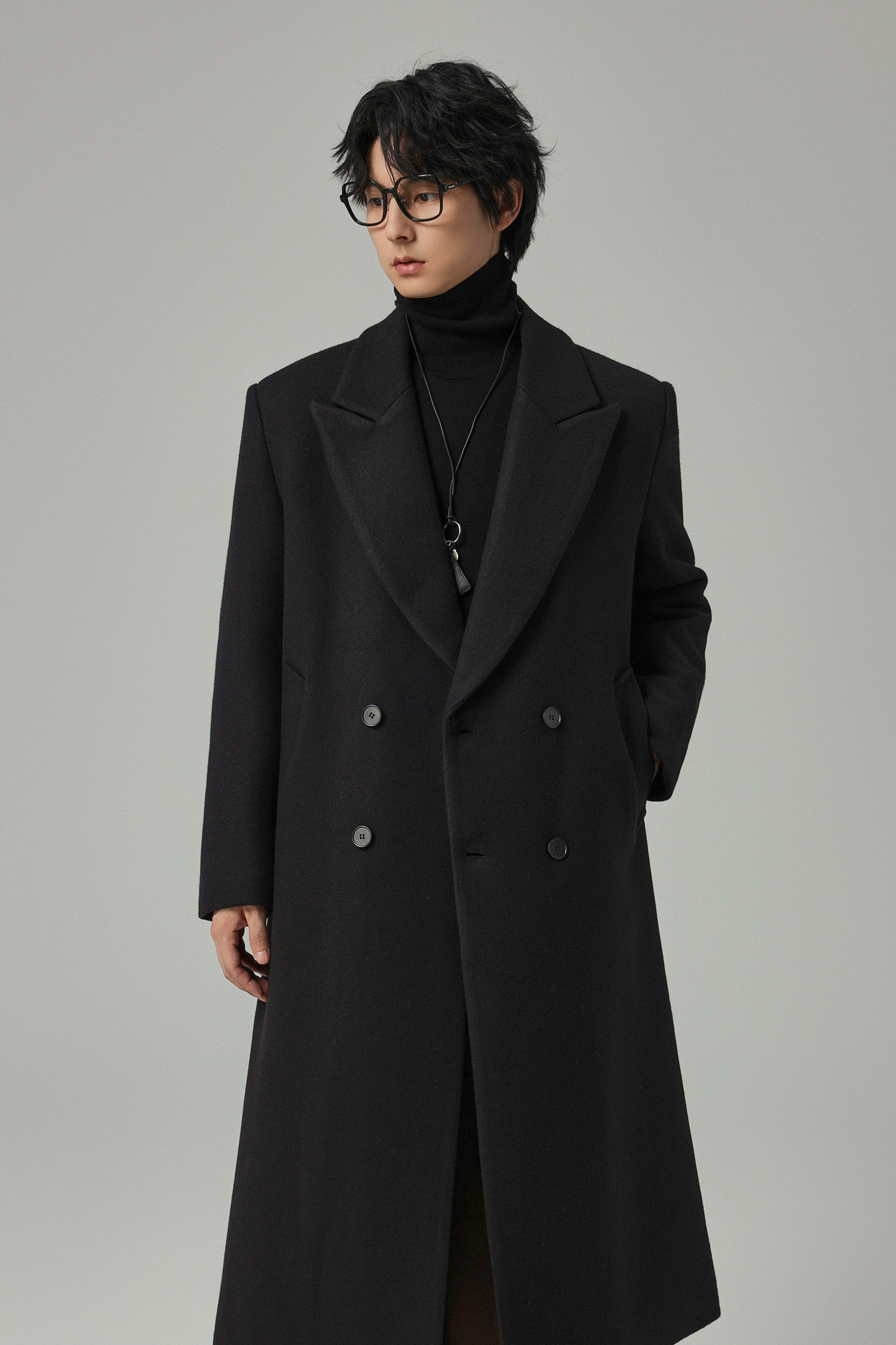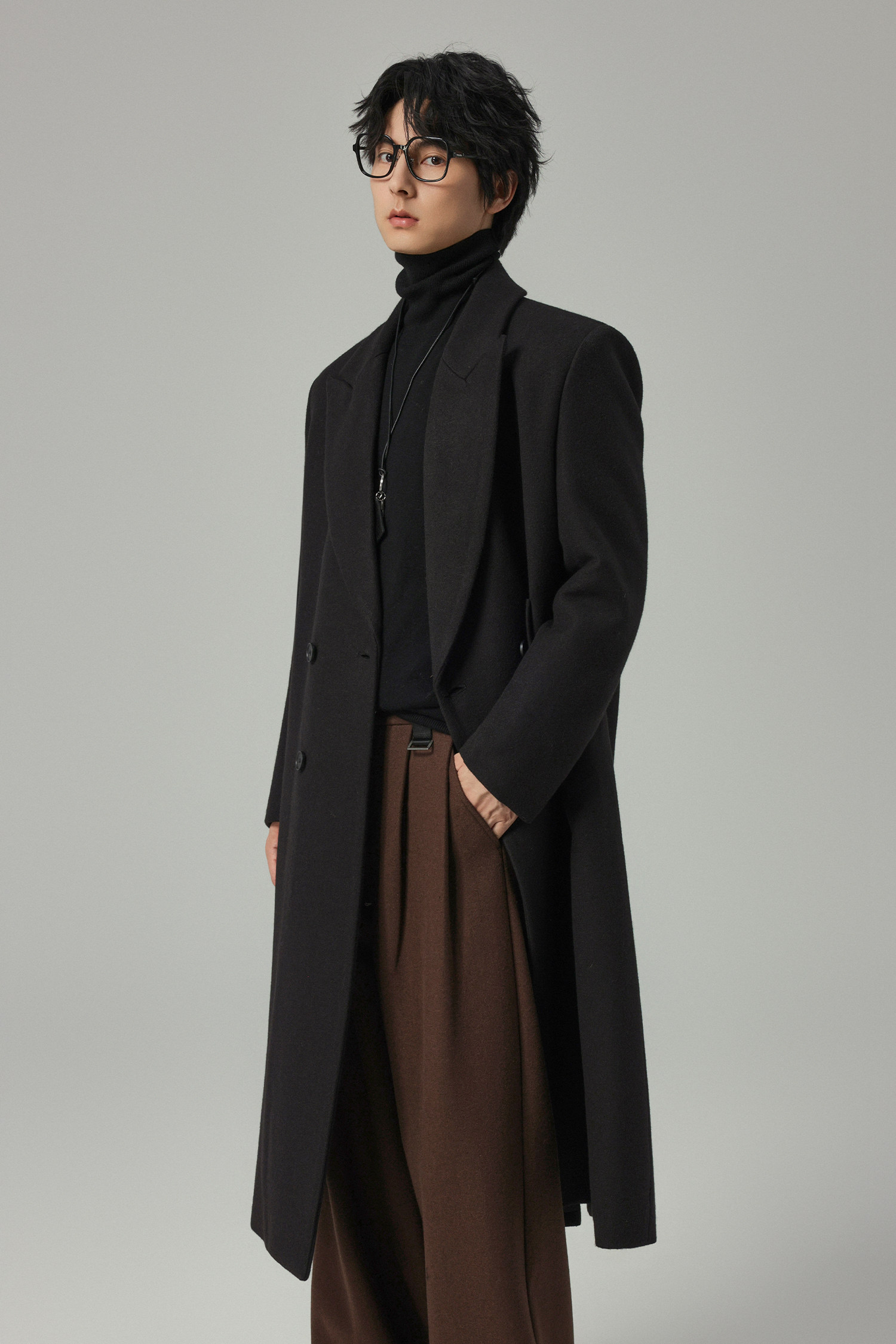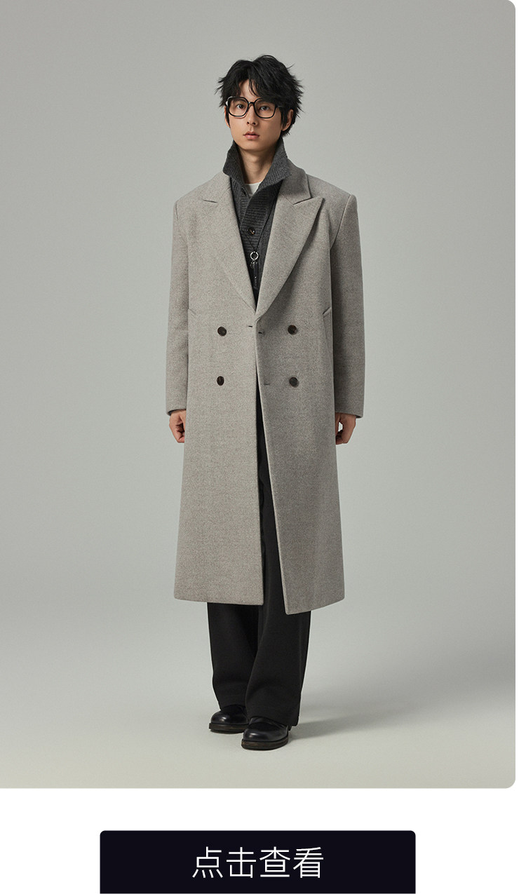 【Storage】Men's Woolen Coat, Mid-Length, Stylish, Thick, Old Money Style, Casual Jacket, Retro Trench Coat with Peaked Lapel