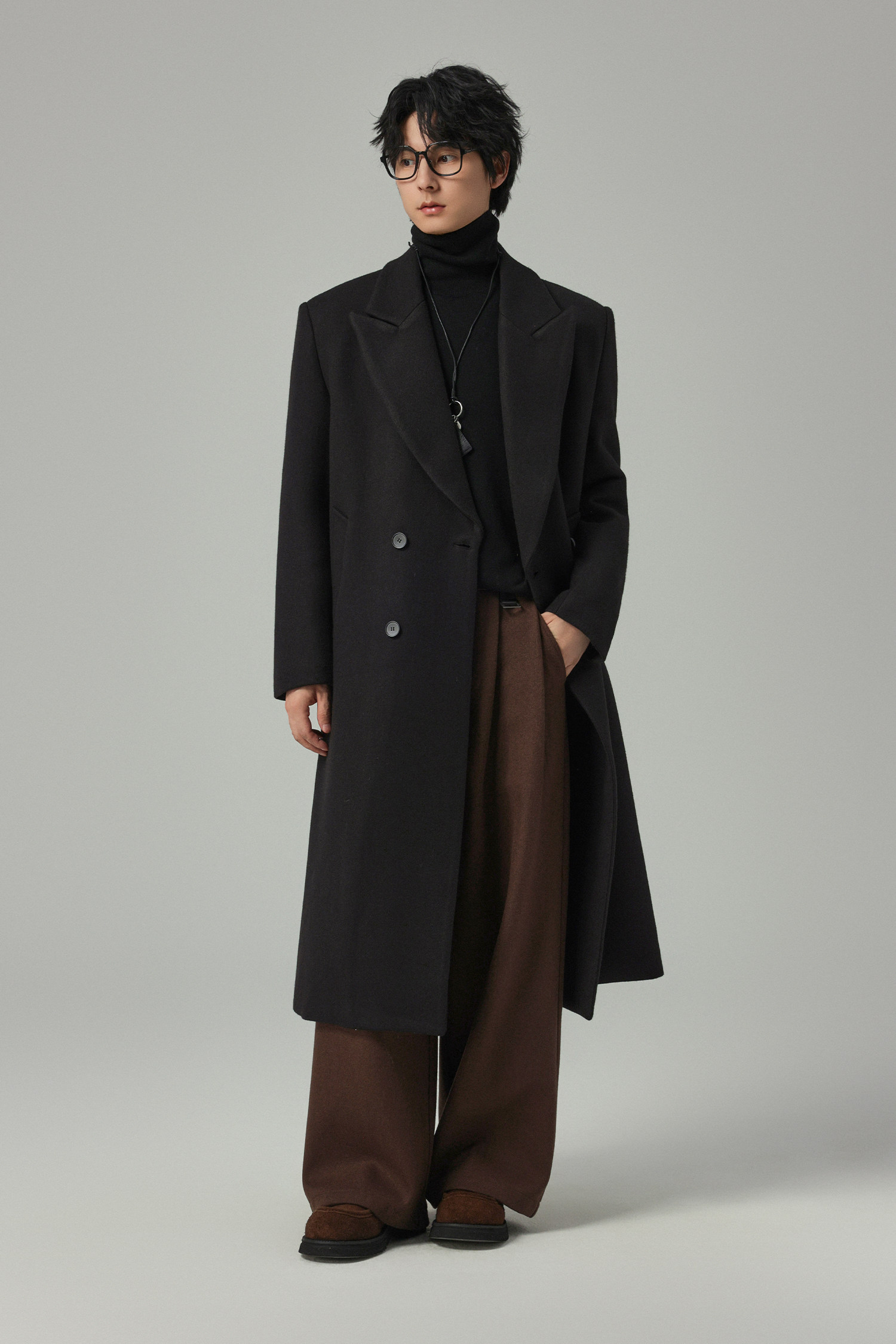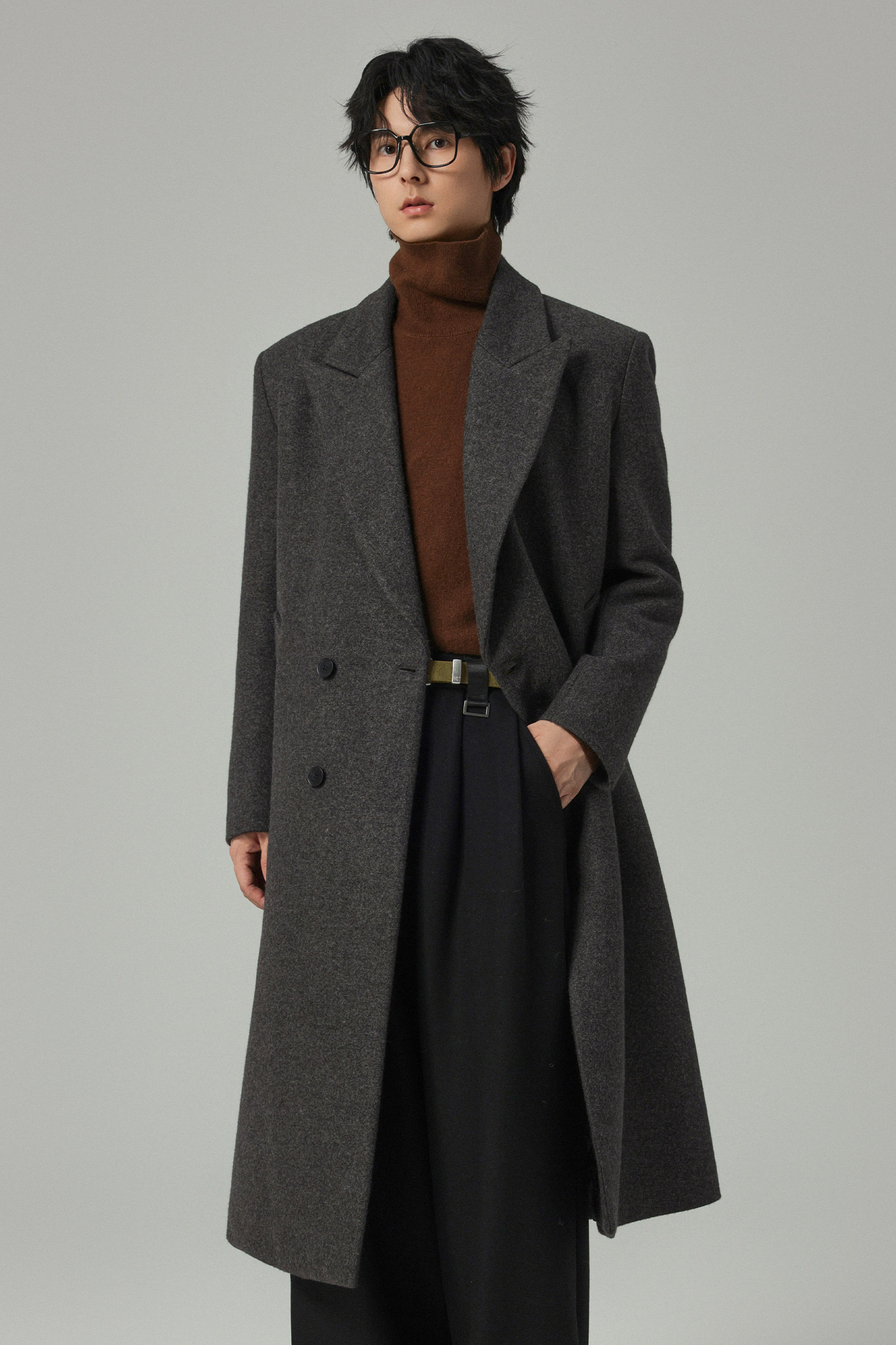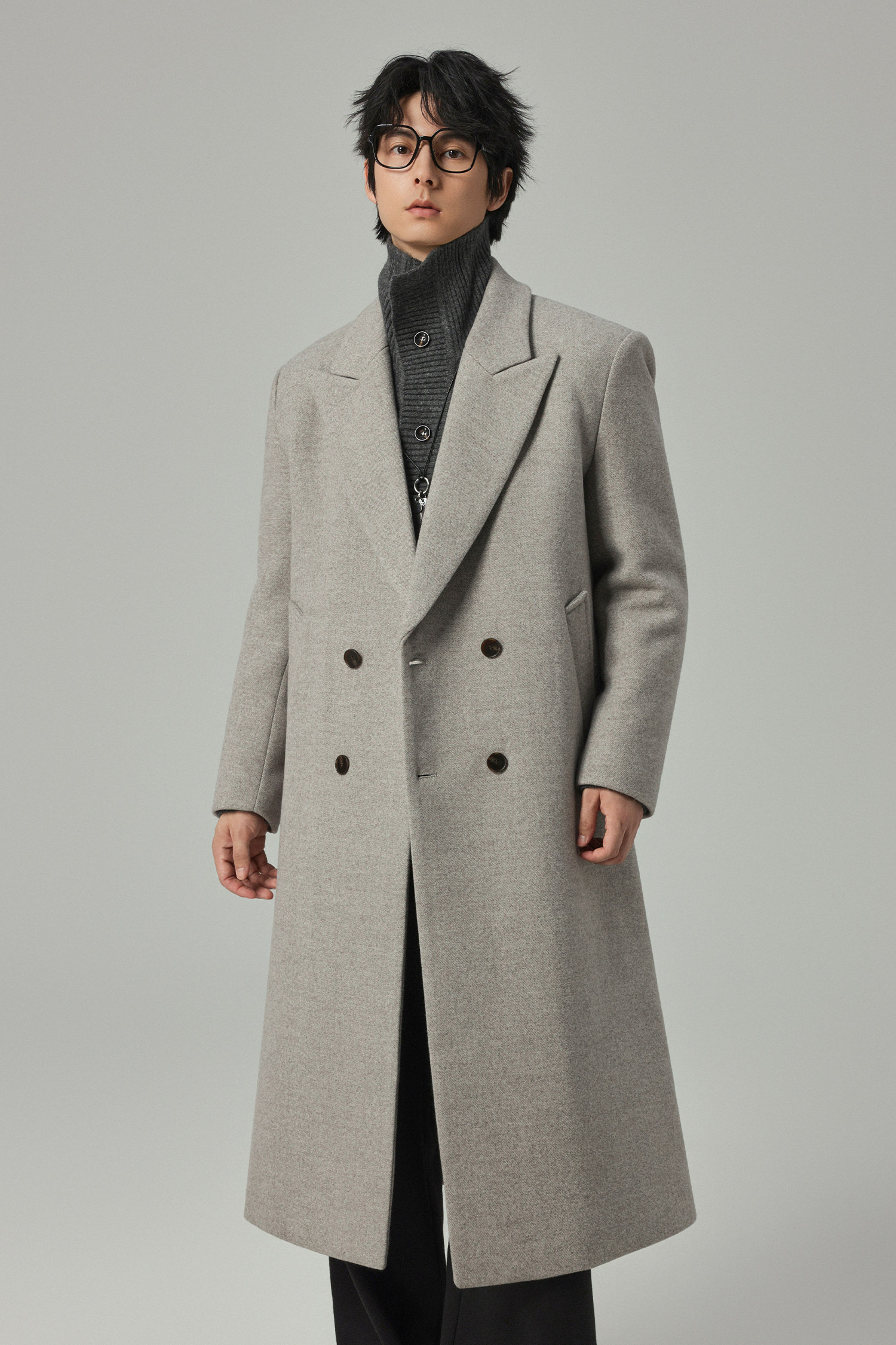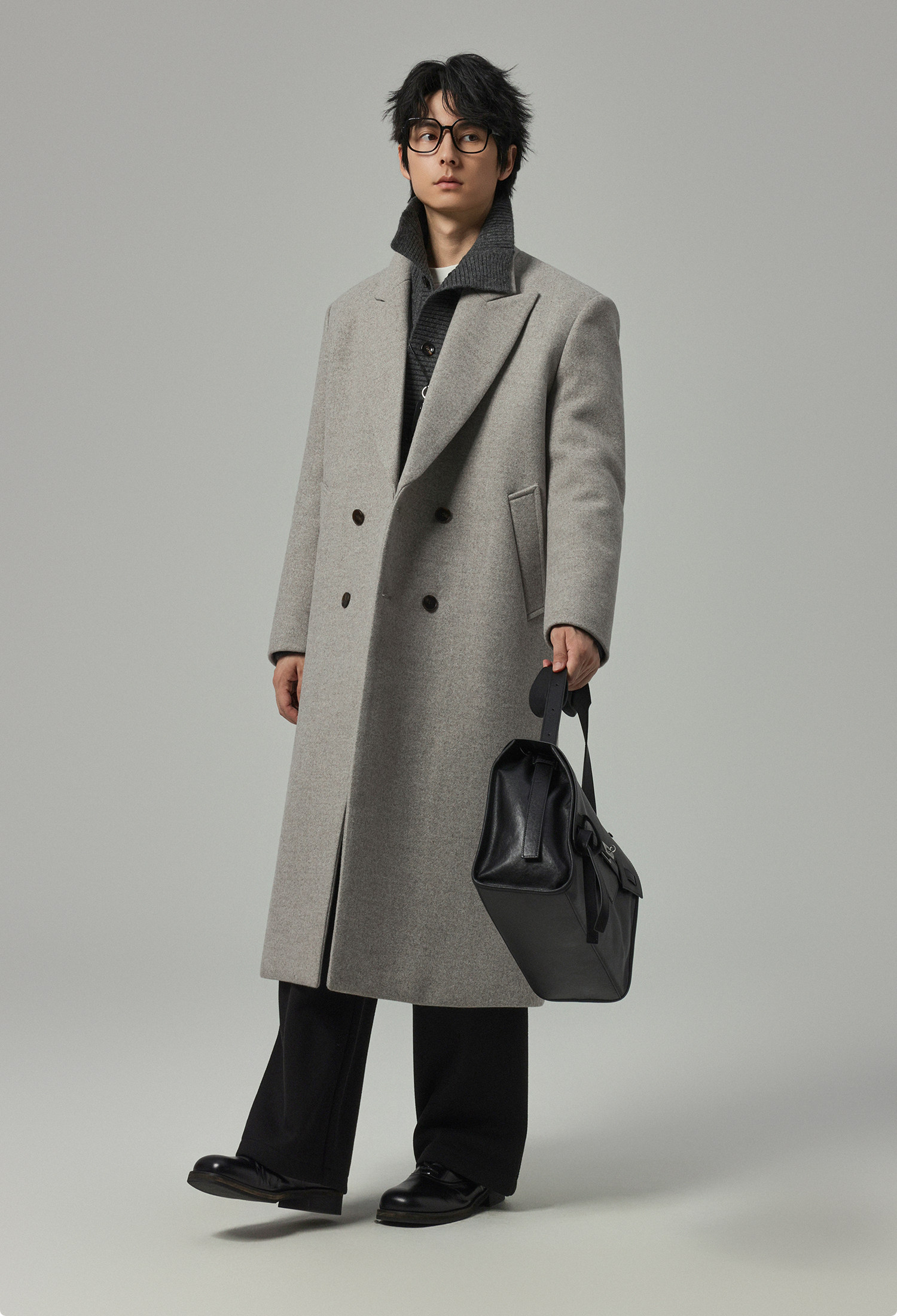 【Storage】Men's Woolen Coat, Mid-Length, Stylish, Thick, Old Money Style, Casual Jacket, Retro Trench Coat with Peaked Lapel