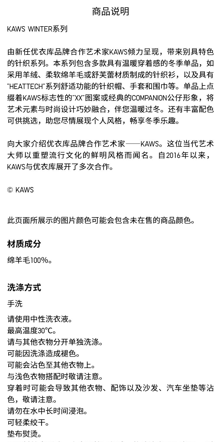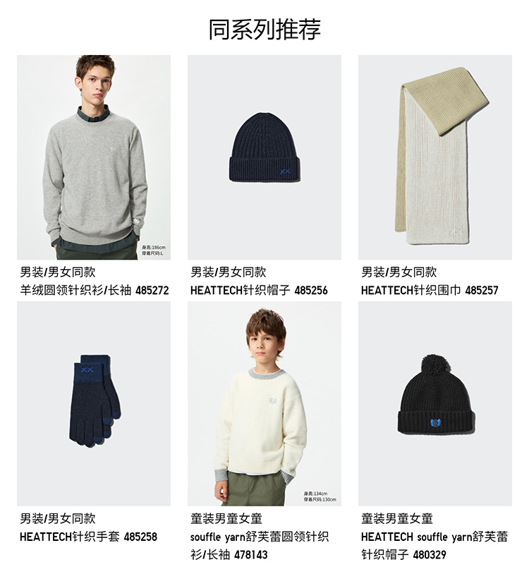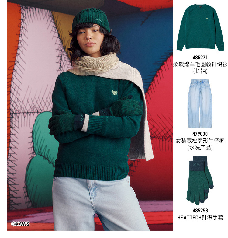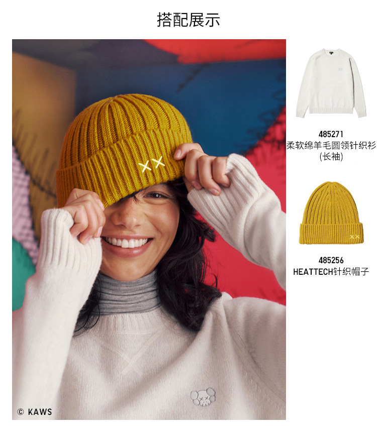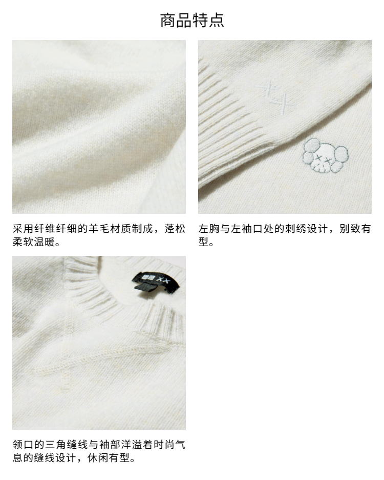 Uniqlo Men's and Women's Clothing Kaws Soft Sheep Wool Crew Neck Knitwear Long-Sleeved Sweater Autumn and Winter 485271