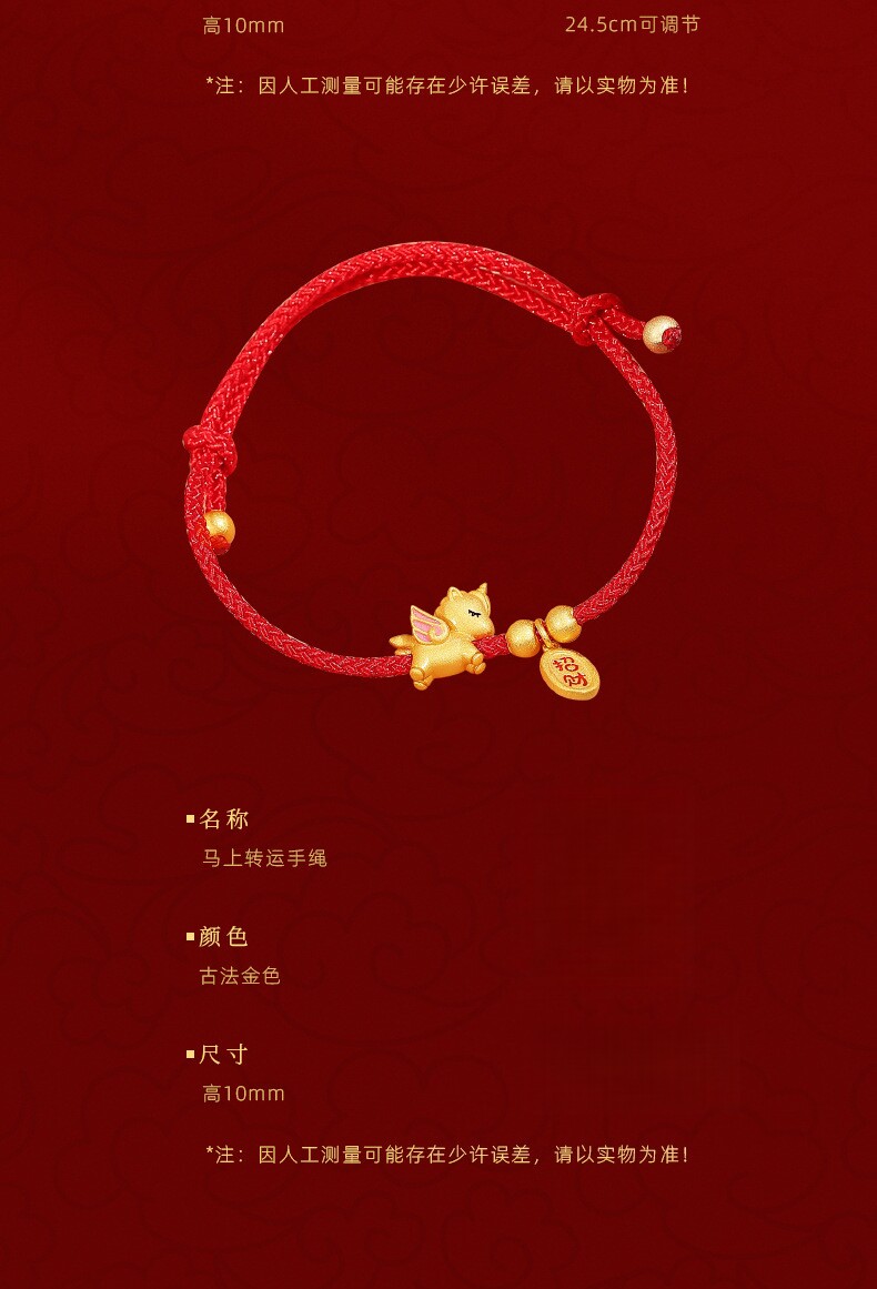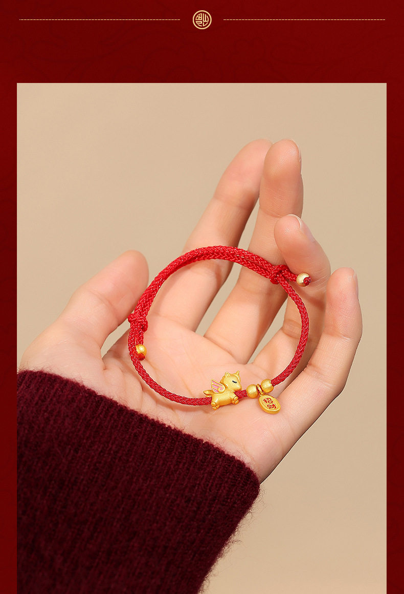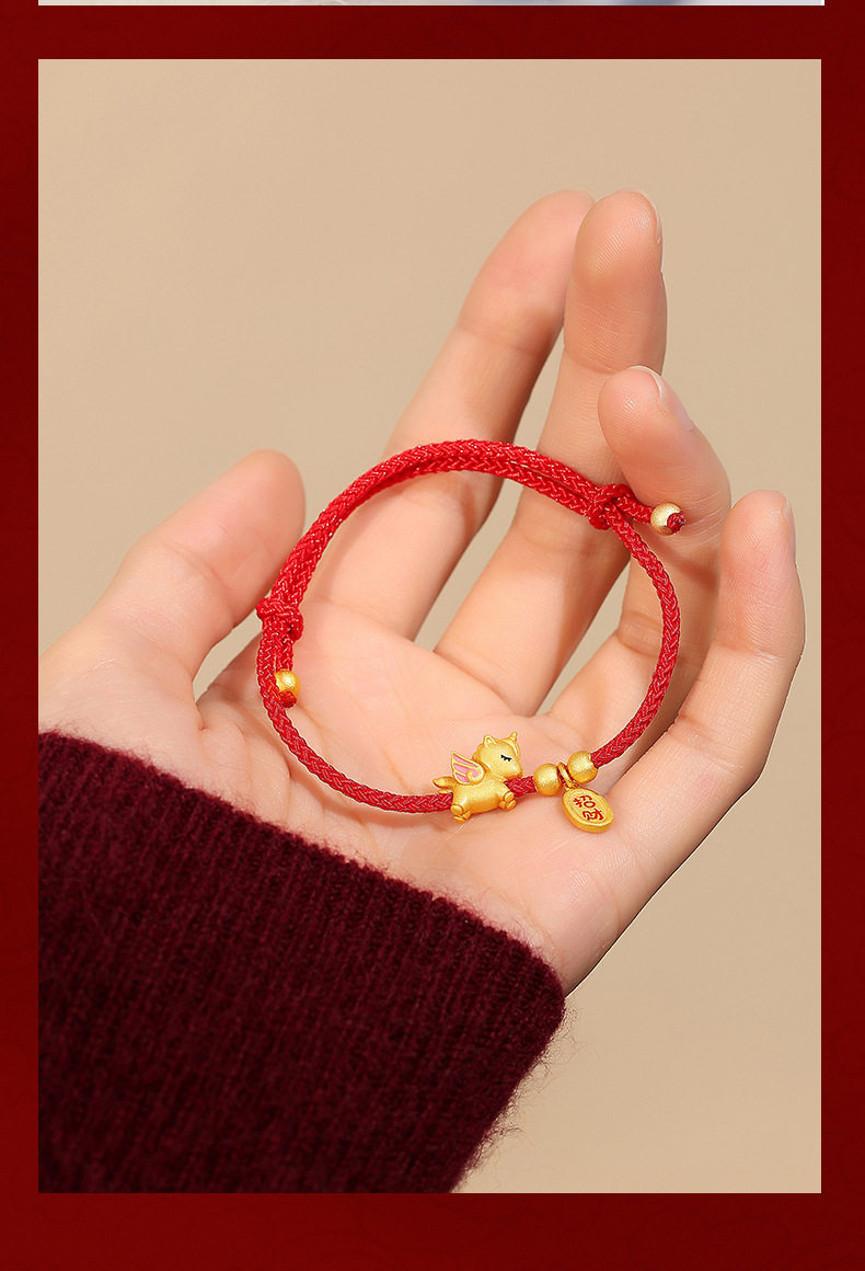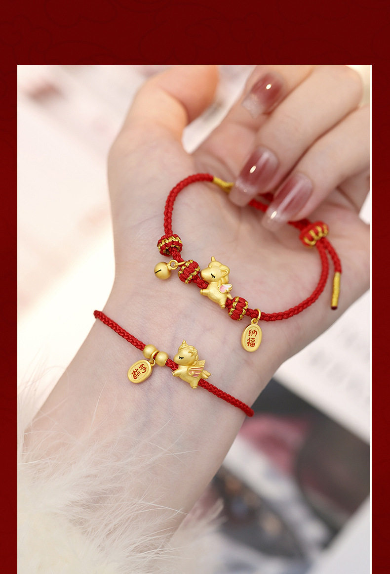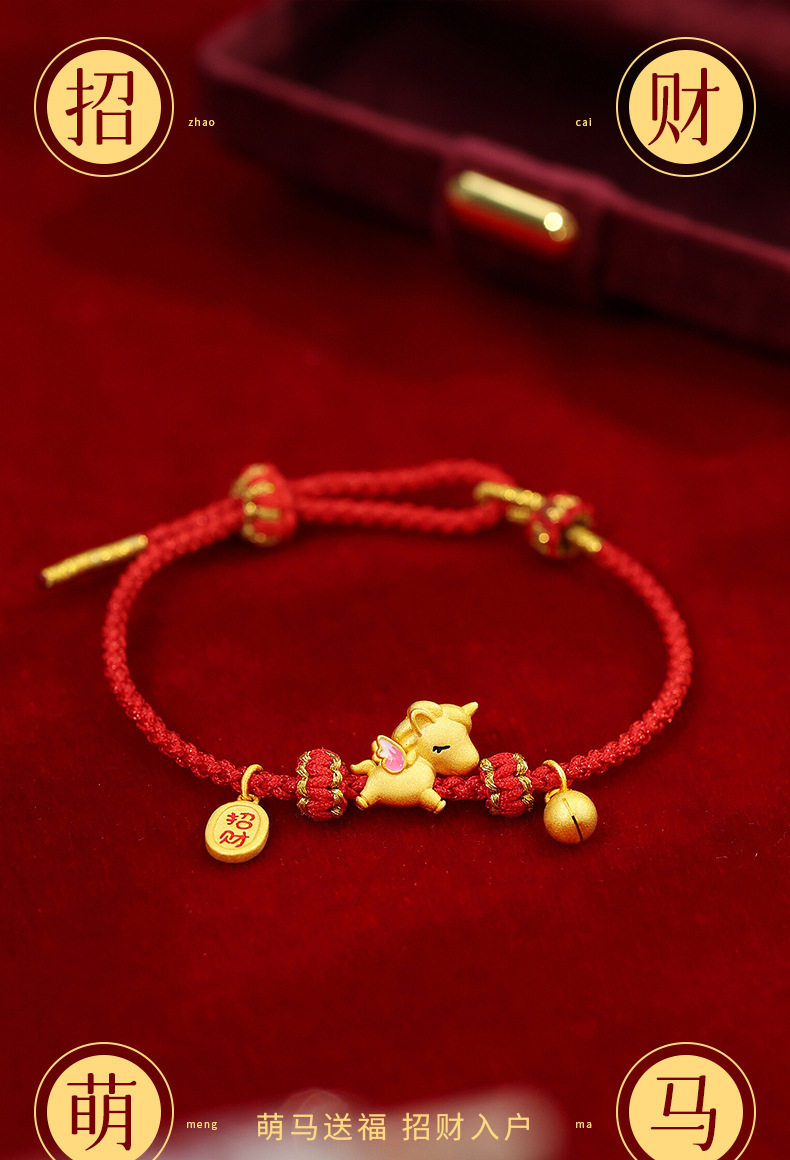 Pure Silver Fortune-Attracting Cute Horse Red String Bracelet for Women, Zodiac Horse Lucky Bead, Year of the Horse Birth Year Flying Unicorn Bracelet