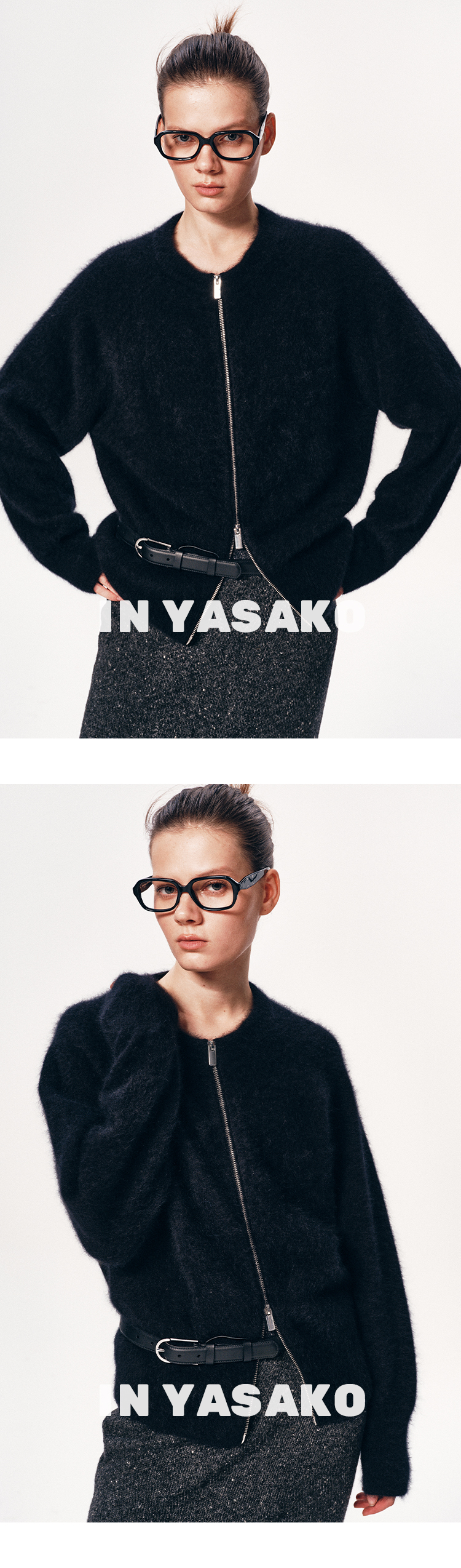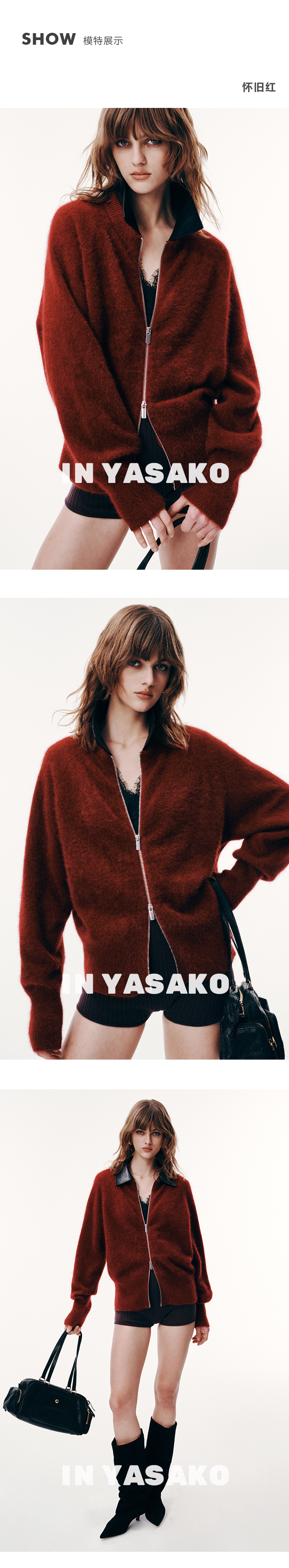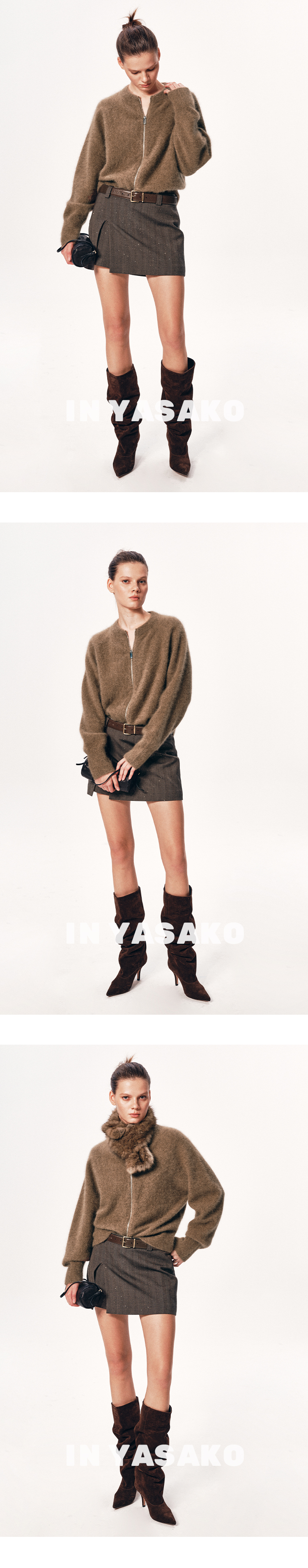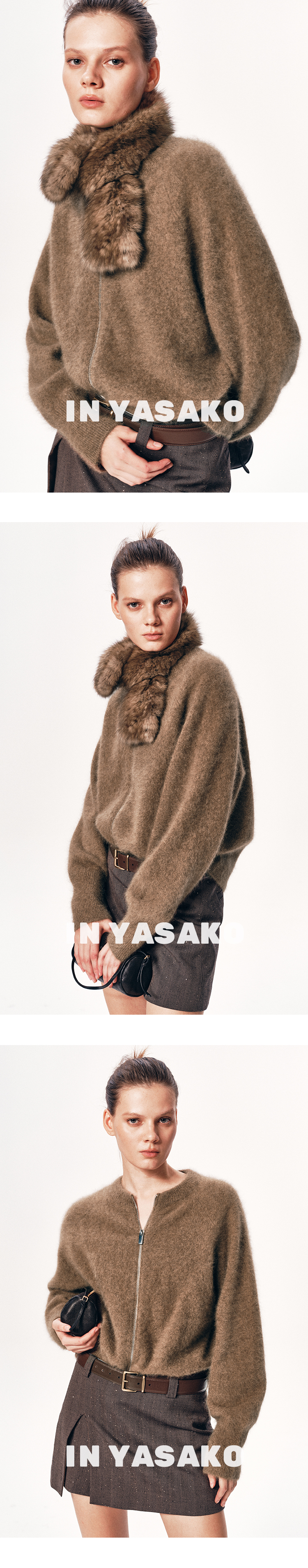 Yasako/ "Nature's Gift" Heavy Raccoon Fur Vintage Detachable Fur Collar Knit Sweater Jacket