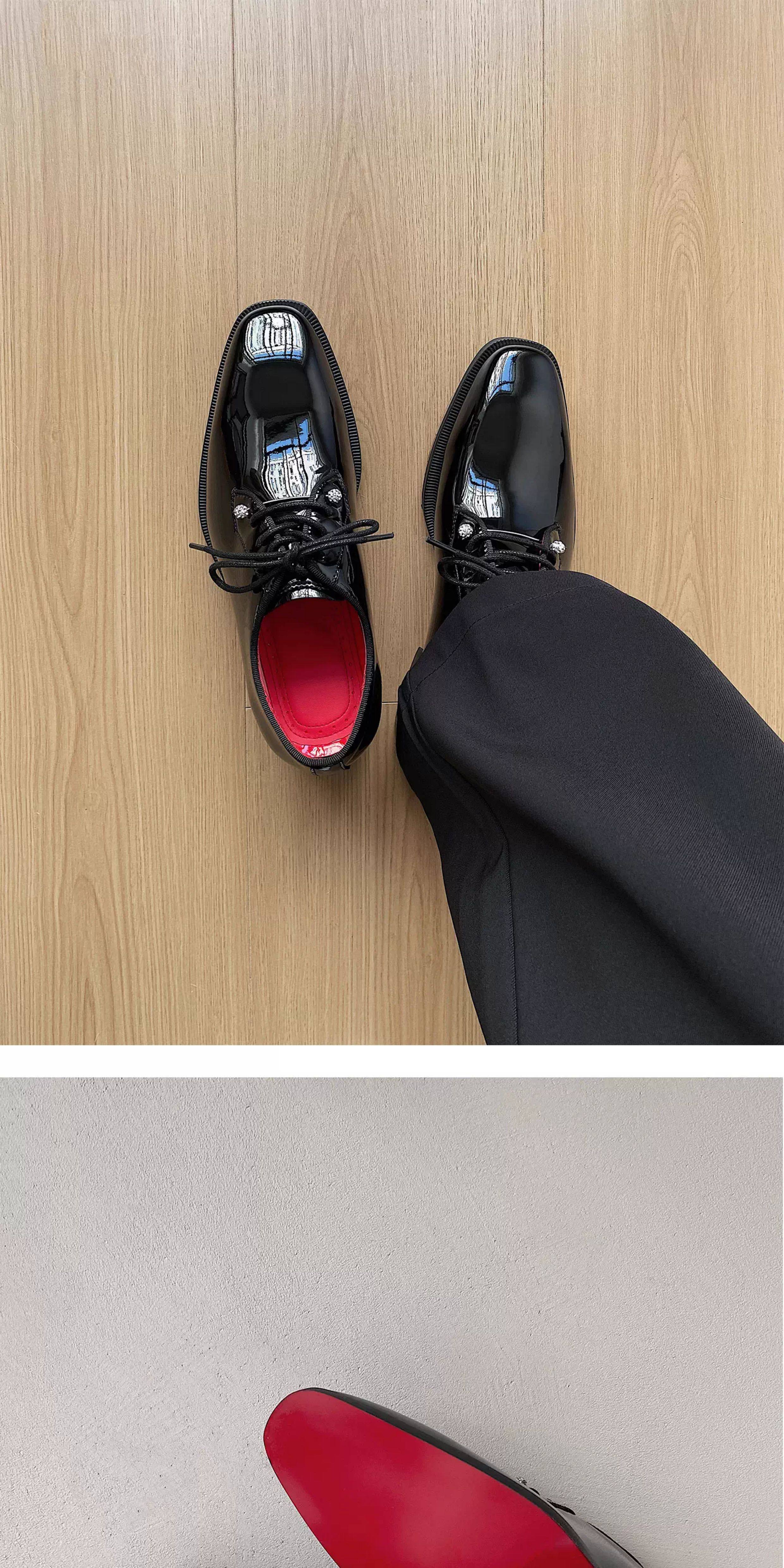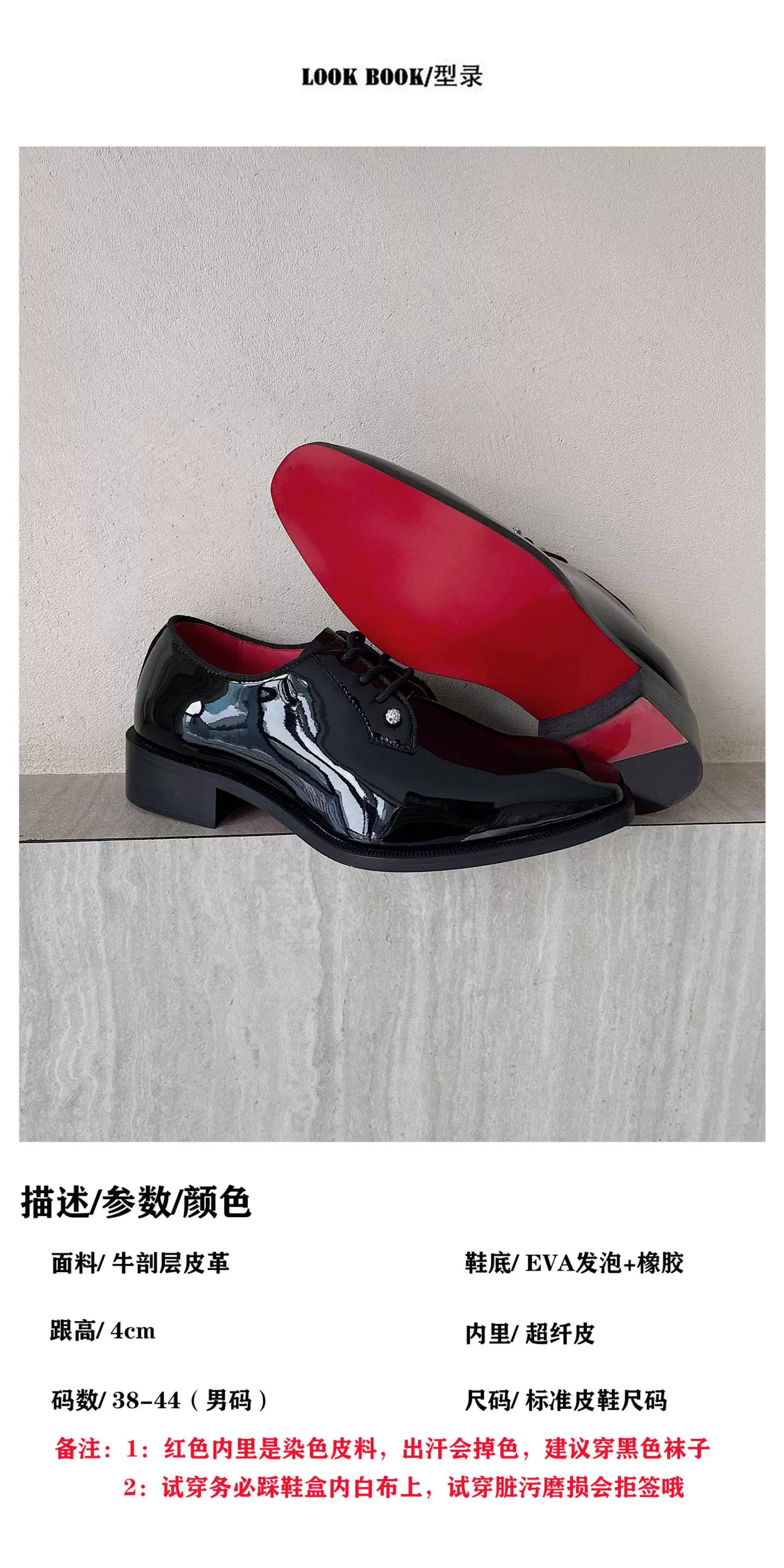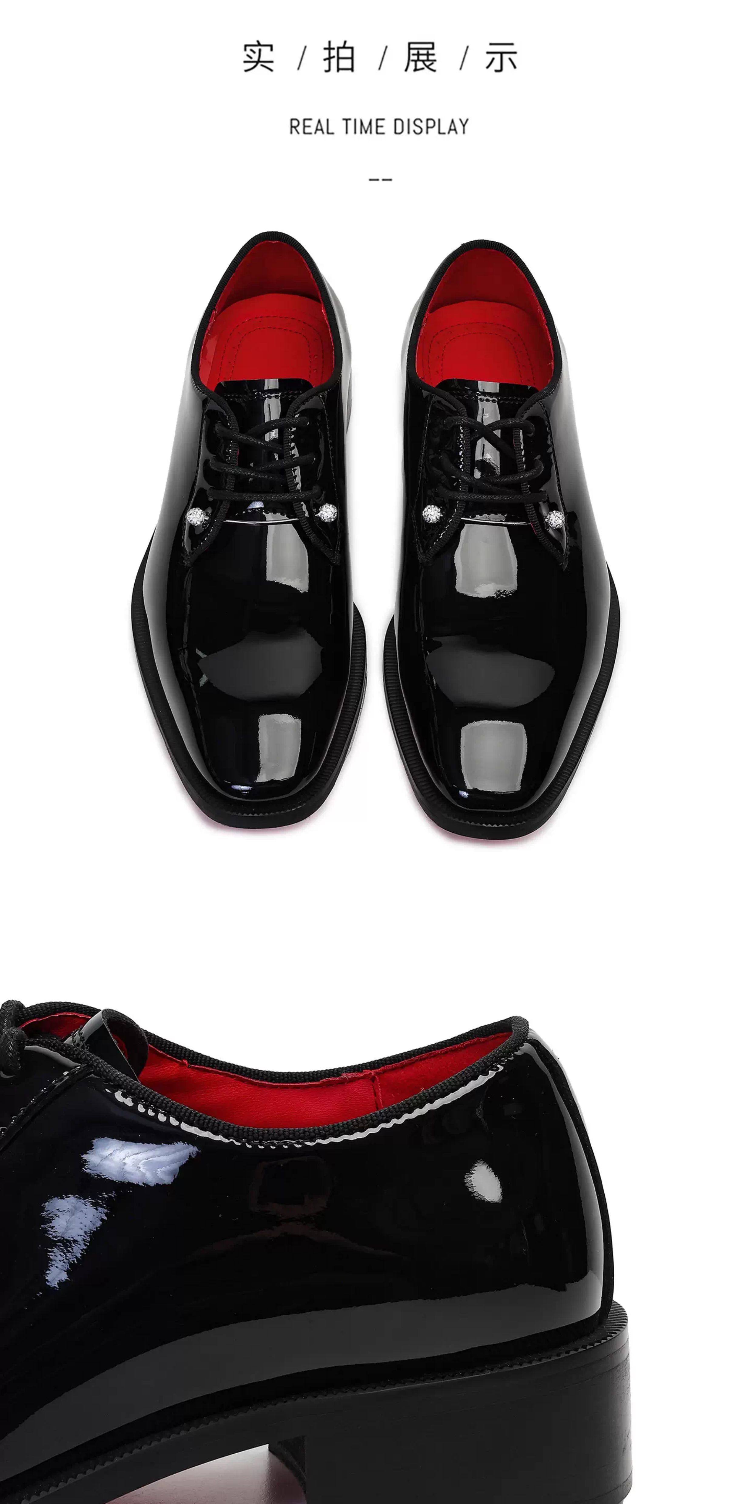 2025 New Derby Shoes Formal Wear Cl Red Sole Genuine Leather Lace-Up Shoes for Work and Commuting High-End Height-Increasing Groom Wedding Shoes