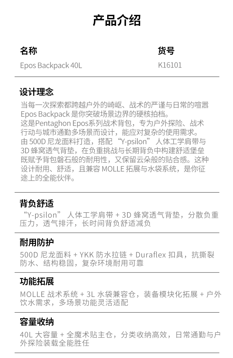 Pentagon Epos Backpack Outdoor Casual Epic Tactical Backpack 40L