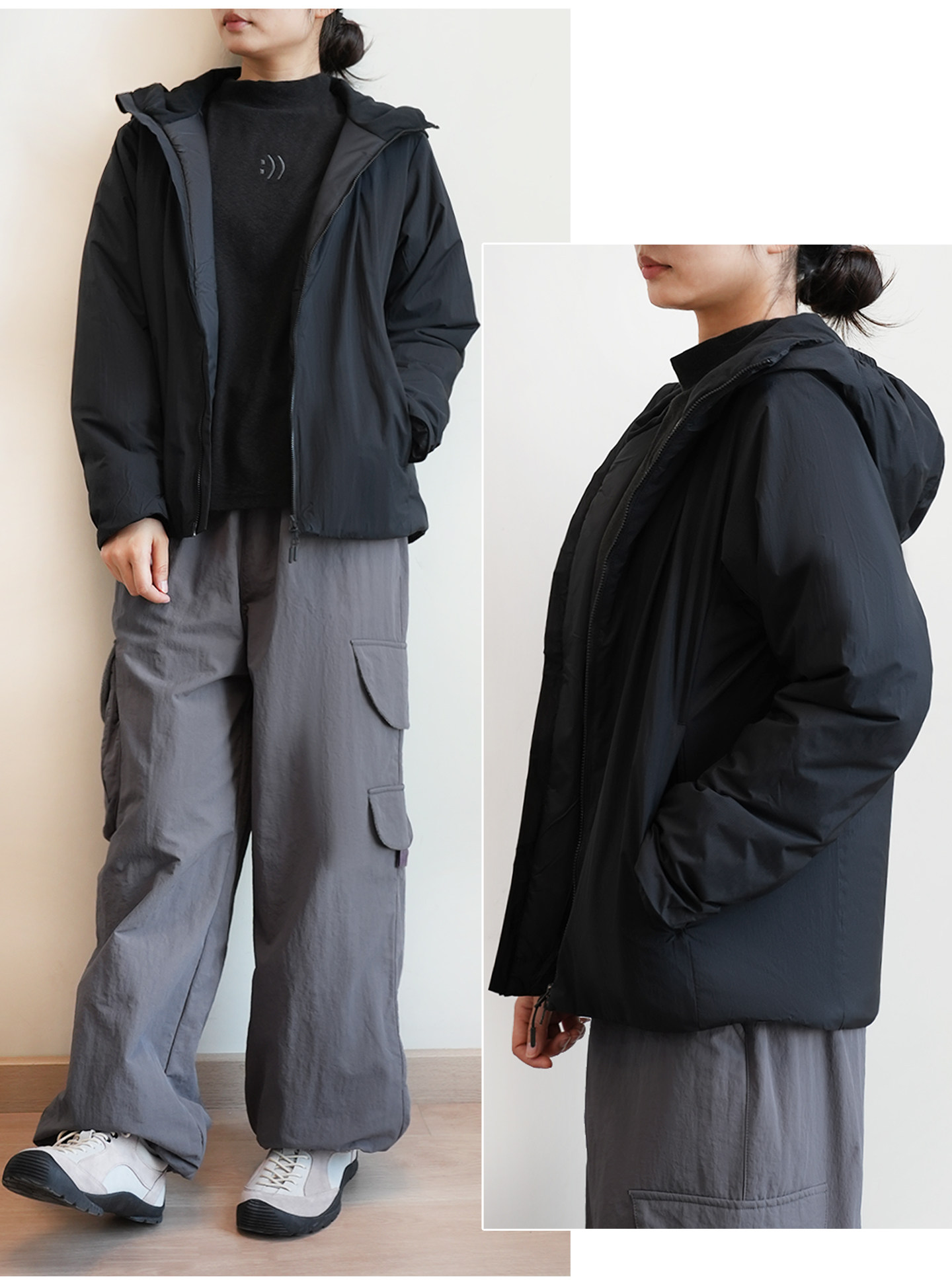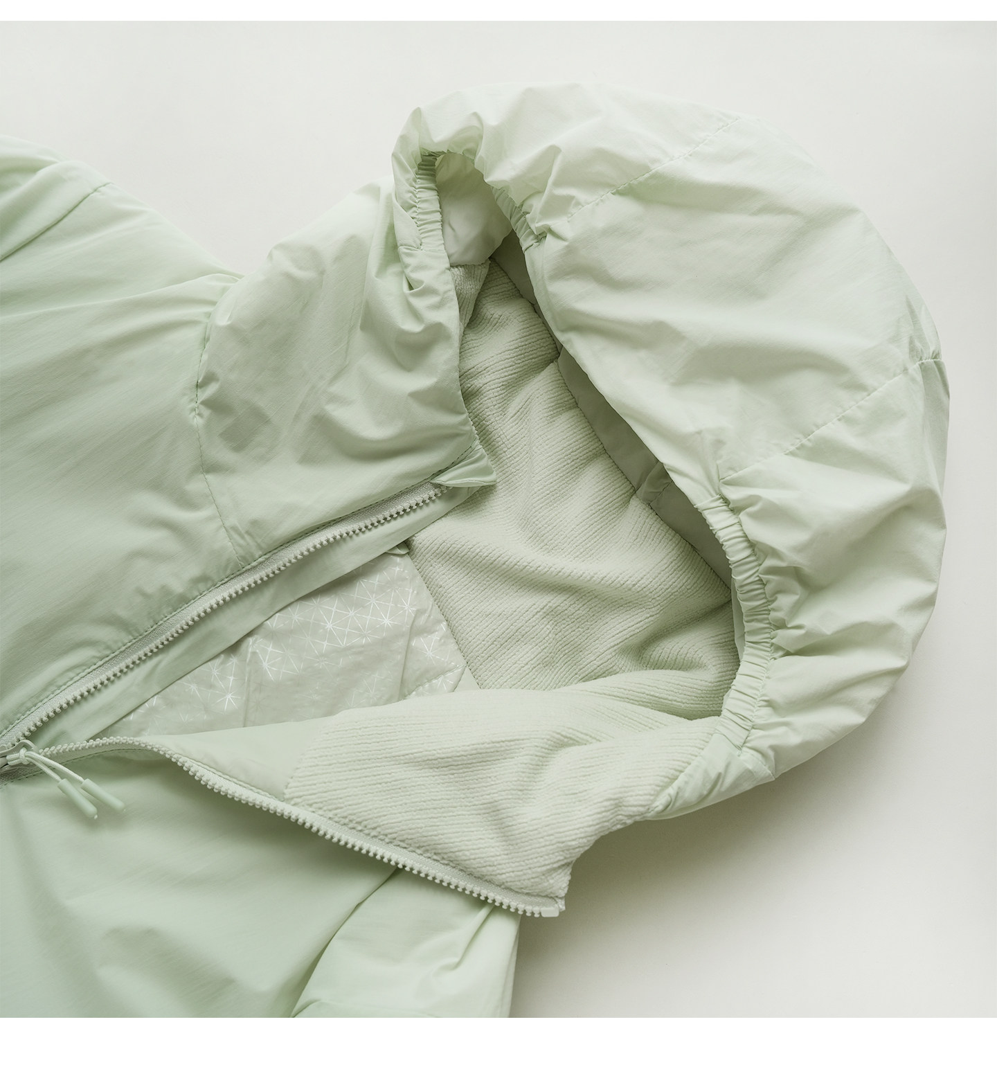 面料:锦纶 里料:锦纶 填充物:20%聚酰亚胺 80%聚酯纤维