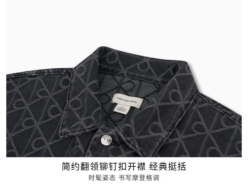 [Same Style as Jungkook] Ck Jeans25 Autumn and Winter New Men's Vintage Jacquard Pure Cotton Trendy Denim Jacket