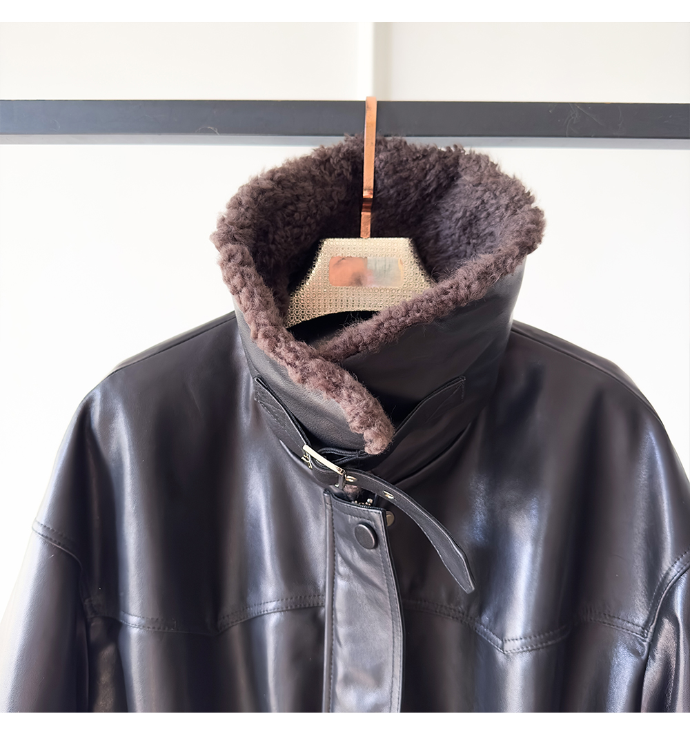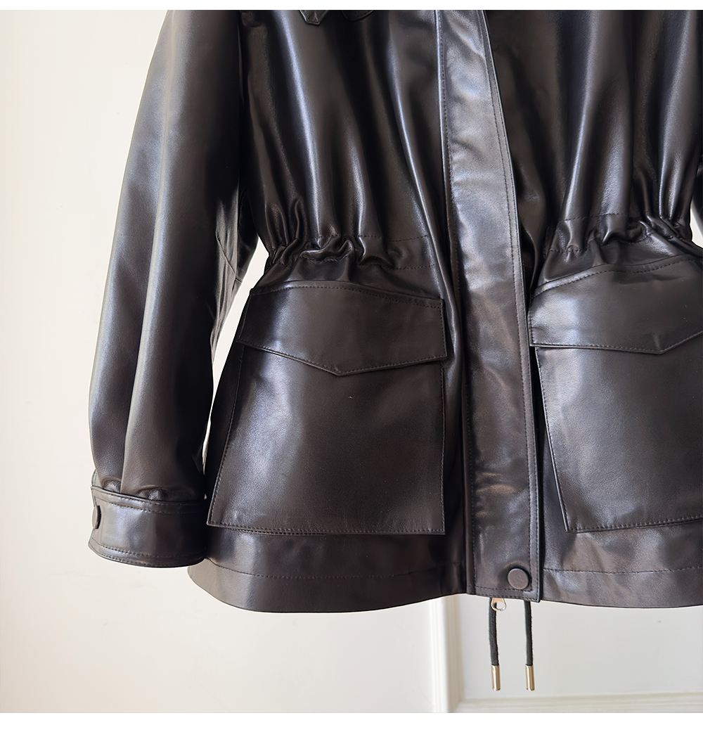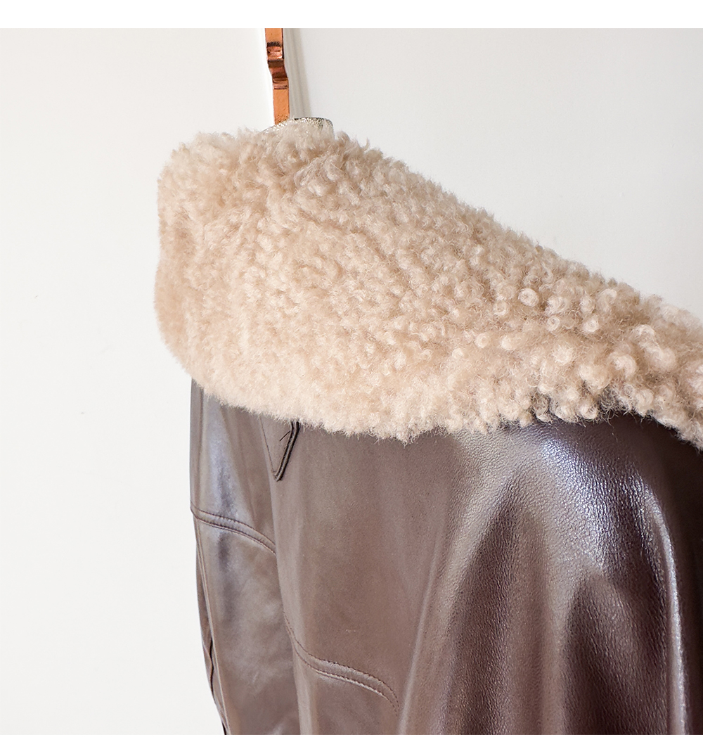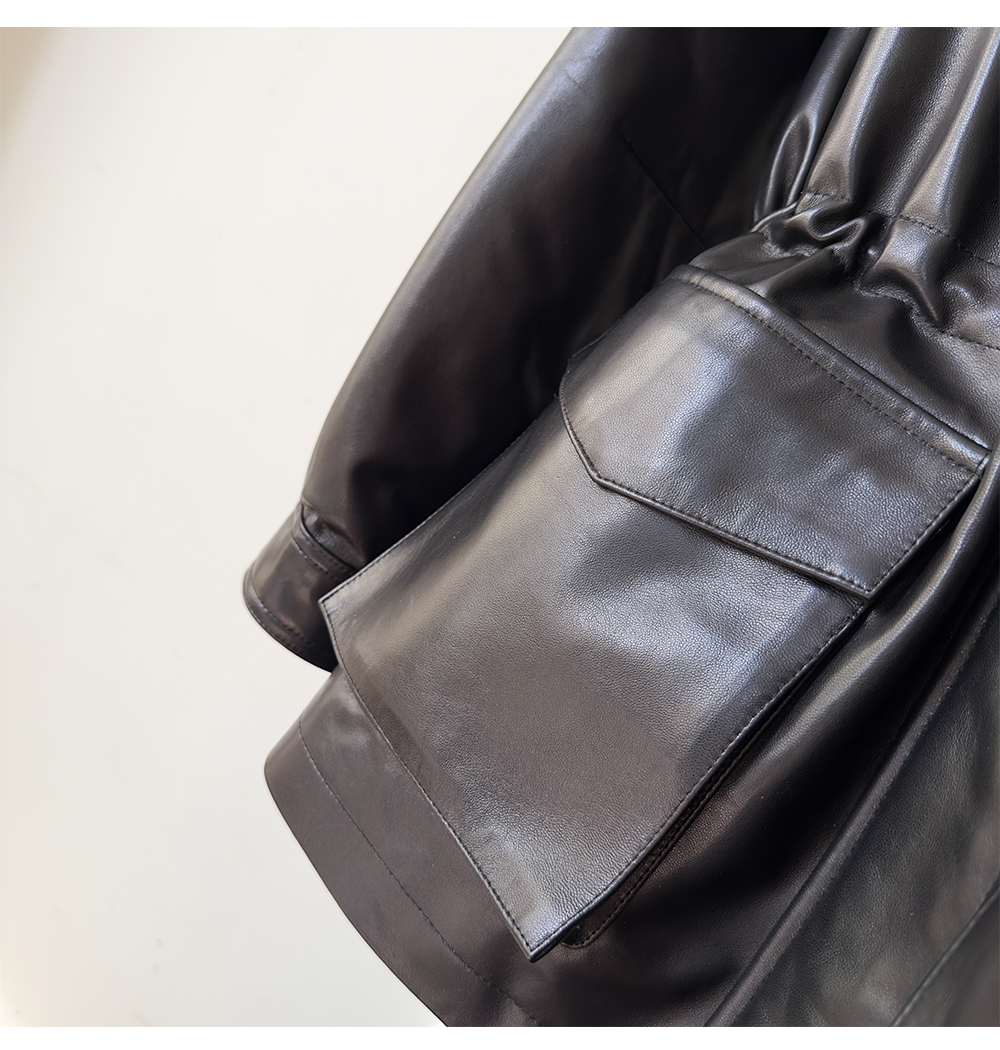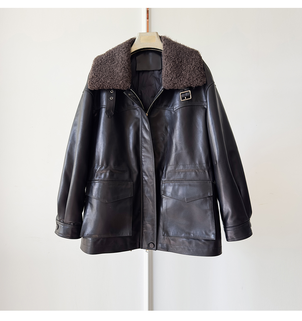 White Goose down Genuine Leather down Jacket for Women 2025 Sheepskin with Lambswool Collar, Drawstring Waist, Mid-Length Coat