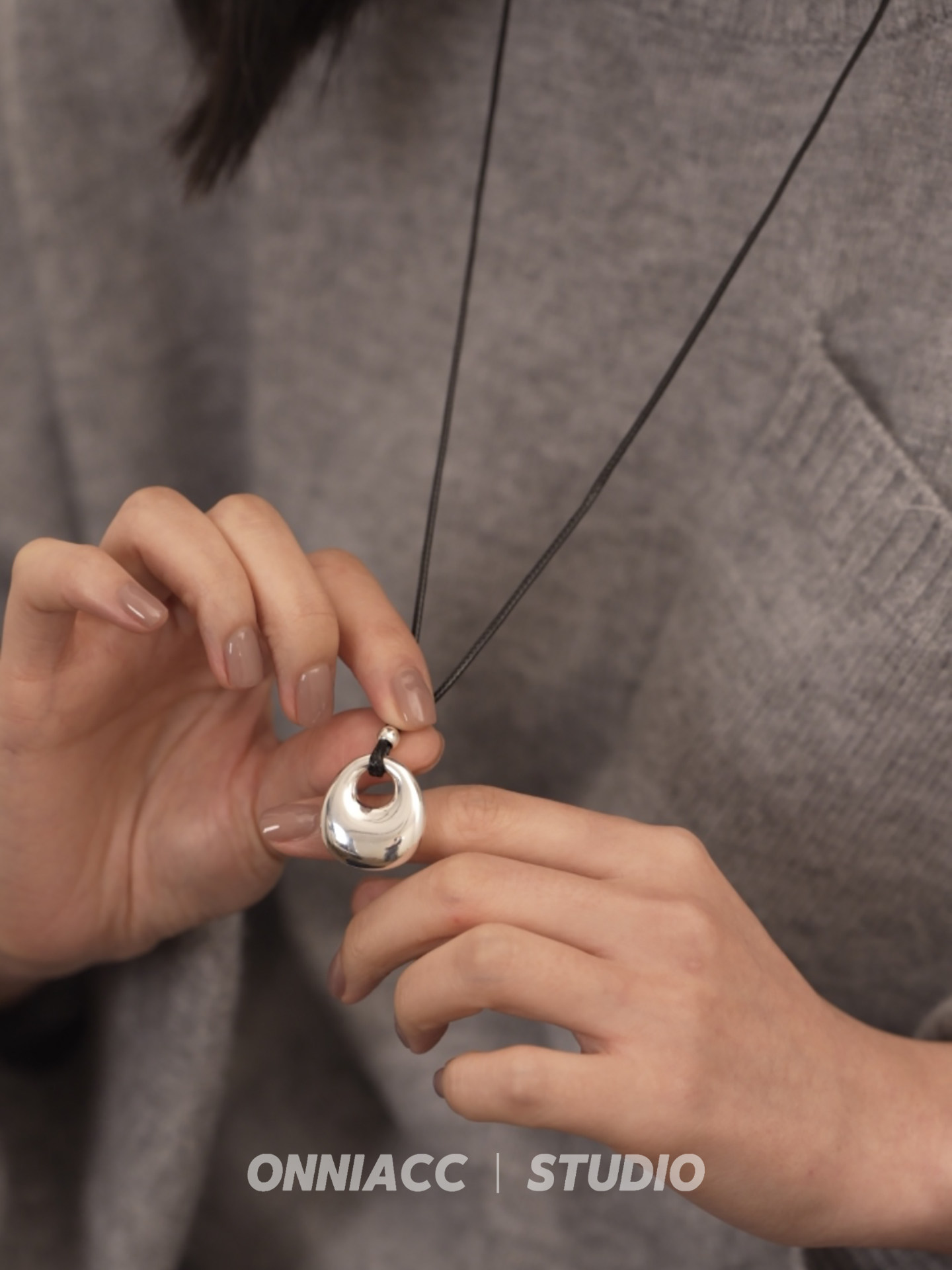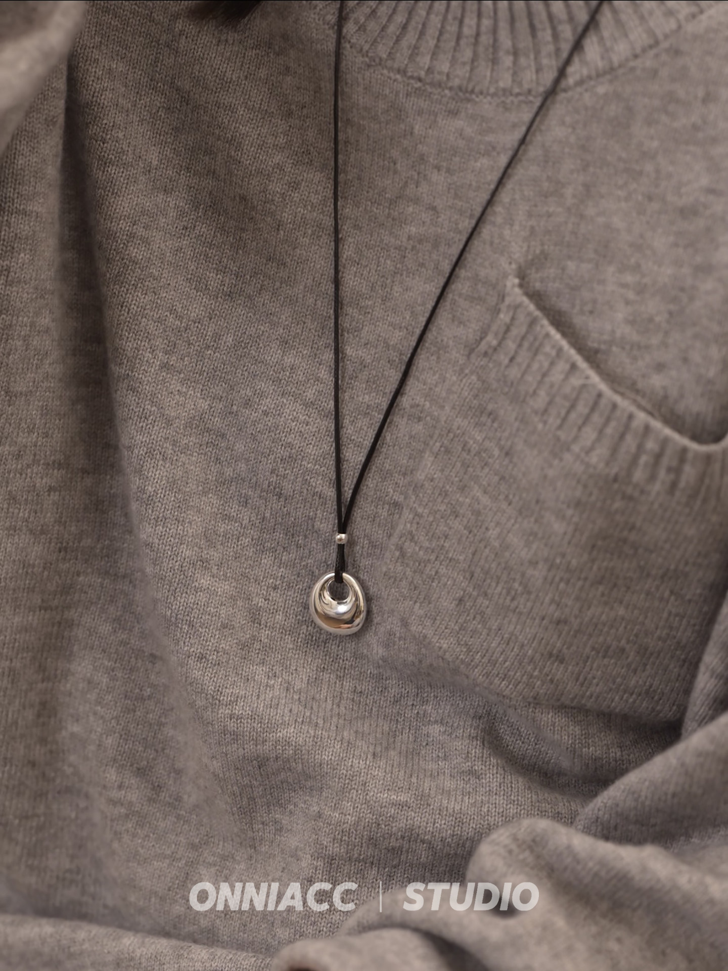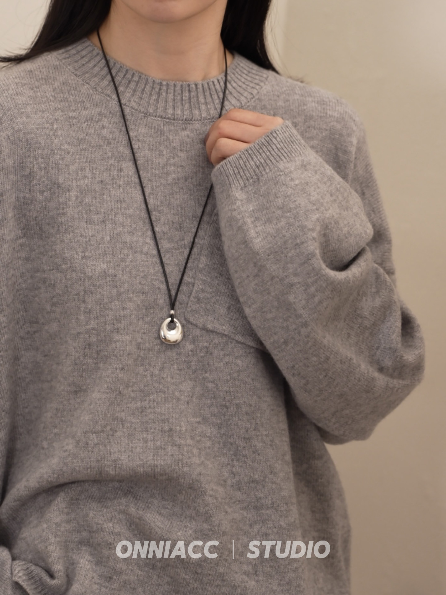 Peace Buckle Pendant Black Cord Necklace for Women, Long Sweater Chain, Sterling Silver Accessory, Autumn and Winter, High-End, Light Luxury, Niche, Simple