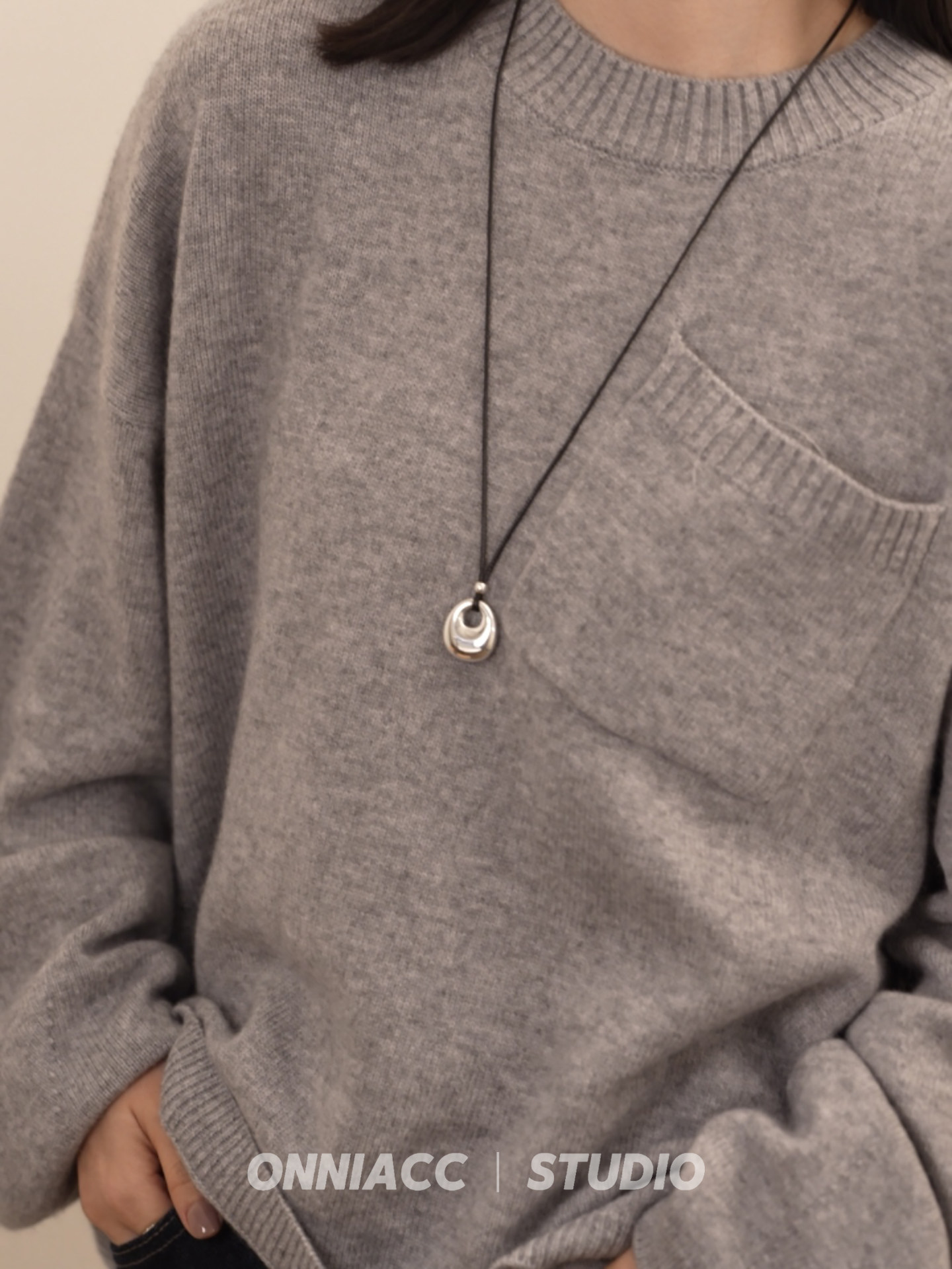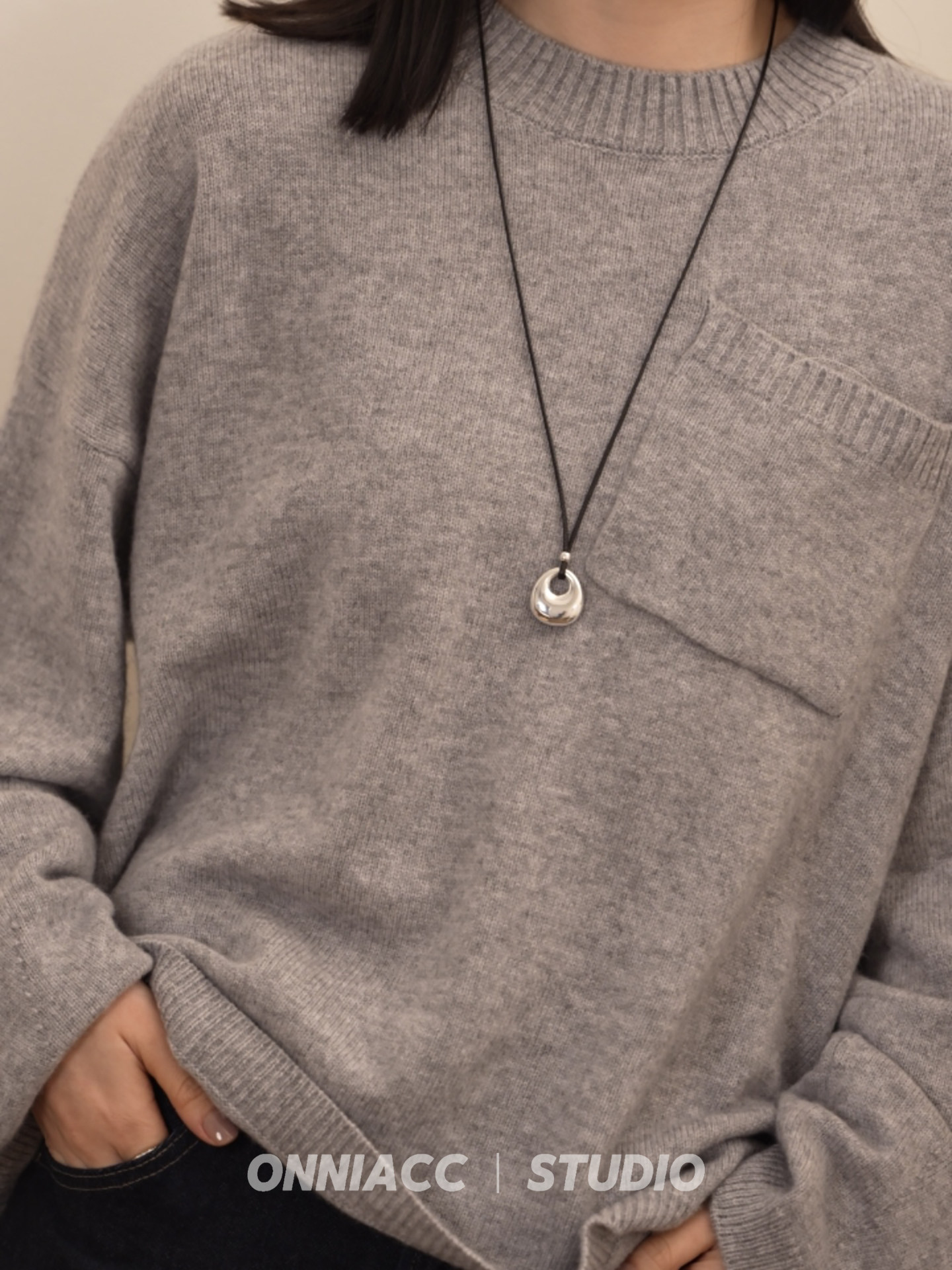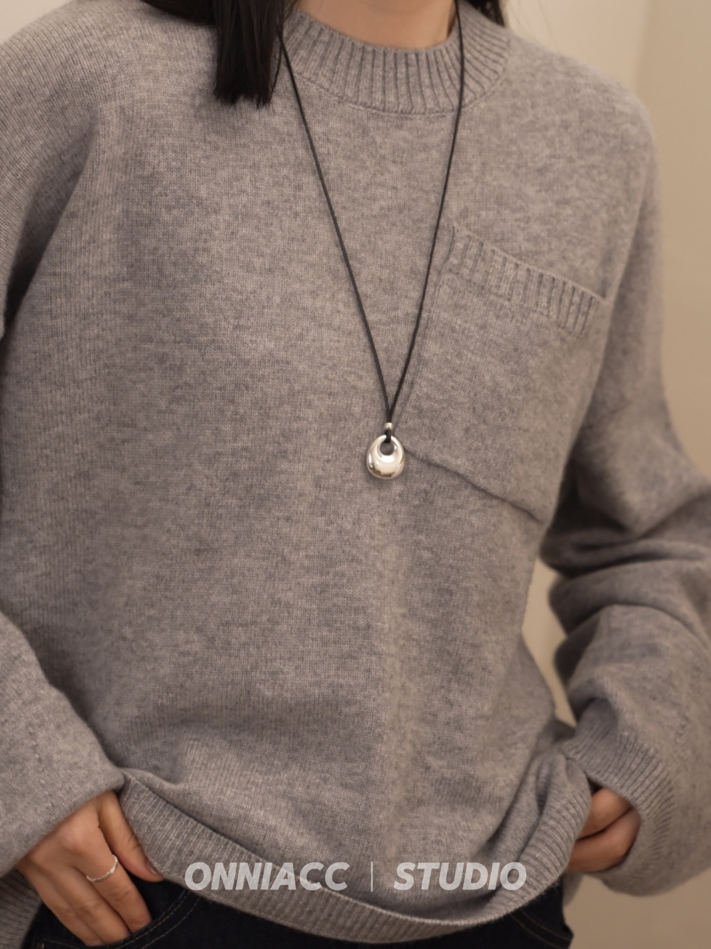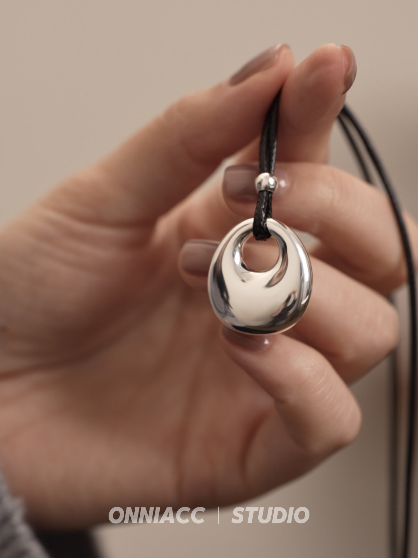 Peace Buckle Pendant Black Cord Necklace for Women, Long Sweater Chain, Sterling Silver Accessory, Autumn and Winter, High-End, Light Luxury, Niche, Simple