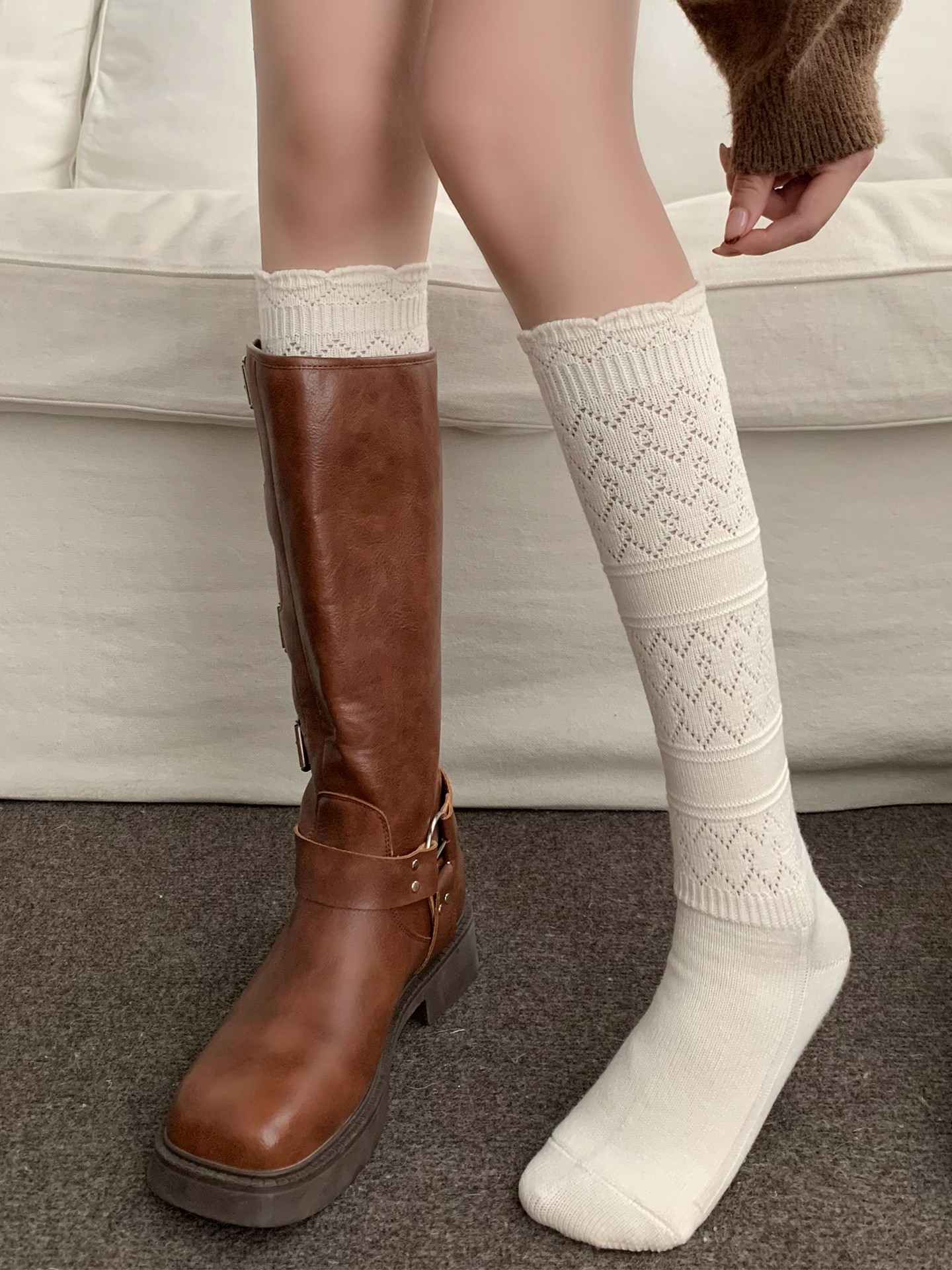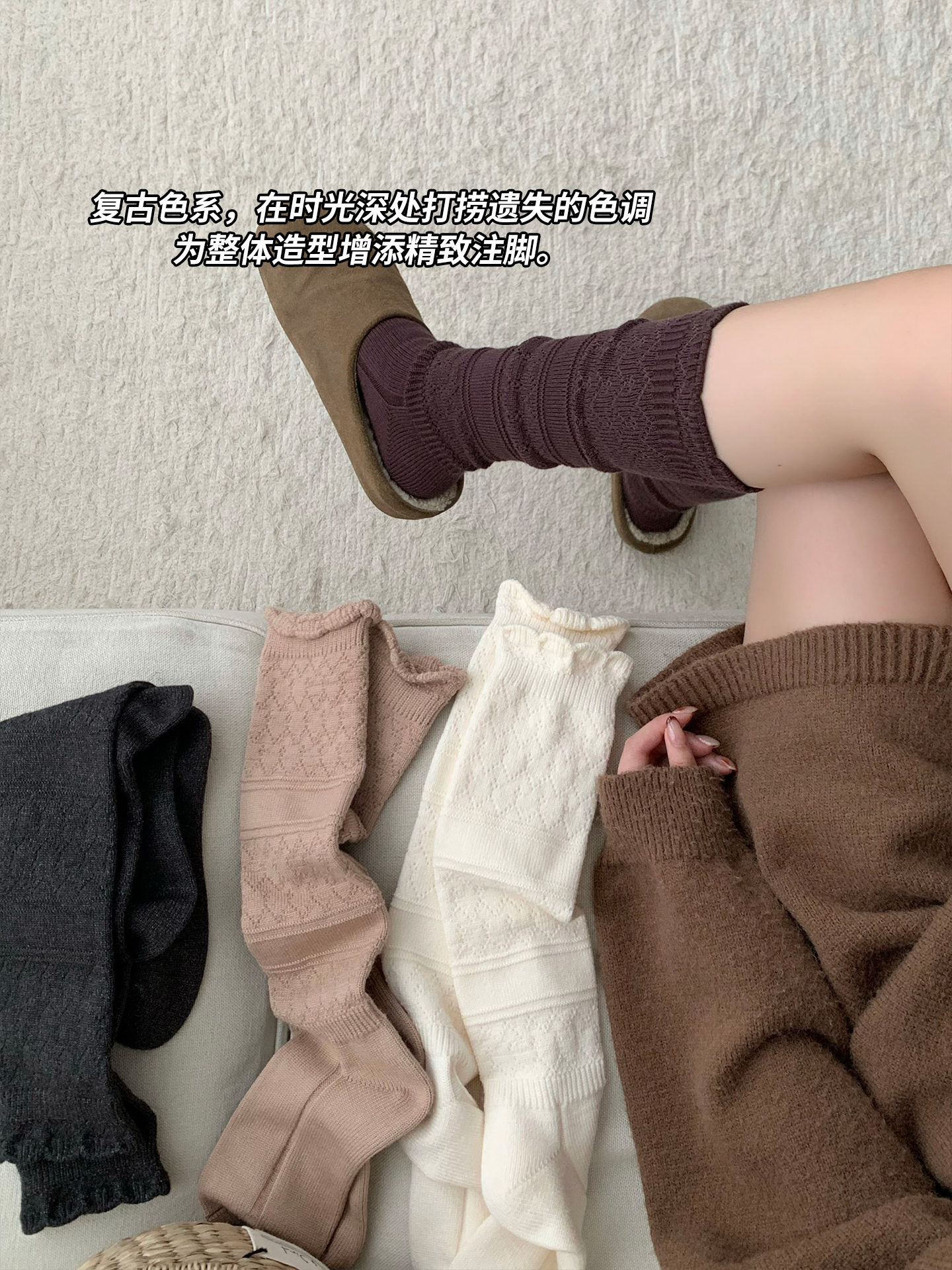 Japanese Retro Hollow Wool Calf Socks for Women, Mid-Calf Slouch Socks, Autumn and Winter Warm Socks to Match Boots, Long Socks, Boot Socks