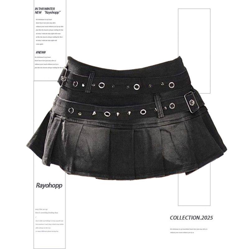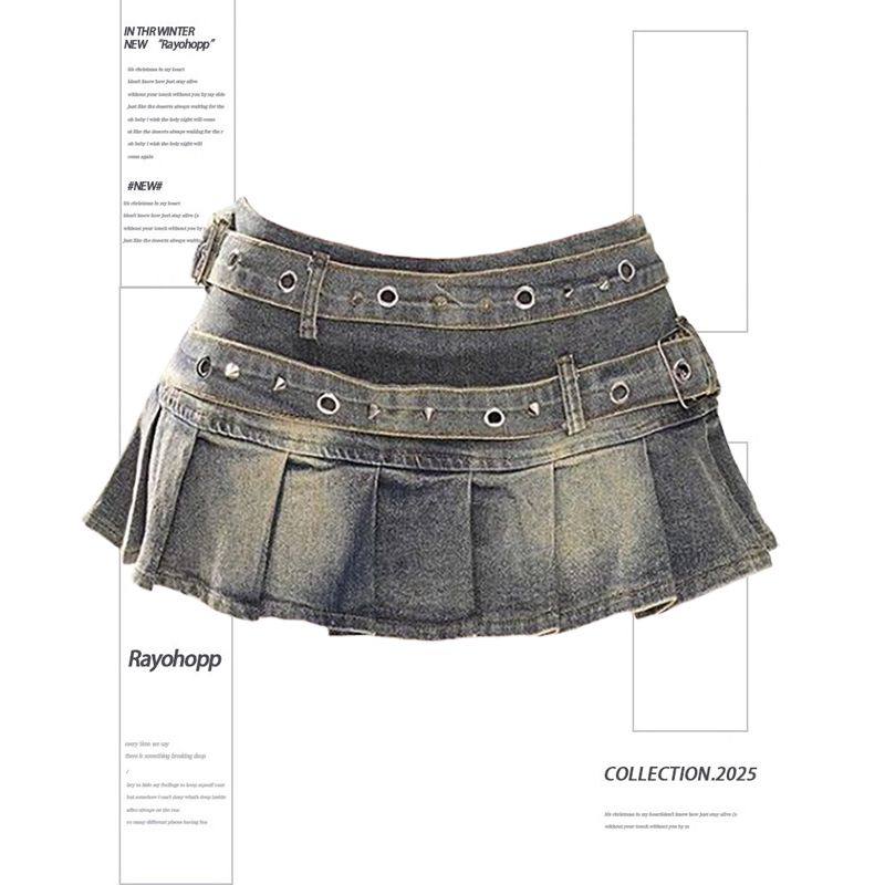 Kellykitty High-End Proportion American-Style Spicy Girl Denim Skirt Women's Summer A-Line Slimming Pleated Skirt Short Skirt