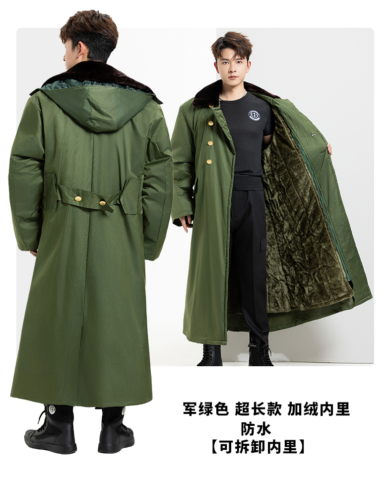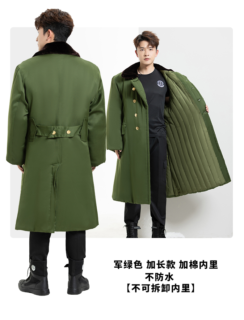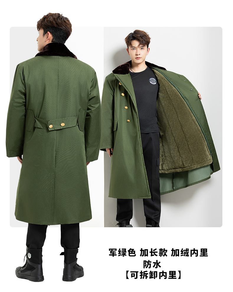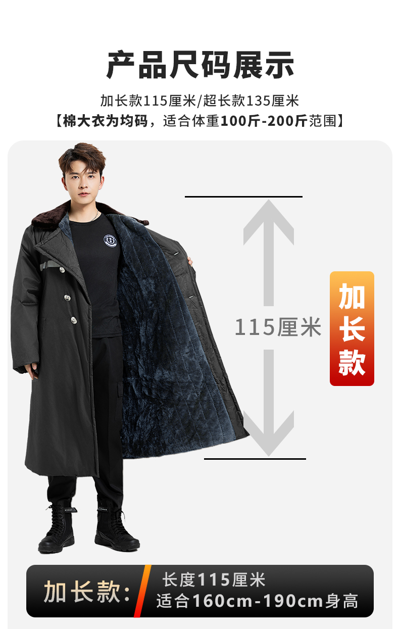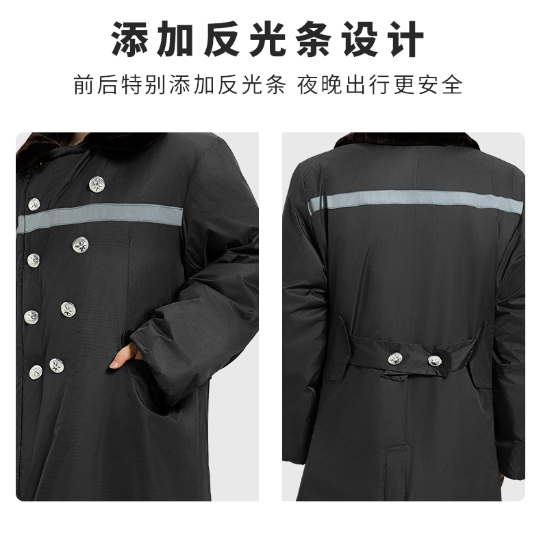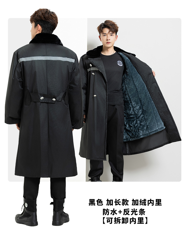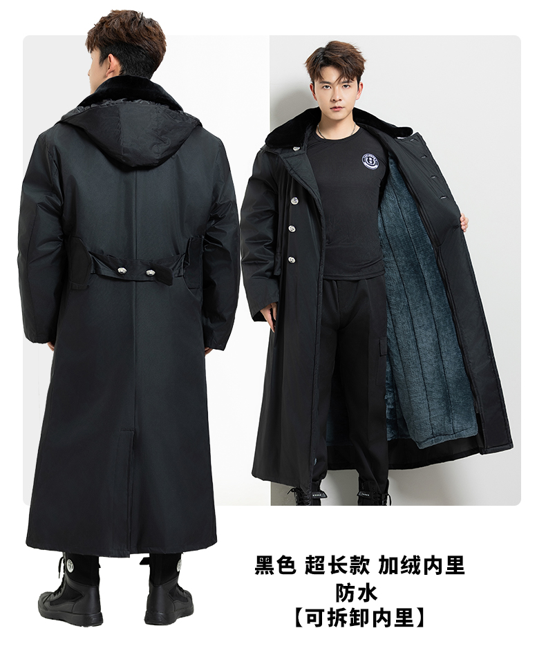 Military-Style Coat for Men and Women, Winter Thickened and Fleece-Lined, Long Workwear Coat, Cotton Jacket, Cold-Proof Clothing, Security Guard Cotton Coat, Black