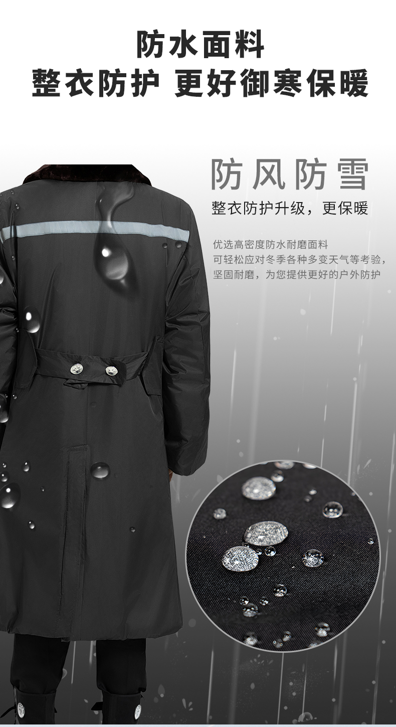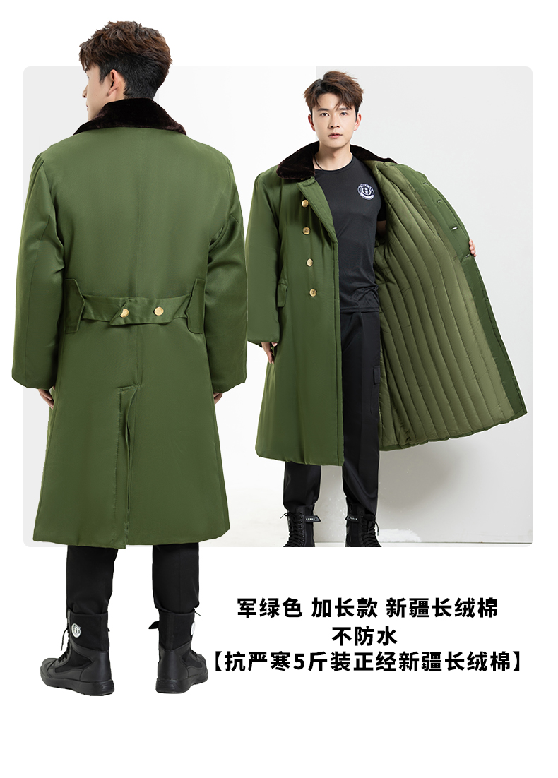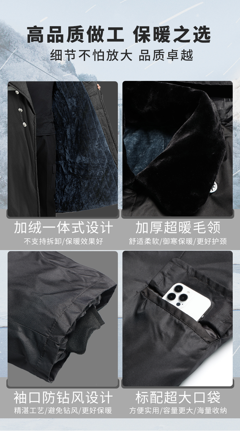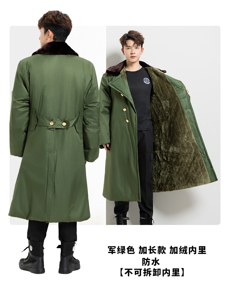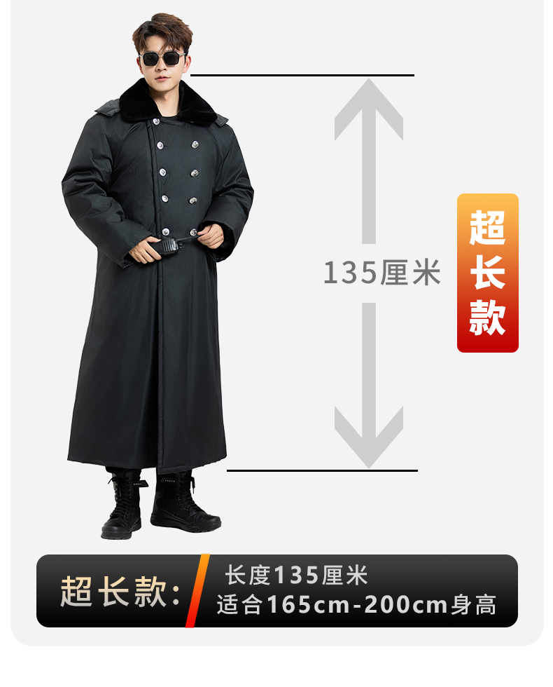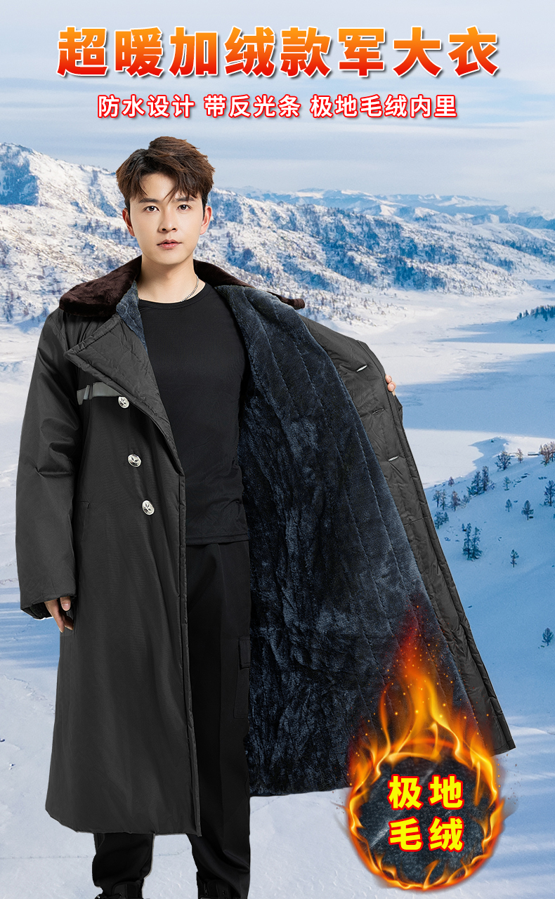 Military-Style Coat for Men and Women, Winter Thickened and Fleece-Lined, Long Workwear Coat, Cotton Jacket, Cold-Proof Clothing, Security Guard Cotton Coat, Black