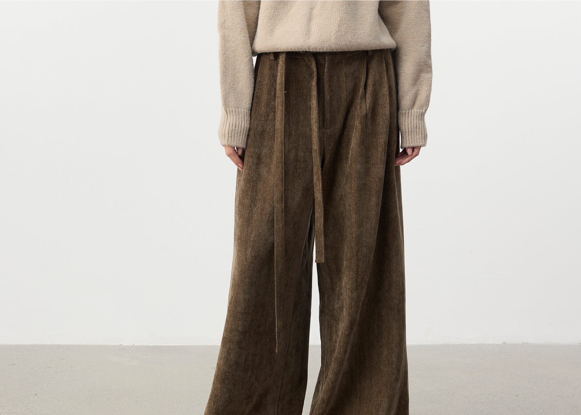 Set for Life 25Fw Herringbone Chenille Double Pleated Lace-Up Dress Pants