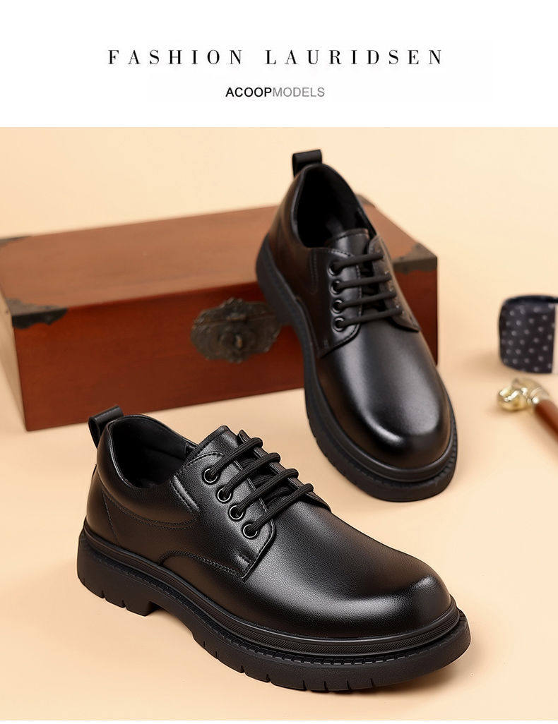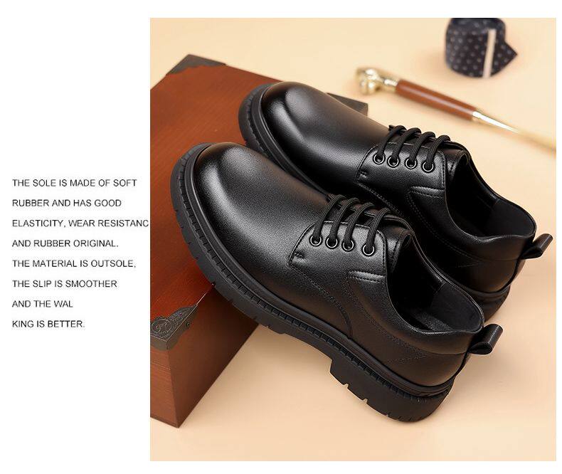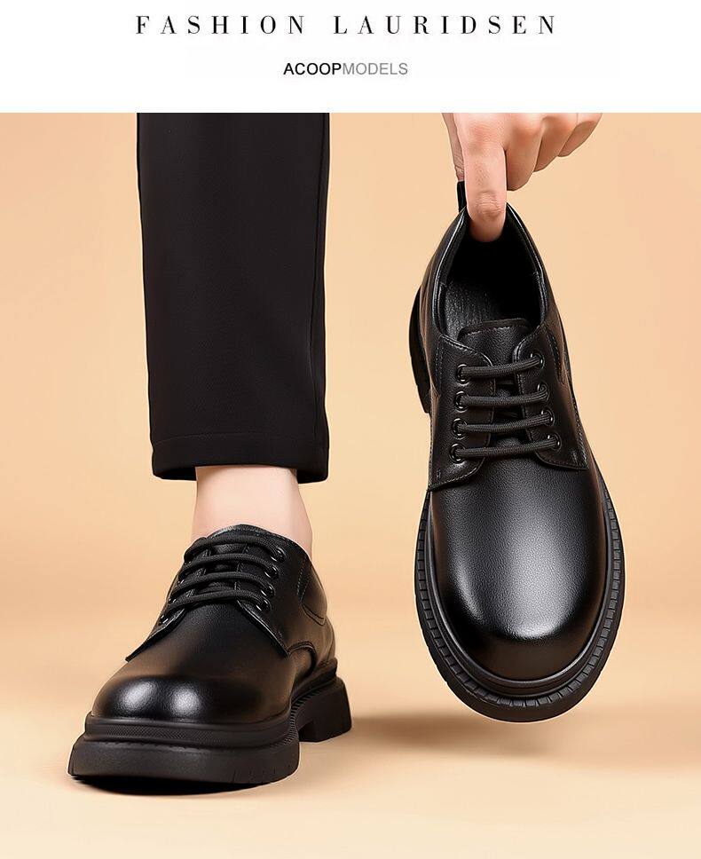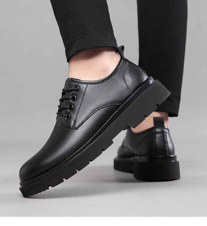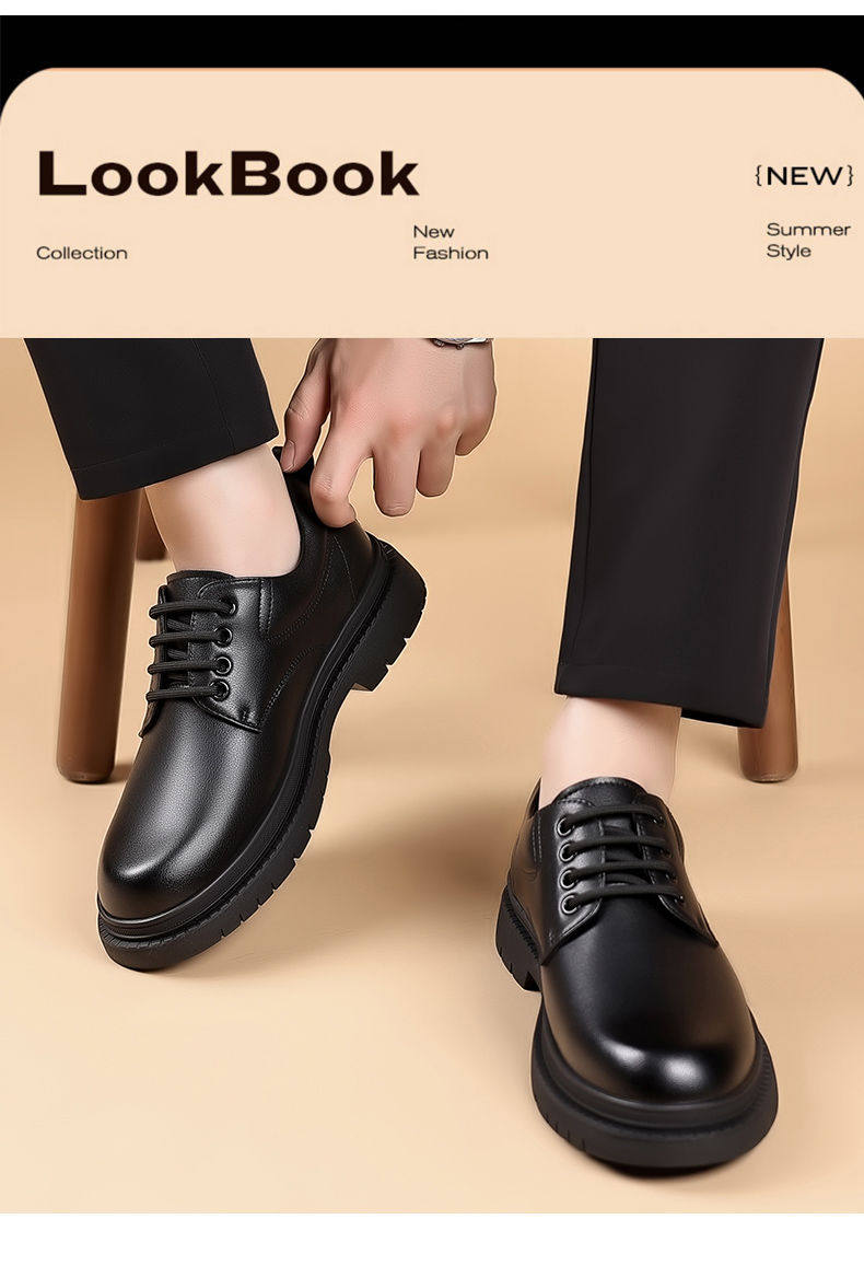 Yierkan Men's Shoes, Spring and Autumn Genuine Leather Business Men's Leather Shoes, British Style Formal Wear, Groomsmen's Shoes, Thick-Soled Breathable Large-Toe Shoes