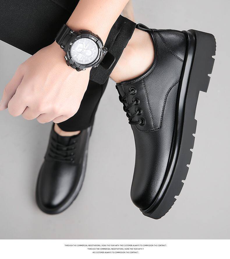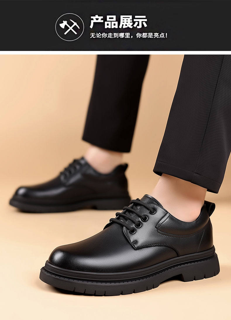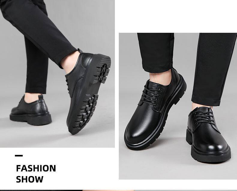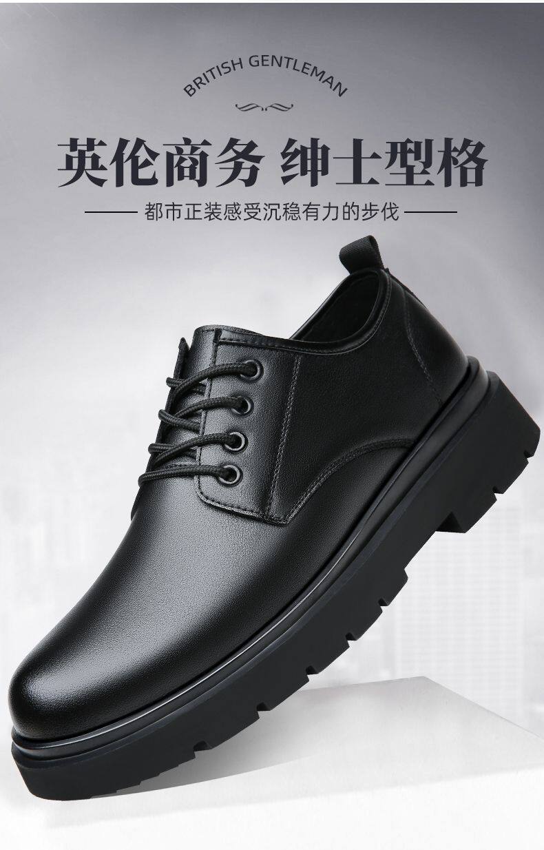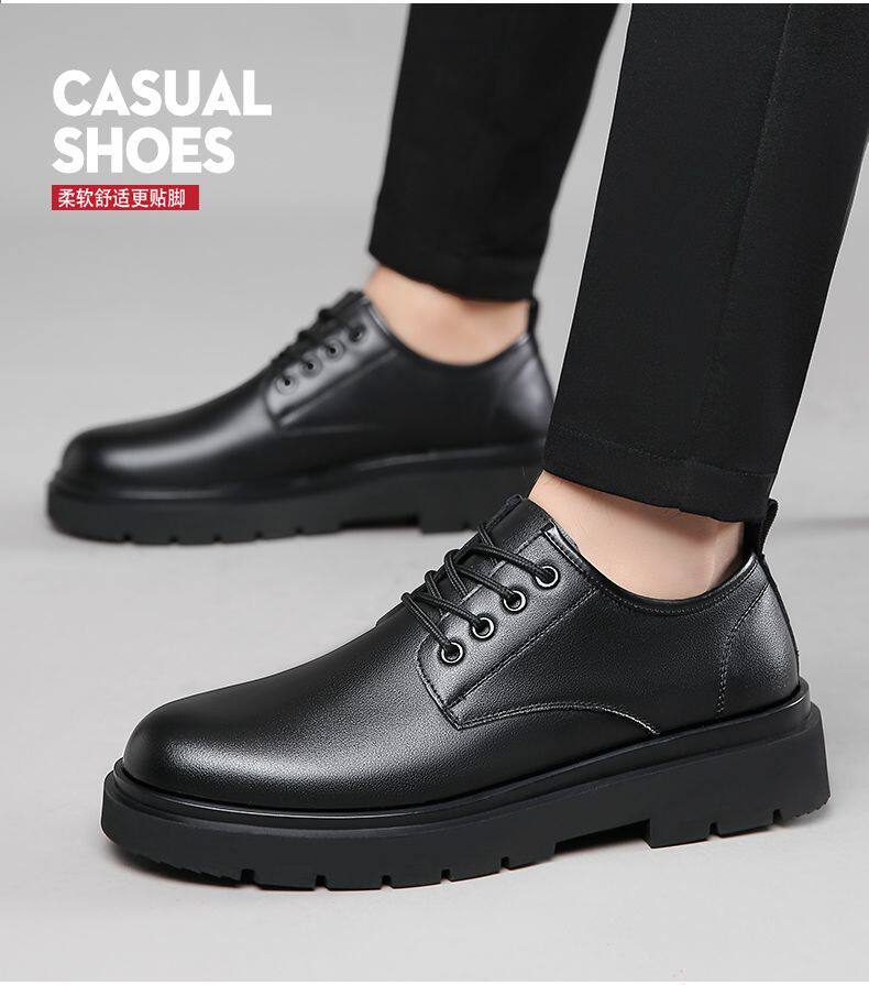 Yierkan Men's Shoes, Spring and Autumn Genuine Leather Business Men's Leather Shoes, British Style Formal Wear, Groomsmen's Shoes, Thick-Soled Breathable Large-Toe Shoes