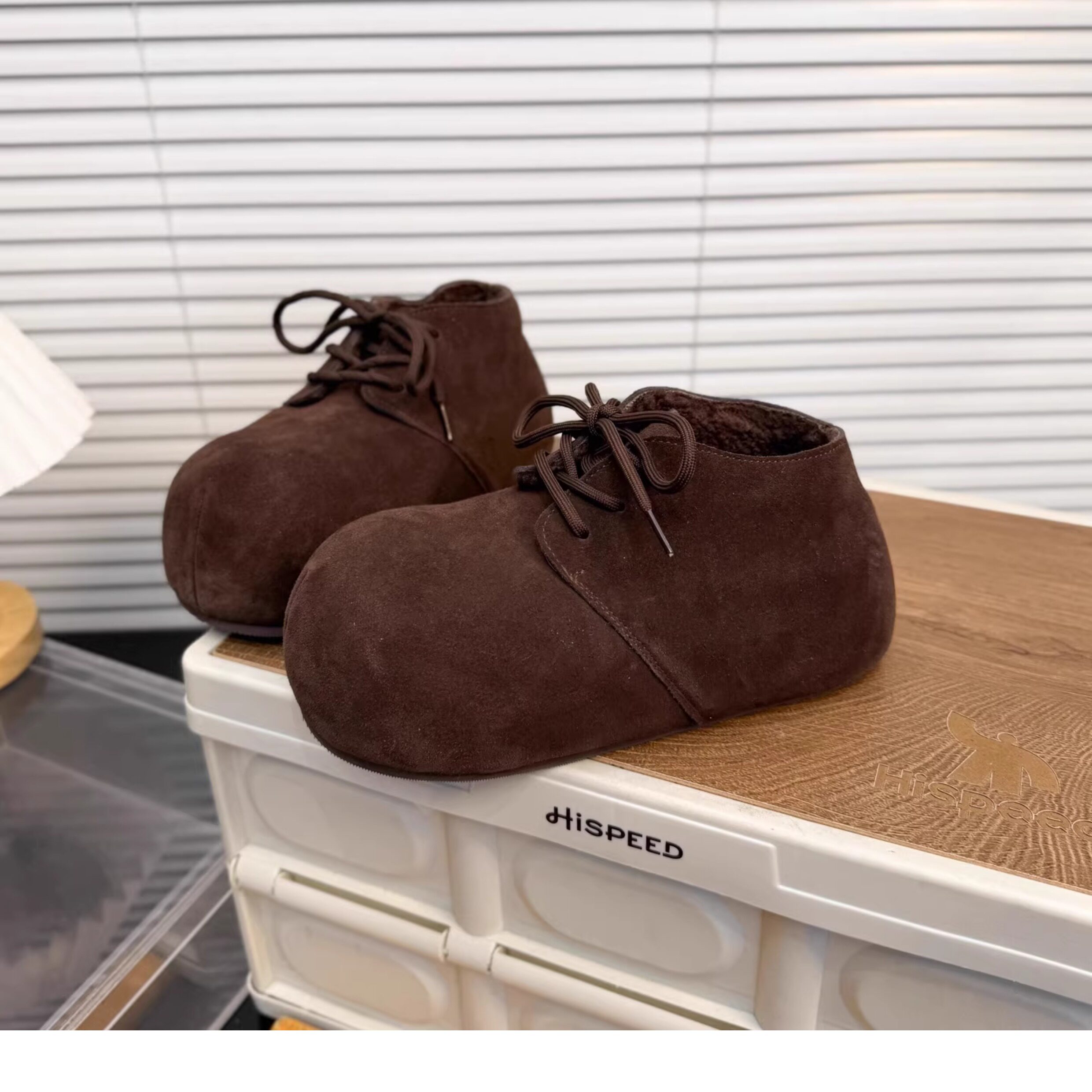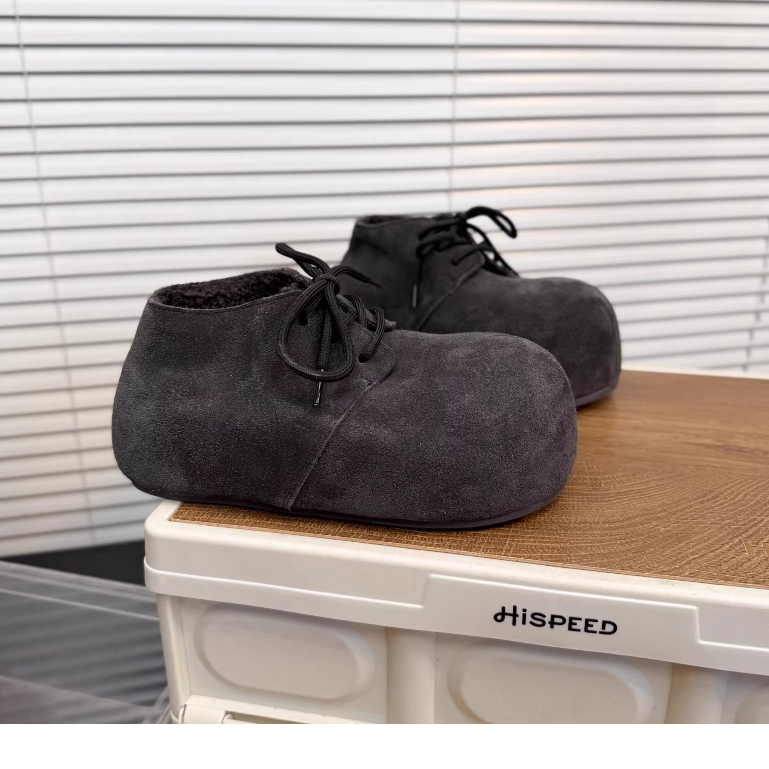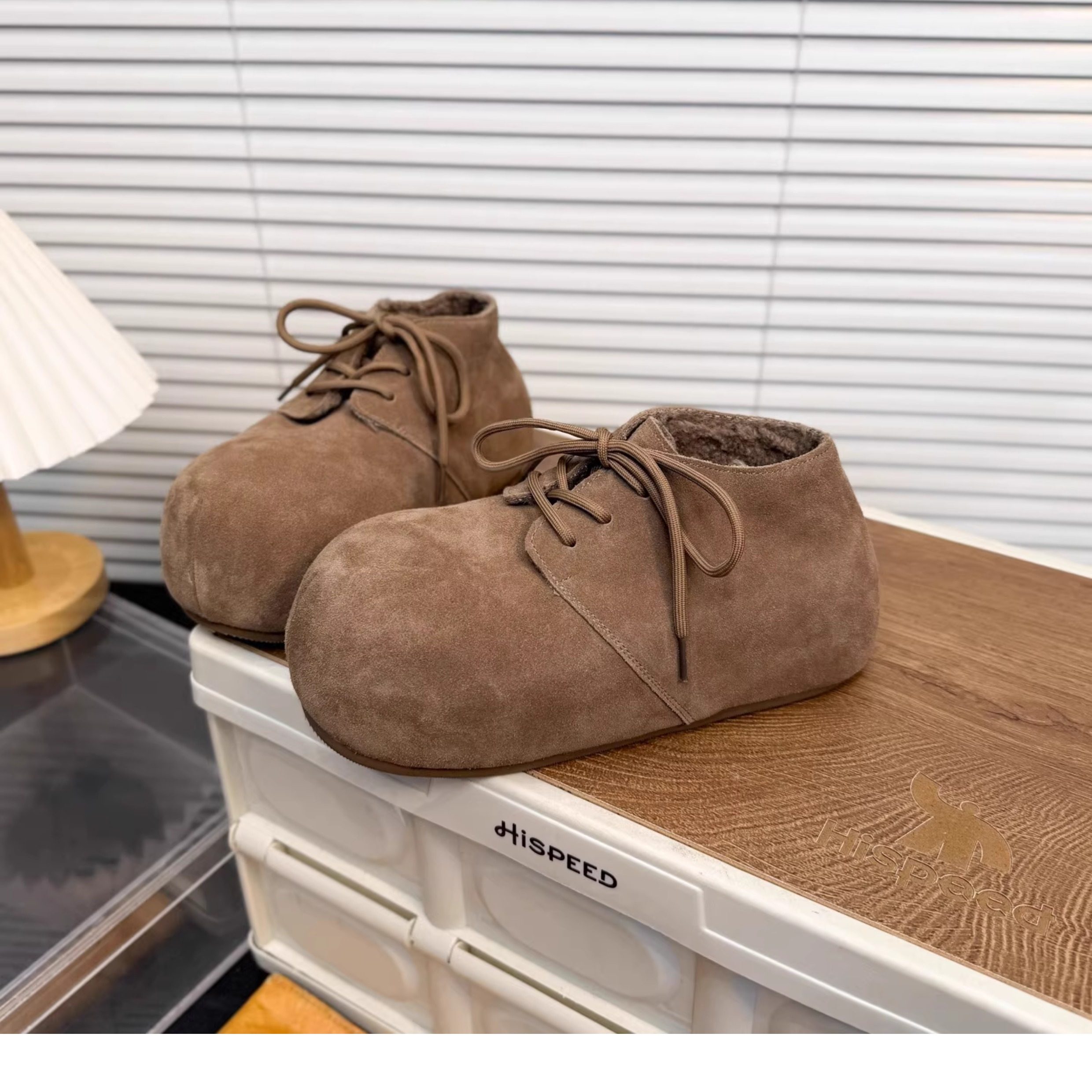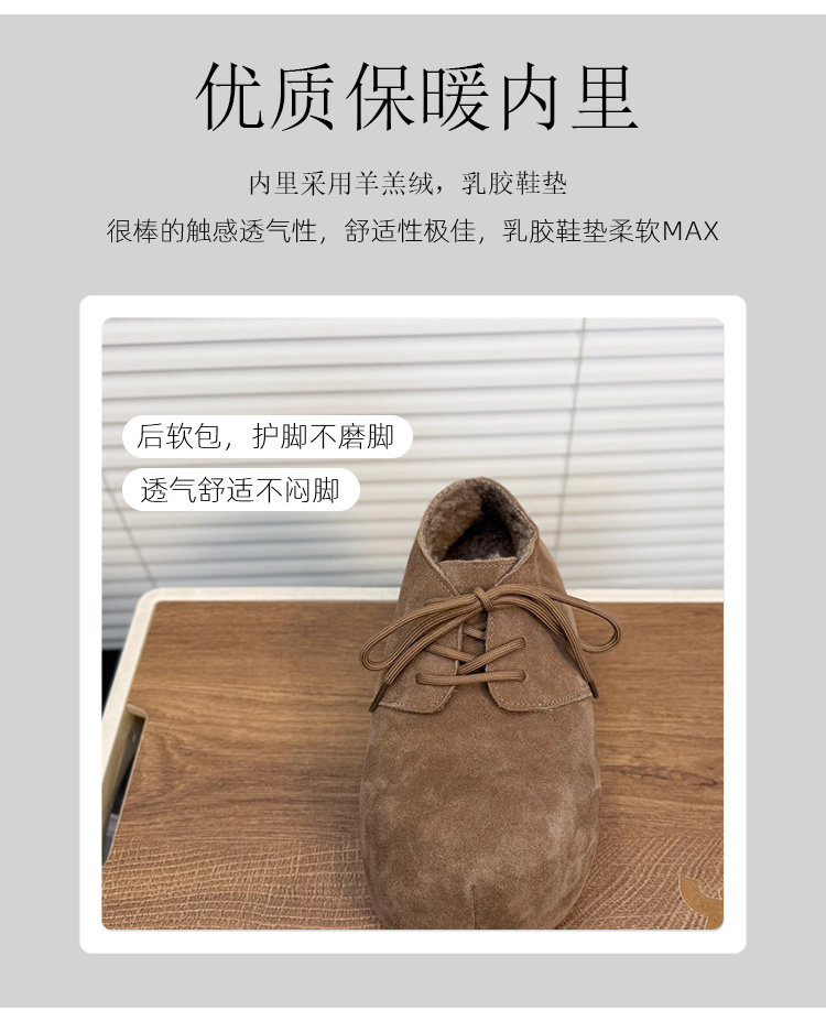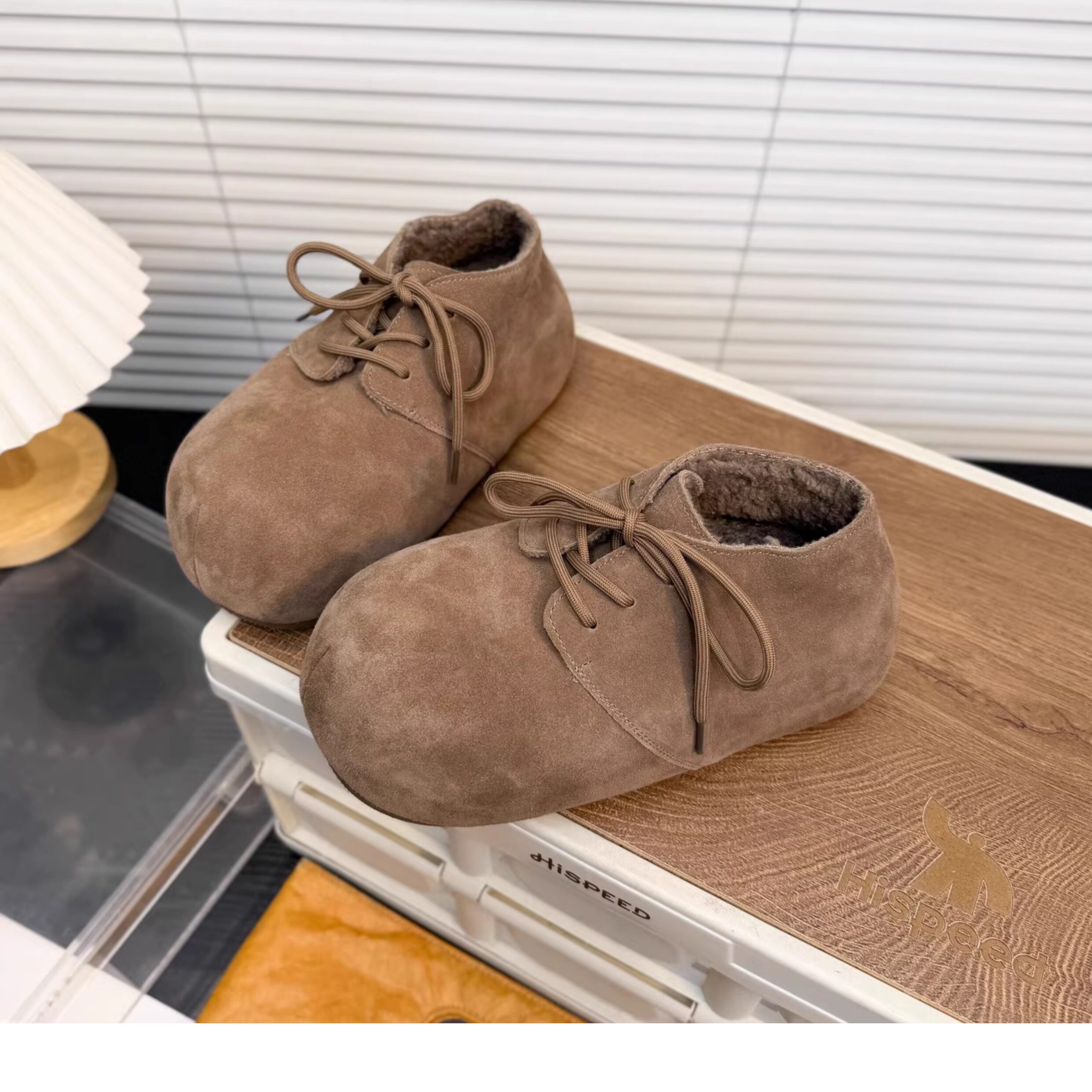 Hong Kong Genuine Leather Wool Invisible Height-Increasing Lace-Up Cotton Shoes for Women 2025 Winter New Style Versatile Casual Birkenstock Shoes