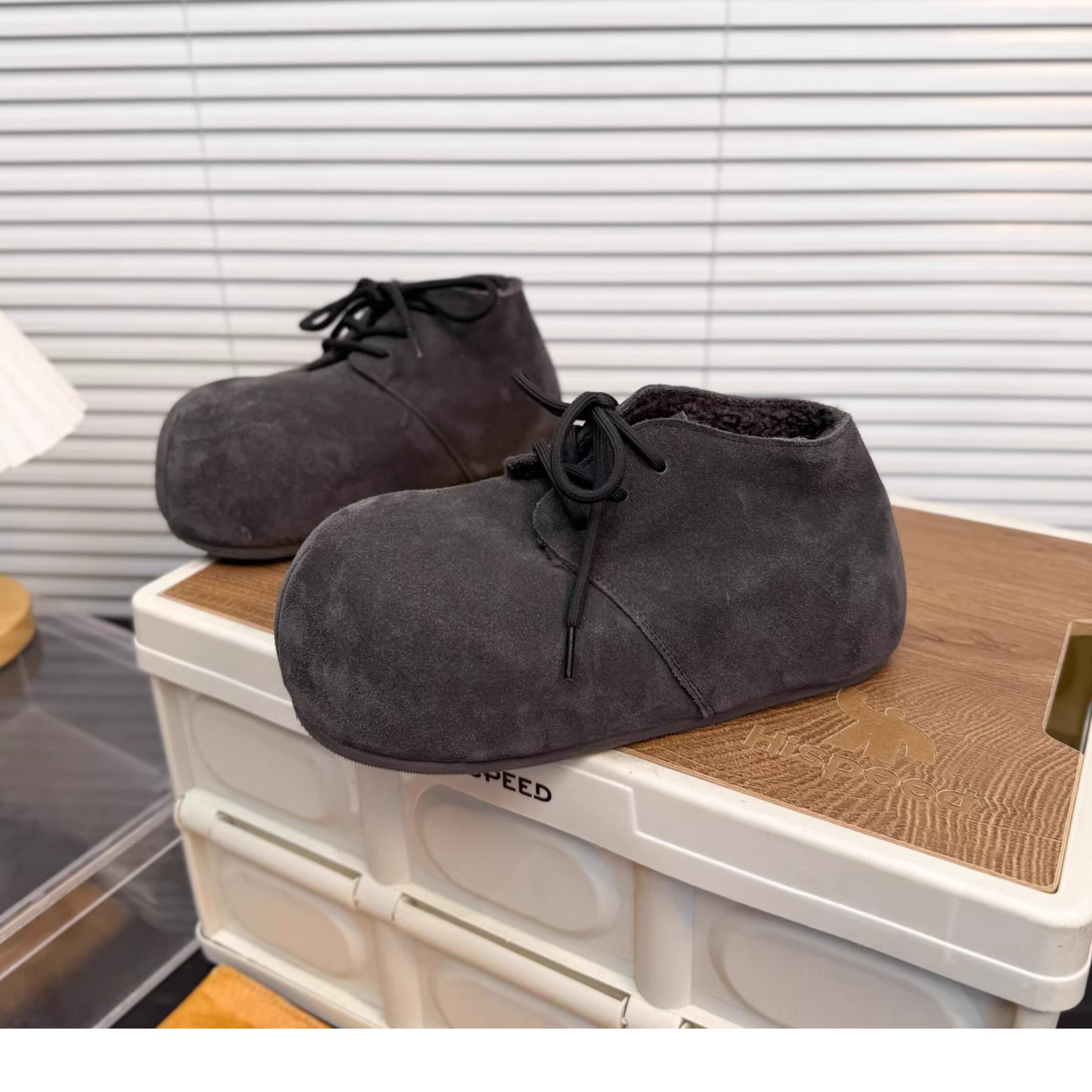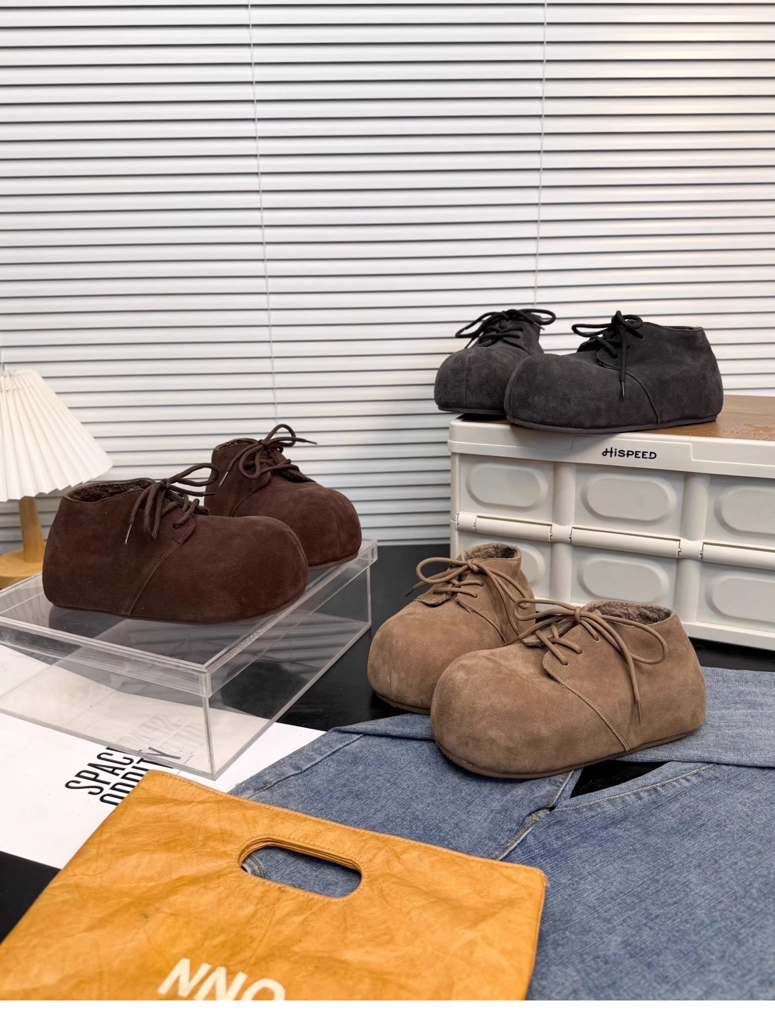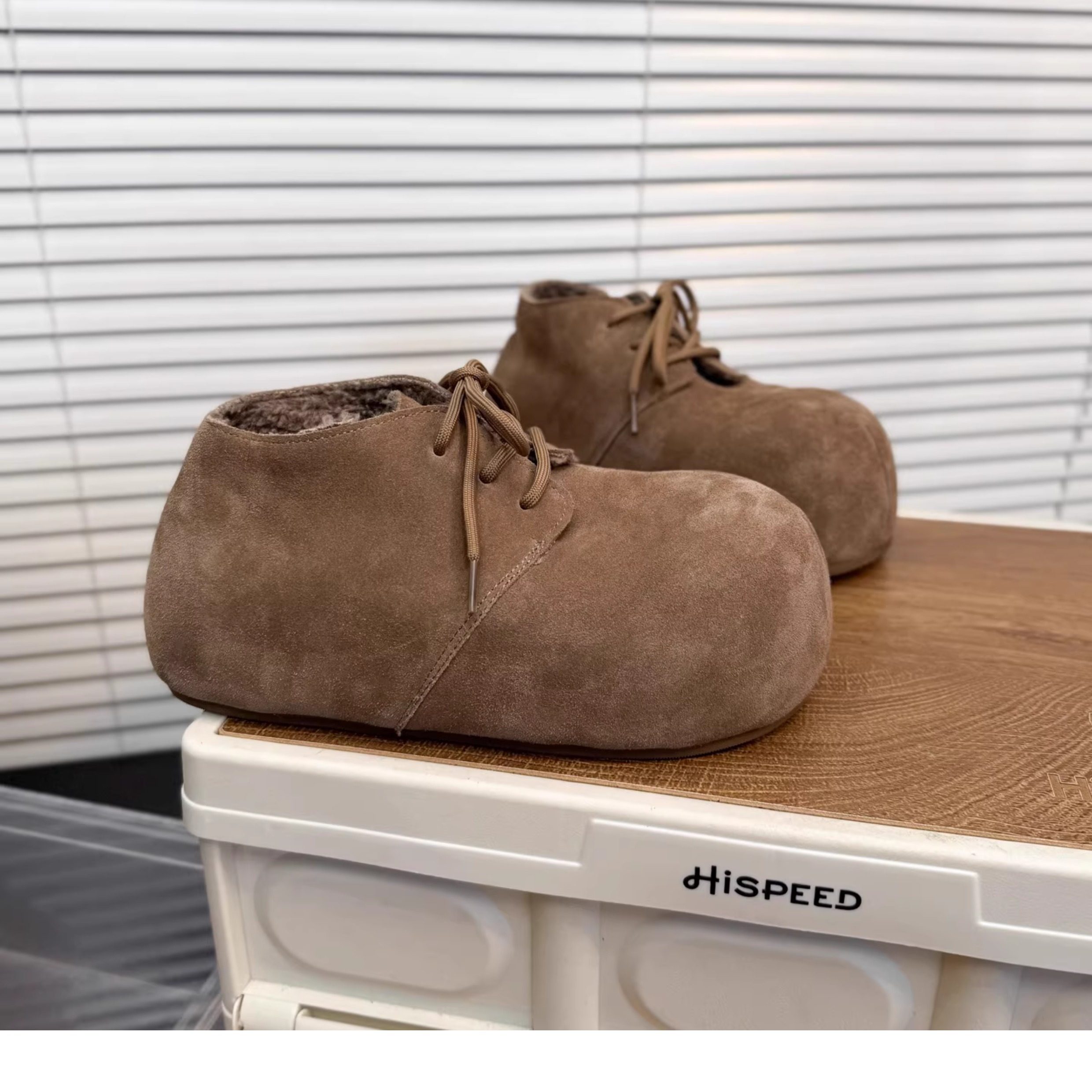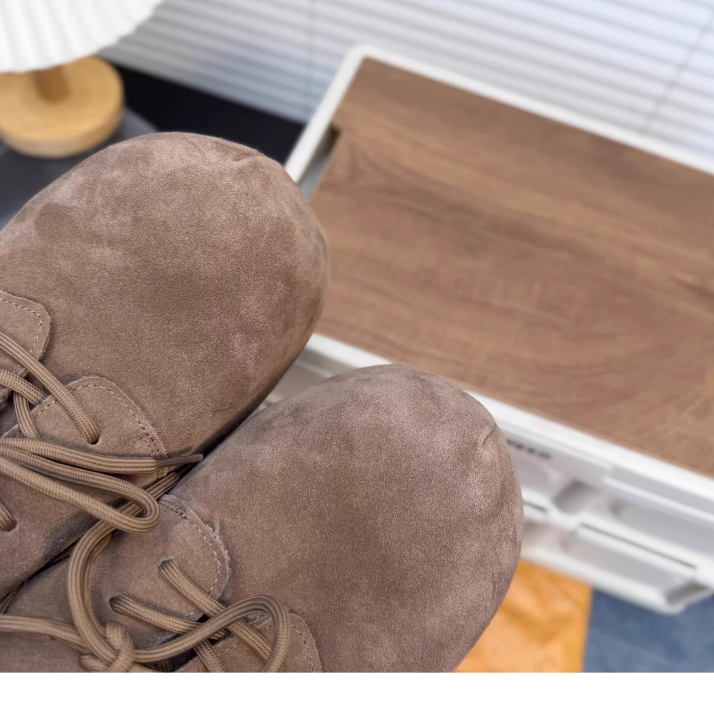 Hong Kong Genuine Leather Wool Invisible Height-Increasing Lace-Up Cotton Shoes for Women 2025 Winter New Style Versatile Casual Birkenstock Shoes