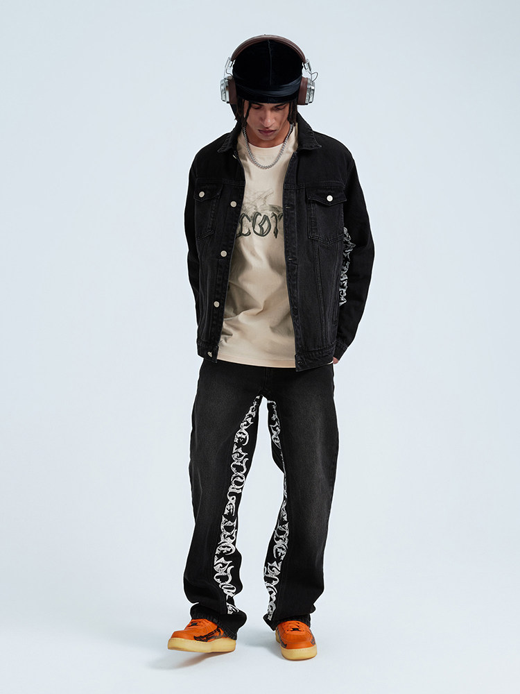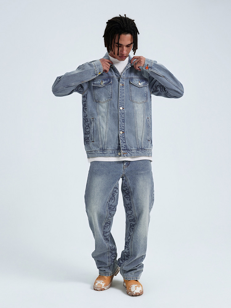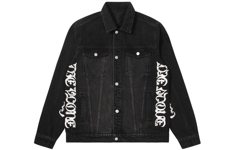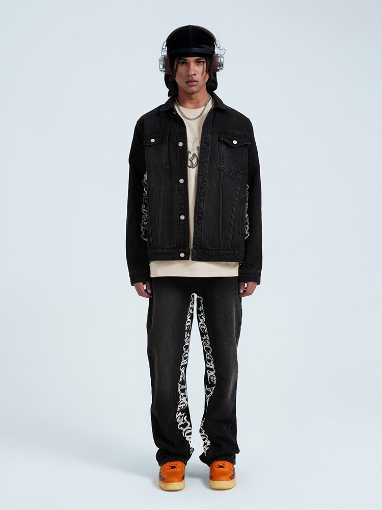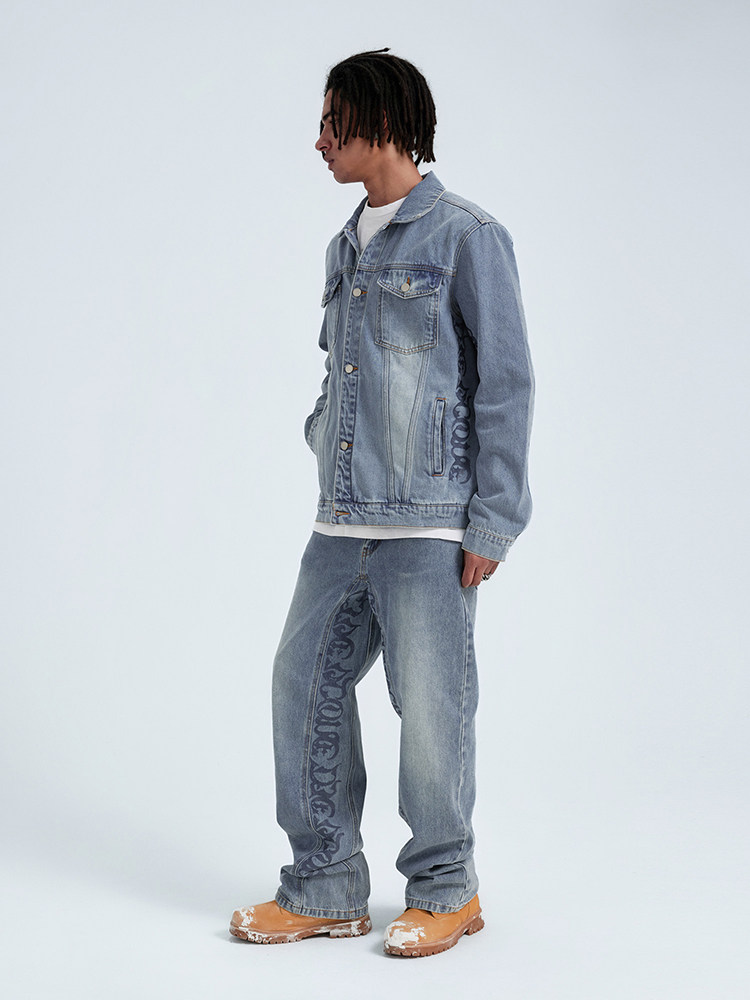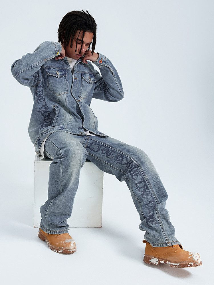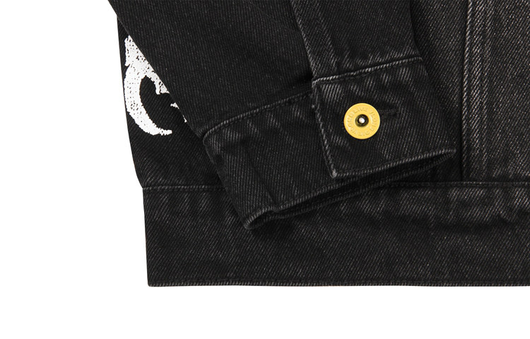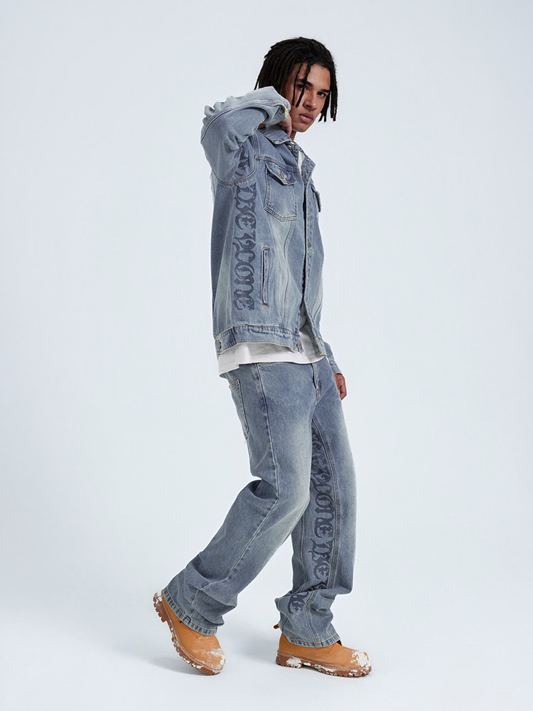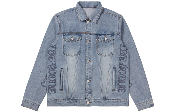 Vlone 25 New Gothic Style Slogan Large Logo Print Three-Dimensional Cut Distressed Washed Casual Denim Jacket
