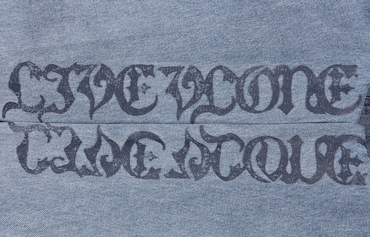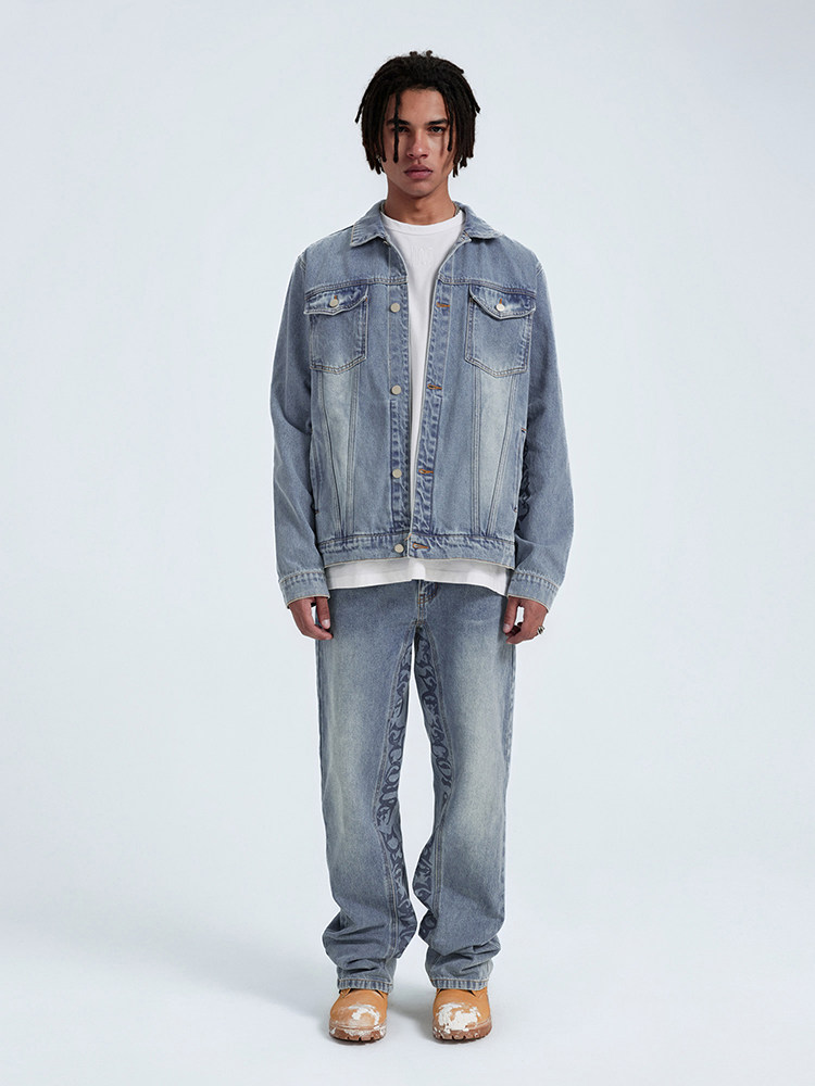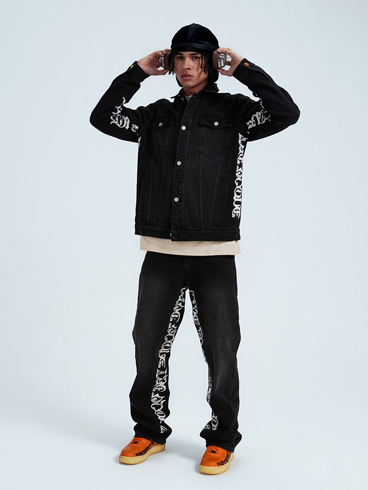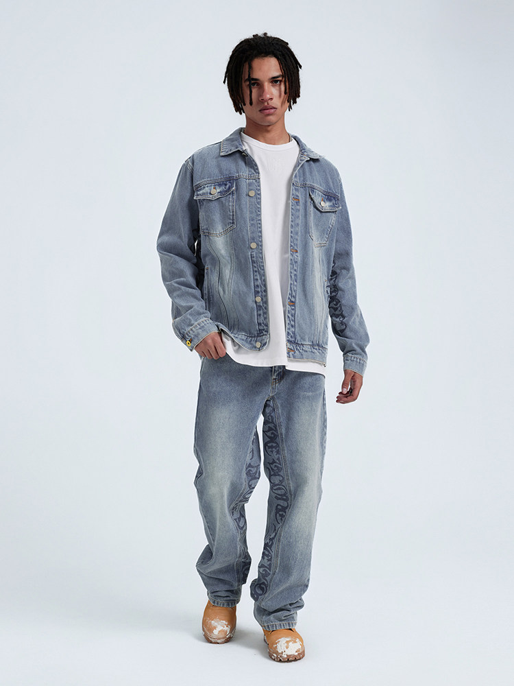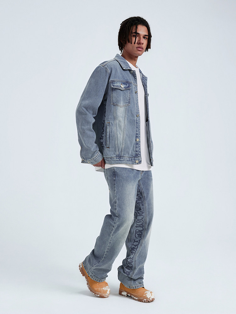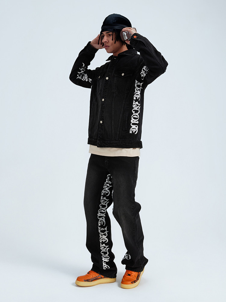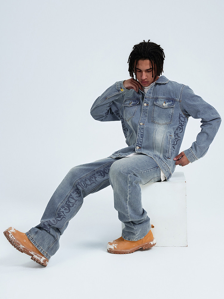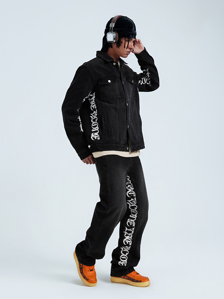 Vlone 25 New Gothic Style Slogan Large Logo Print Three-Dimensional Cut Distressed Washed Casual Denim Jacket
