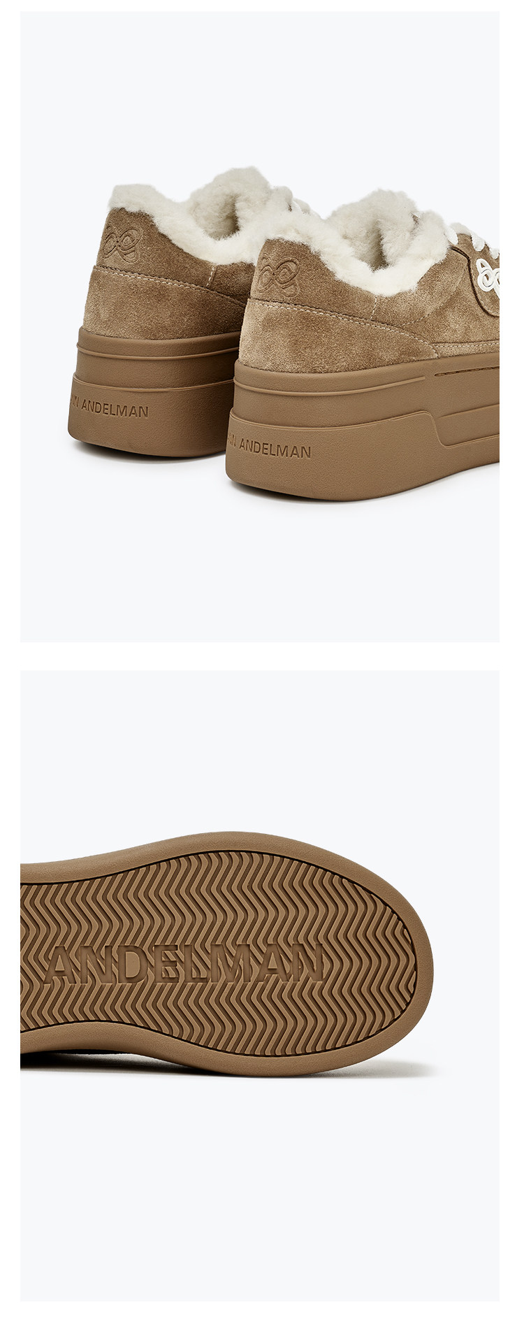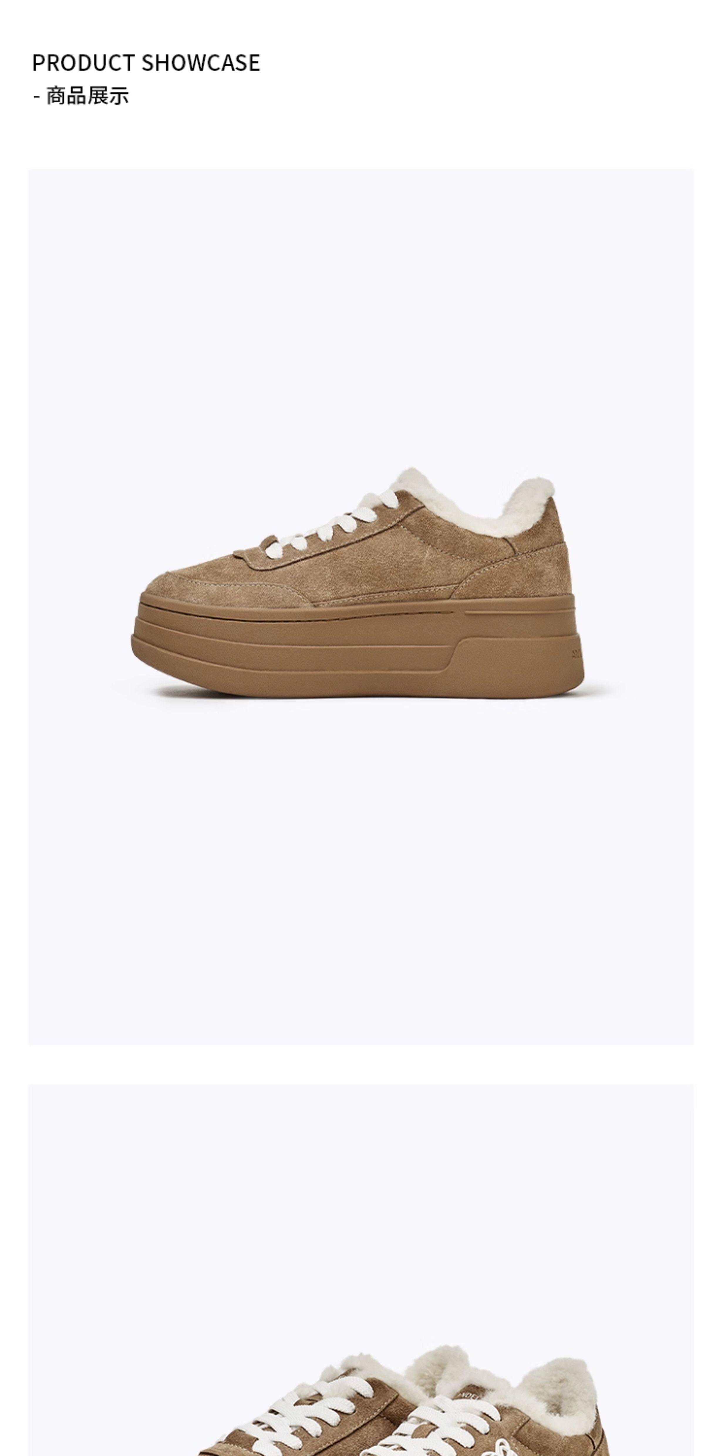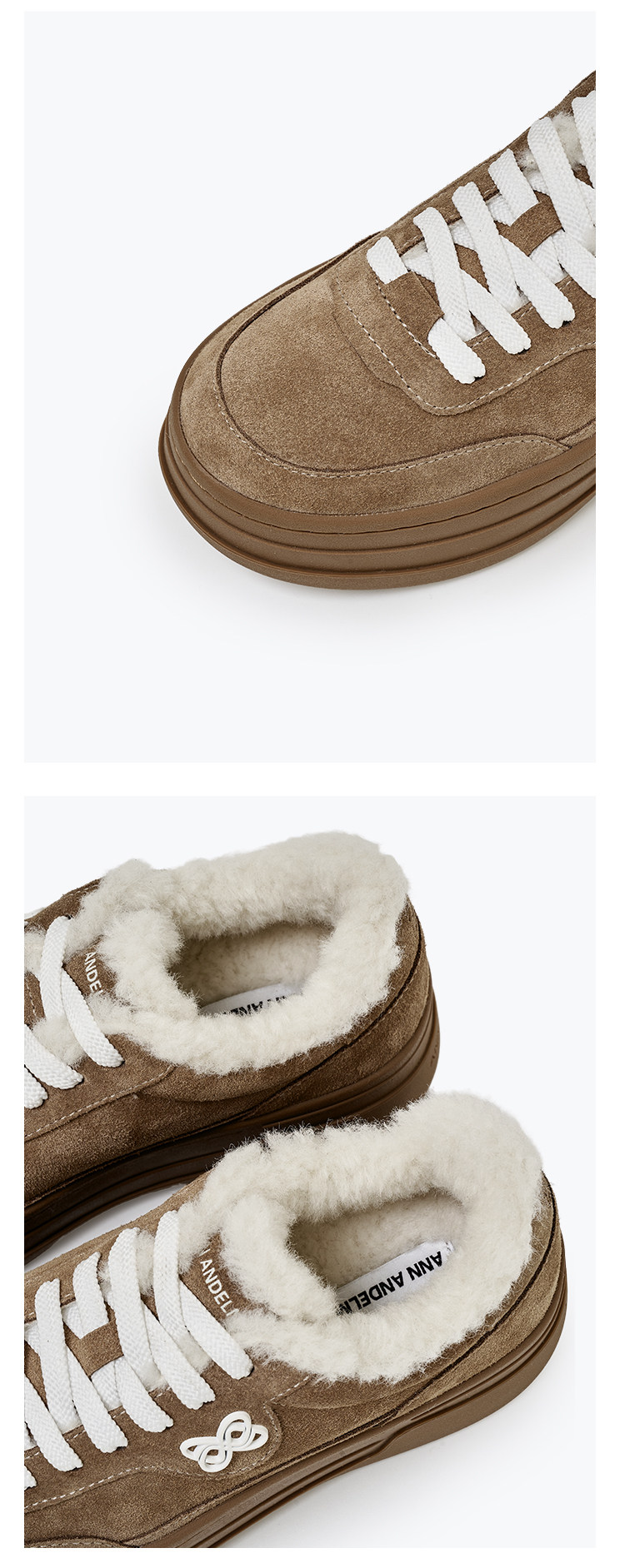 Ann Andelman Thick-Soled Fleece-Lined Casual Sneakers Winter Warm Fashion Versatile Lace-Up Height-Increasing Furry Cotton Shoes