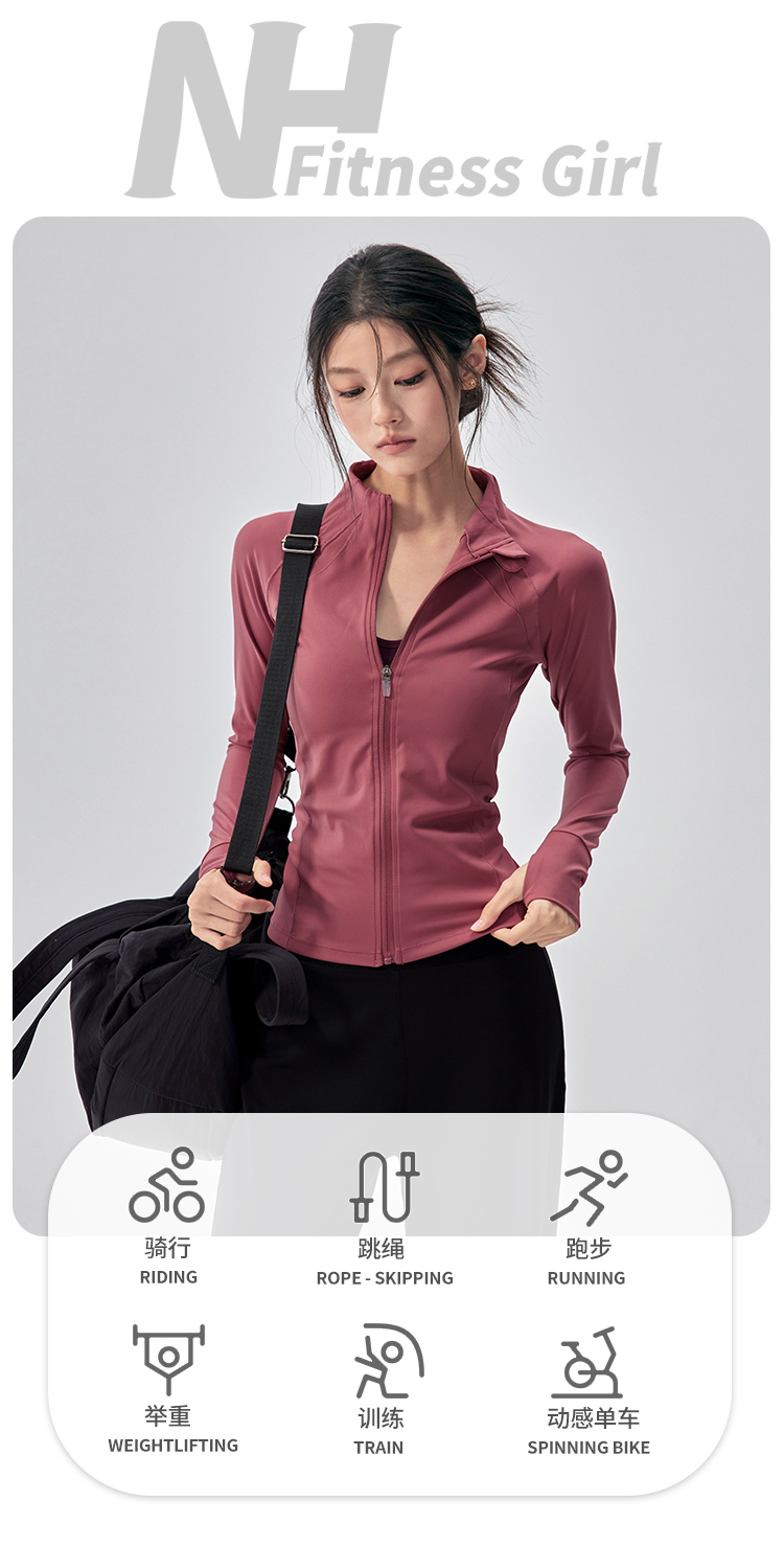 Fitness Girl Stand-Up Collar Yoga Jacket Running Pilates Training Slimming Fleece-Lined Sports Top Autumn and Winter New Style