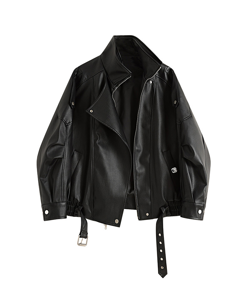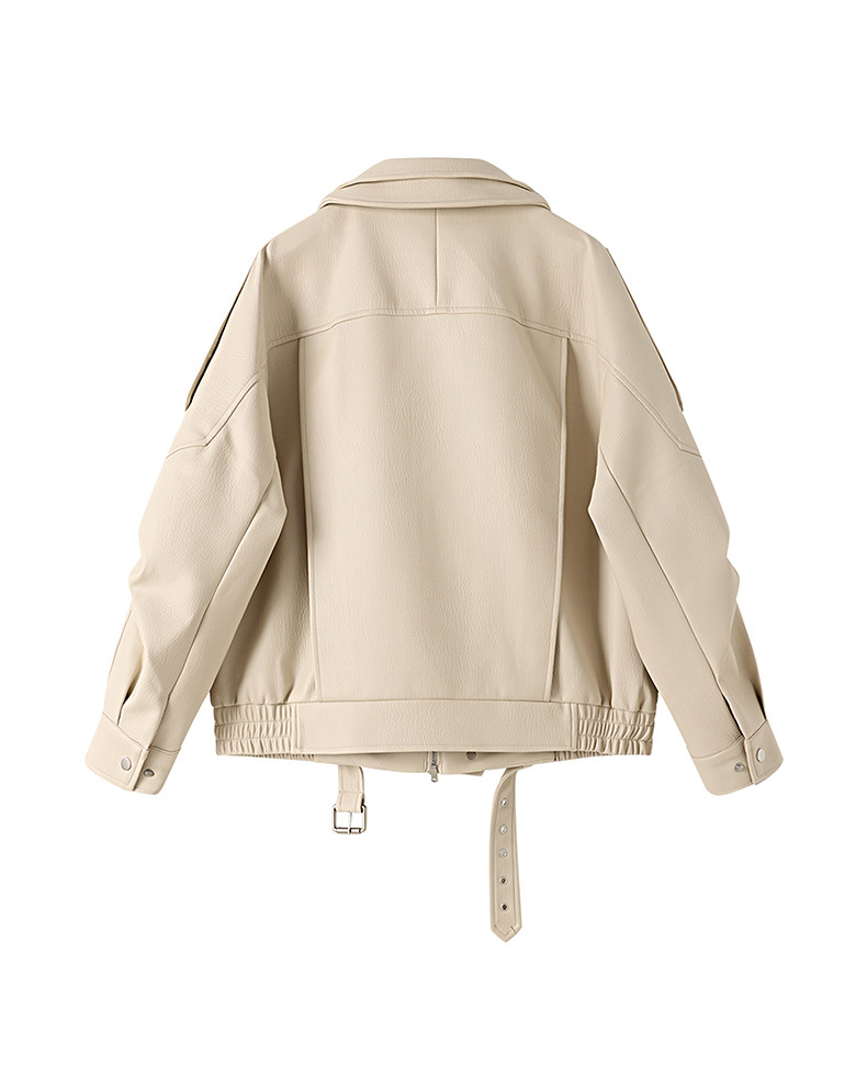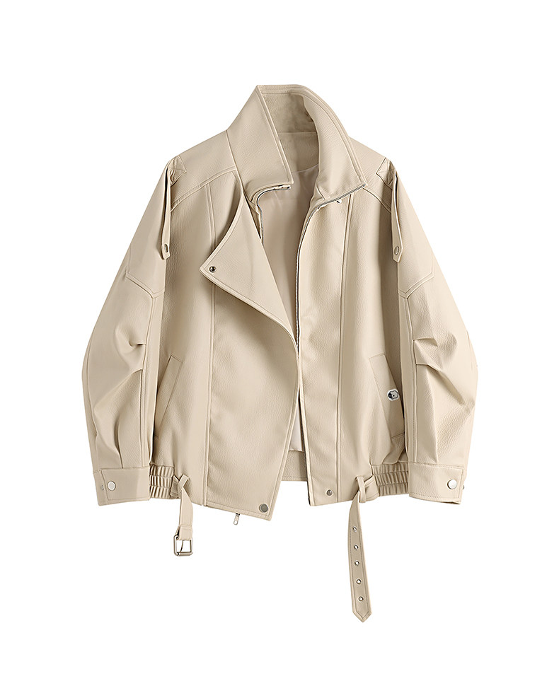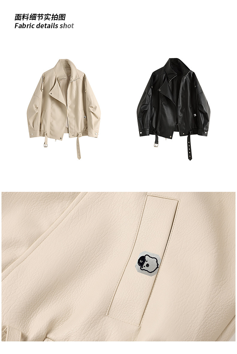 Chocoolate American Retro Pu Leather Short Jacket for Women, Autumn and Winter Stand Collar Padded Thickened Jacket