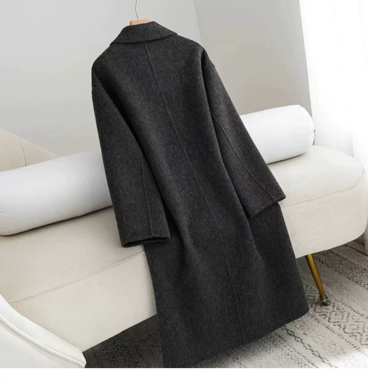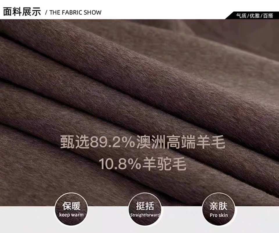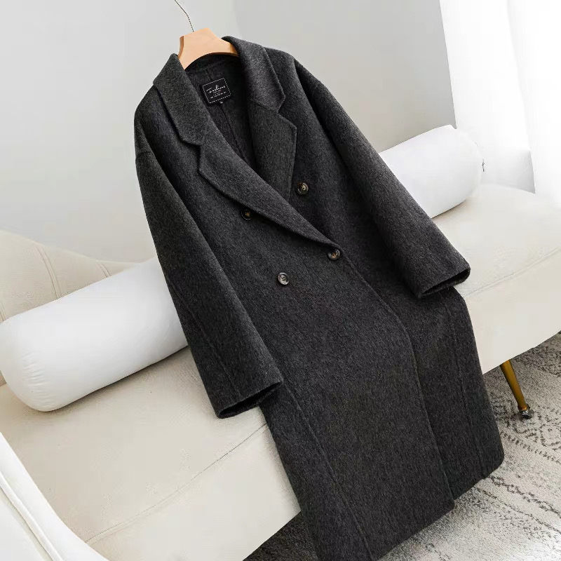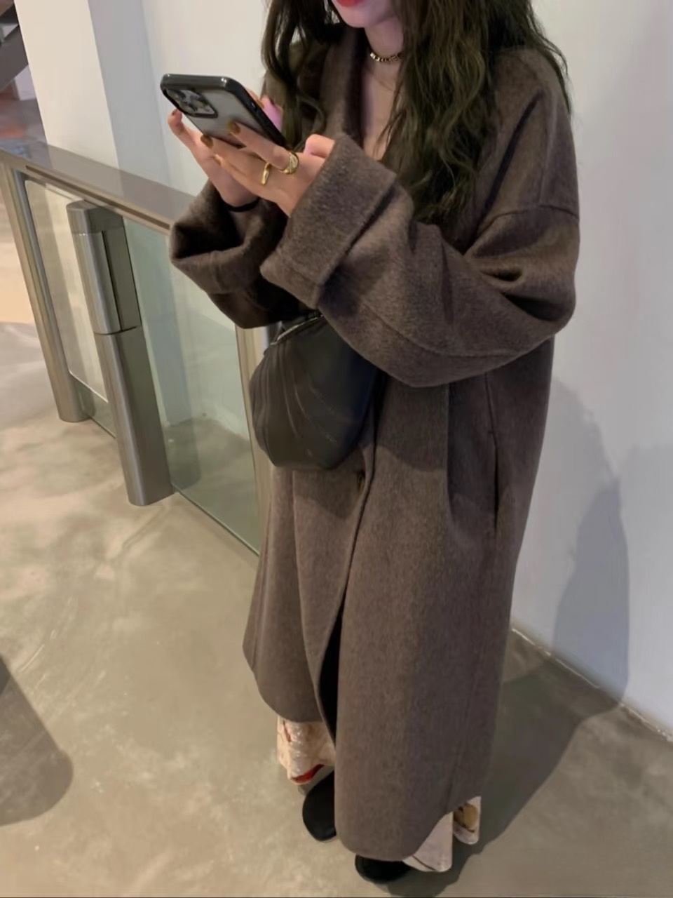 Mocha Brown Double-Sided Cashmere Coat for Women, Mid-Length, Lazy Style, 2025 New Korean Style Loose Woolen Coat