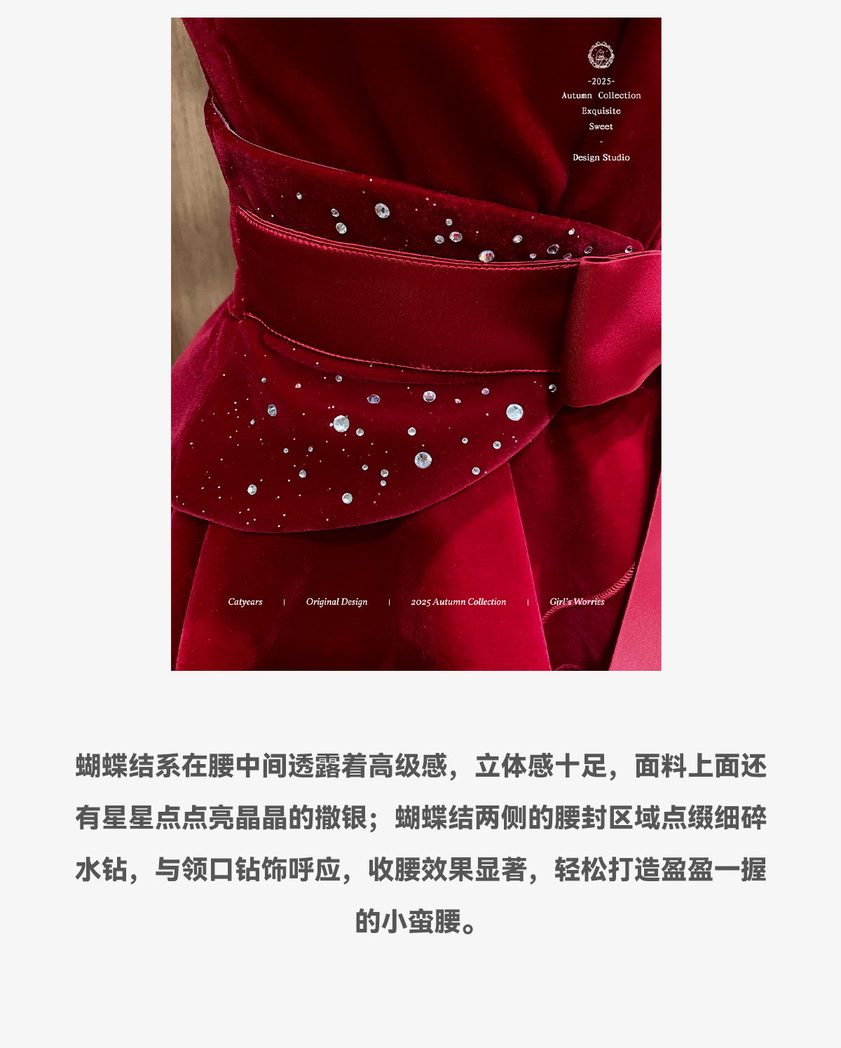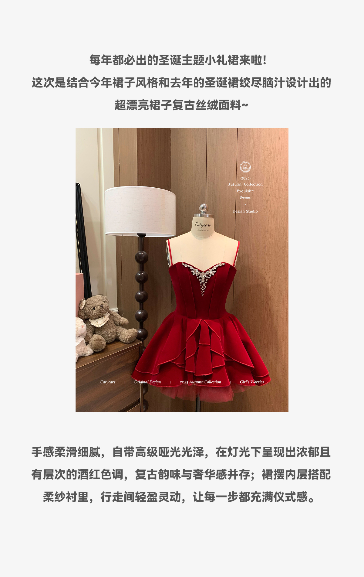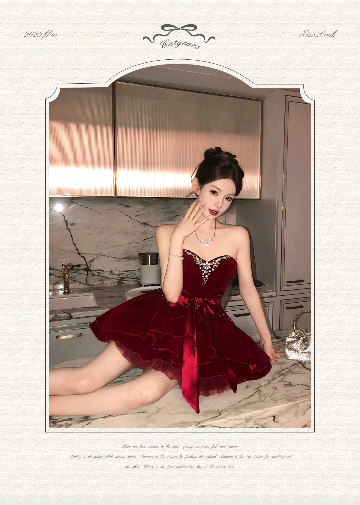 Catyears Year of the Cat Romantic~Christmas Themed Mini Dress Retro Red Velvet Dress + Waist Belt
