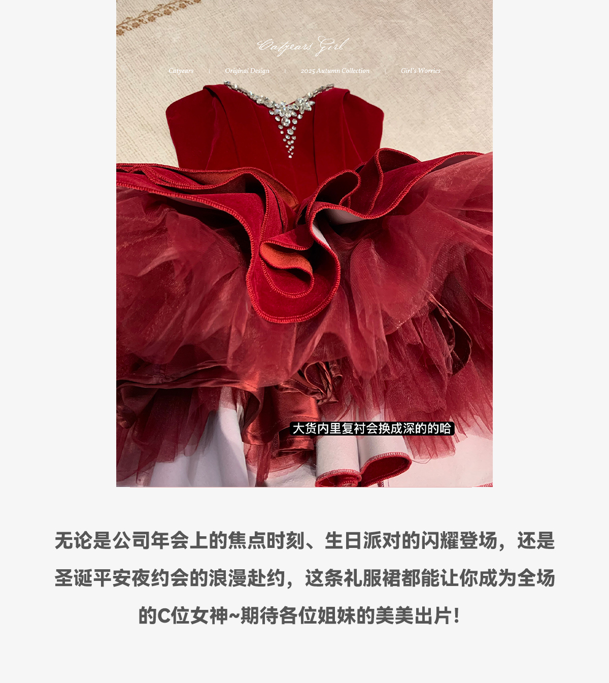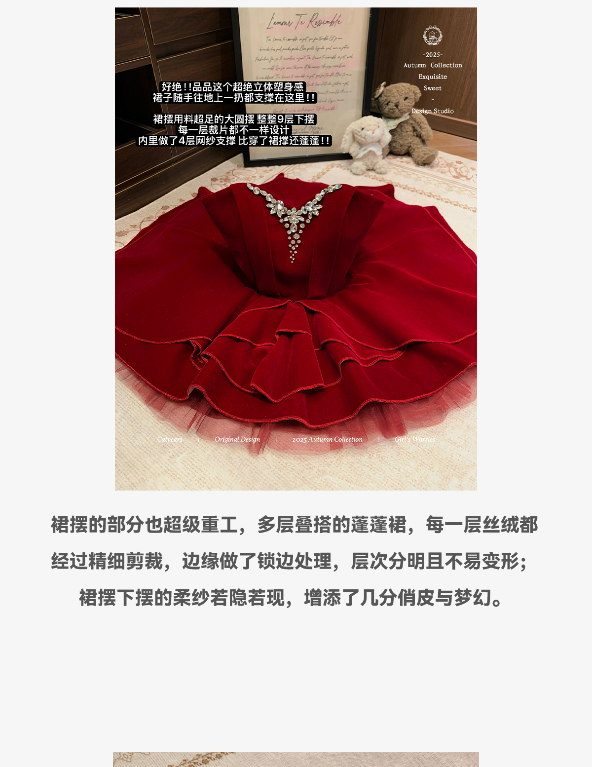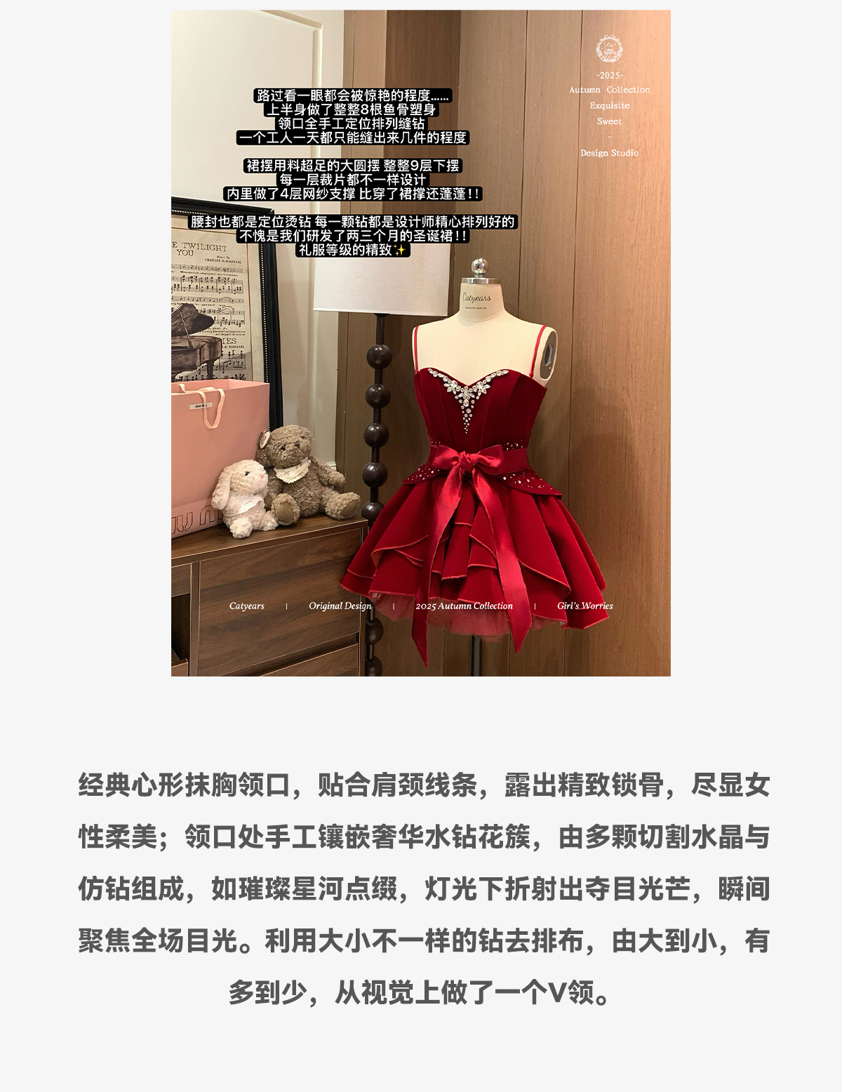 Catyears Year of the Cat Romantic~Christmas Themed Mini Dress Retro Red Velvet Dress + Waist Belt