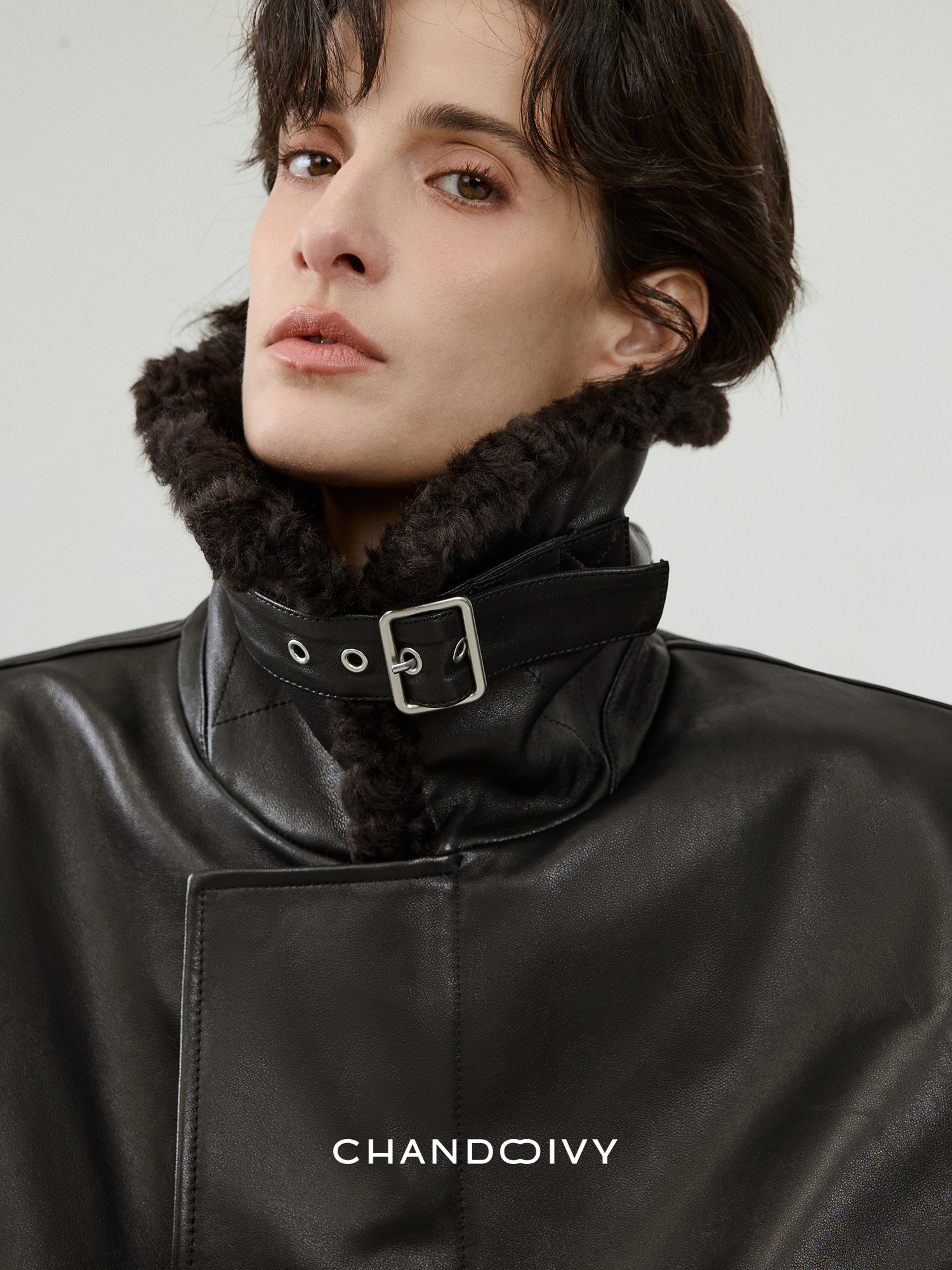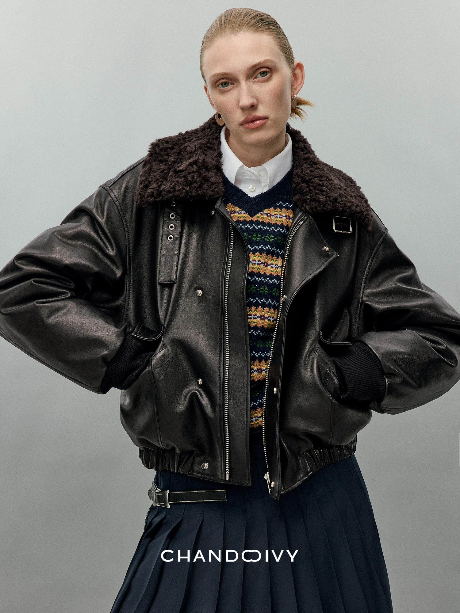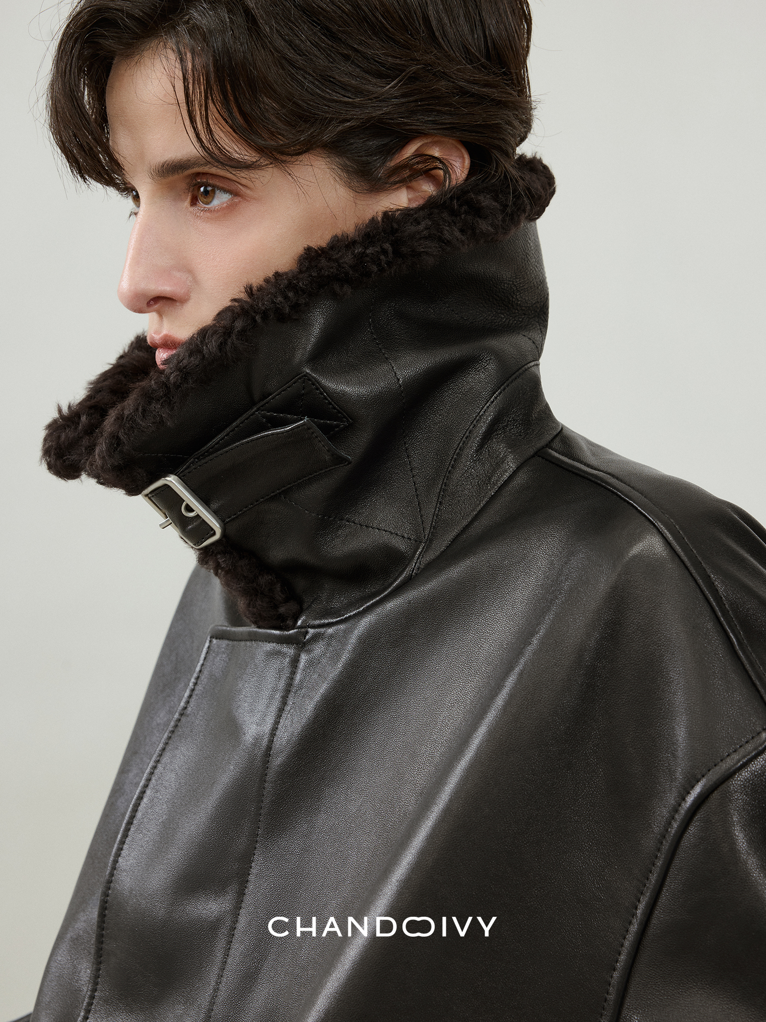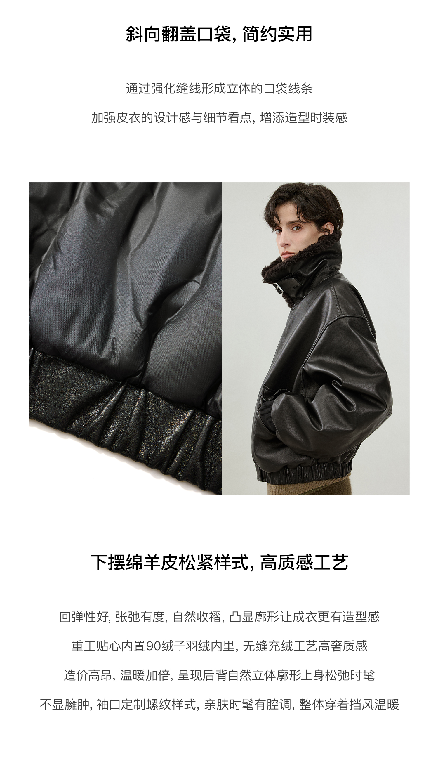 Chandooivy American Retro Full Vegetable-Tanned Goatskin 95 White Goose down Merino Fur Collar Leather down Jacket