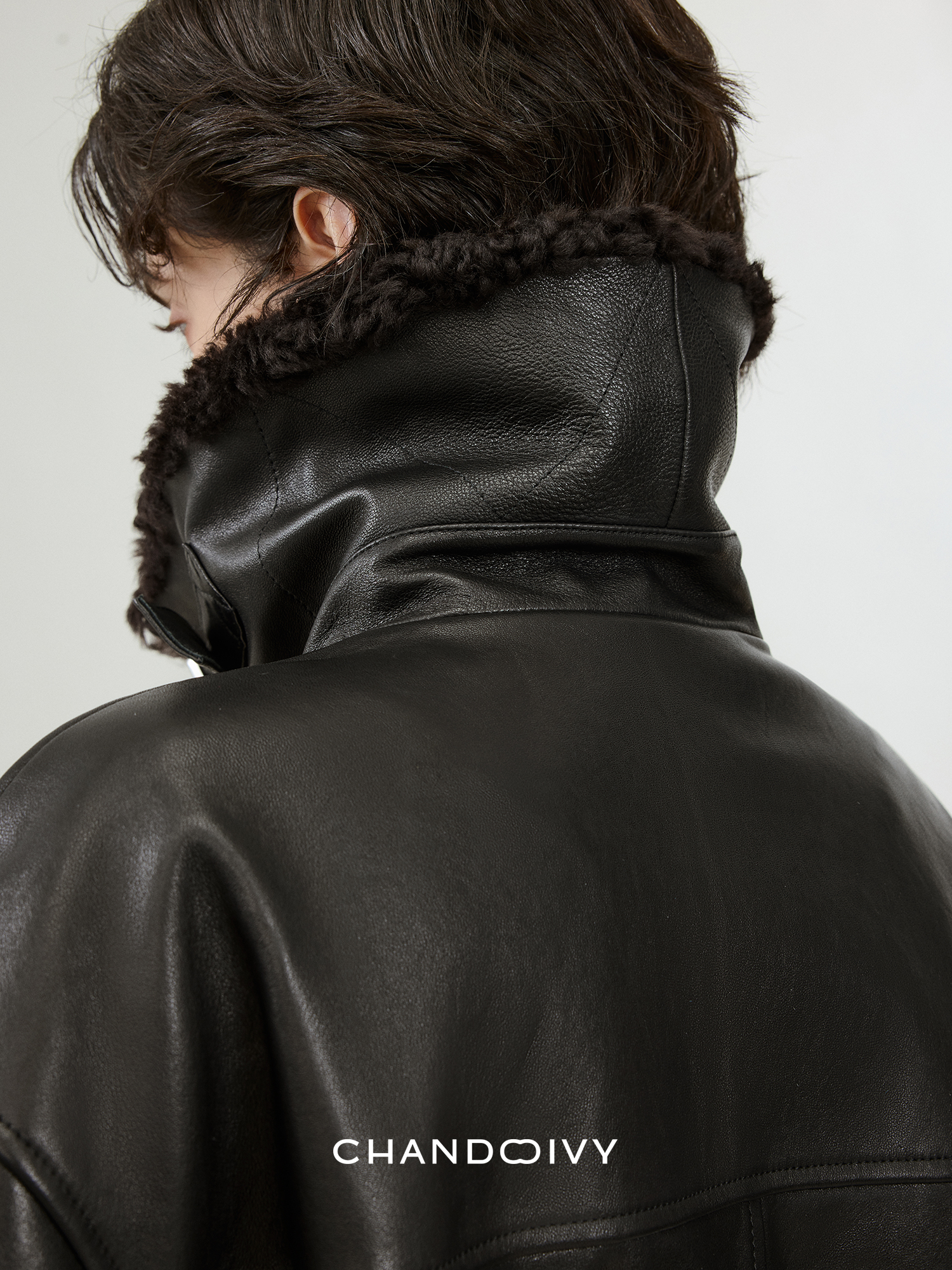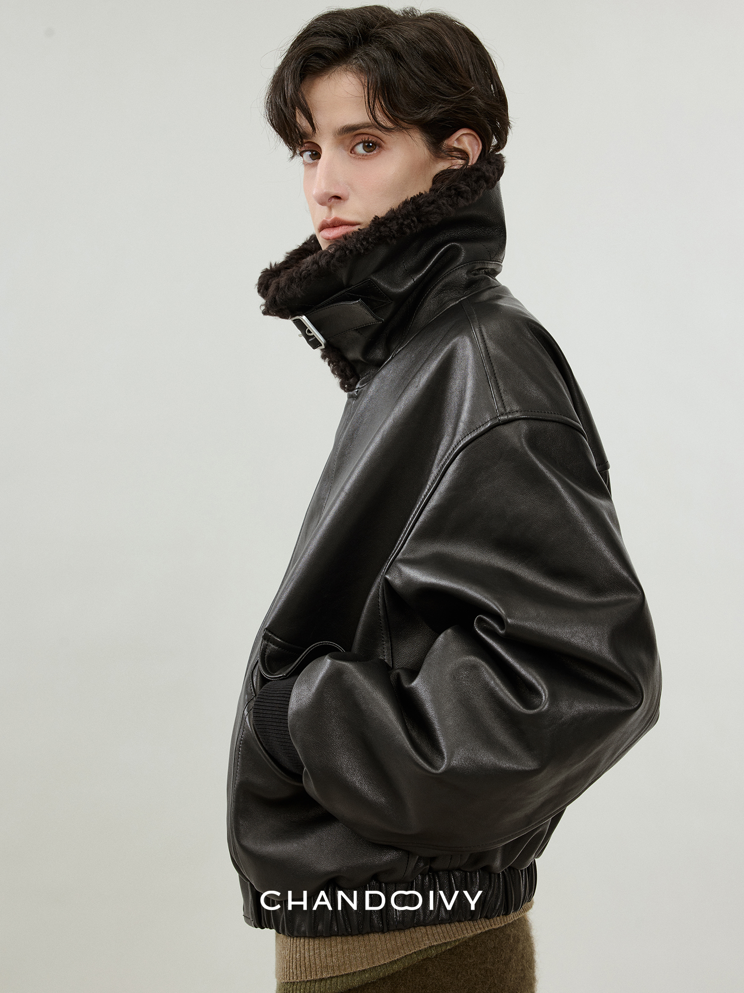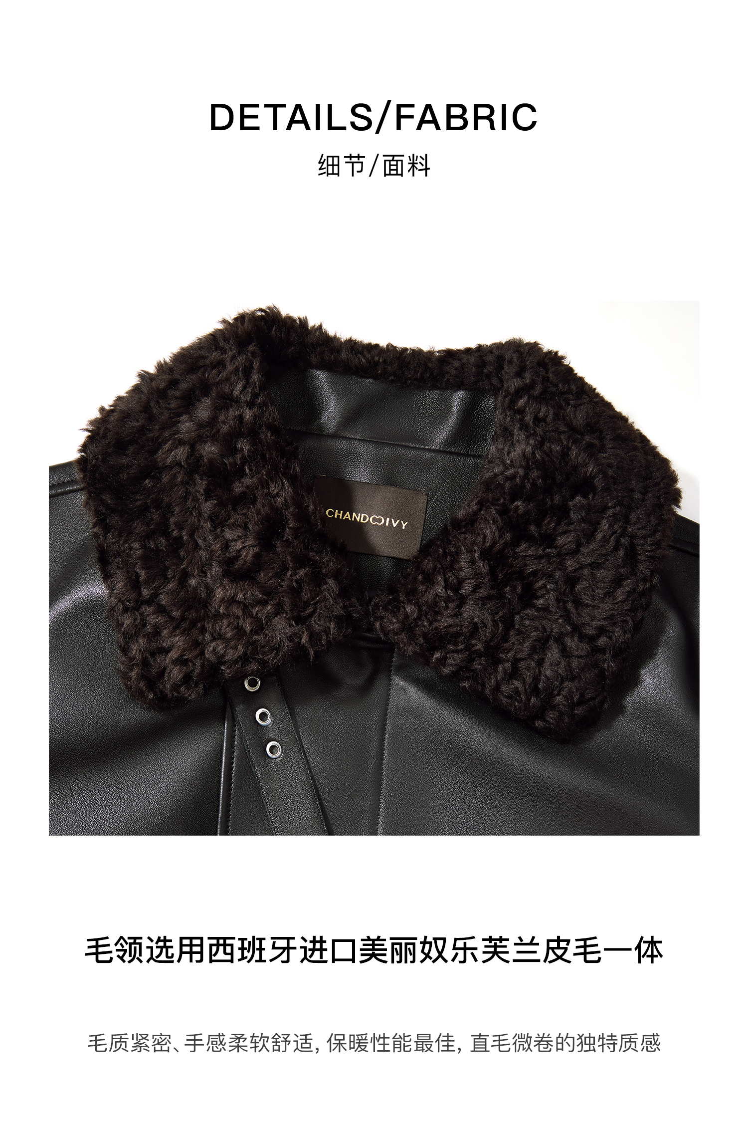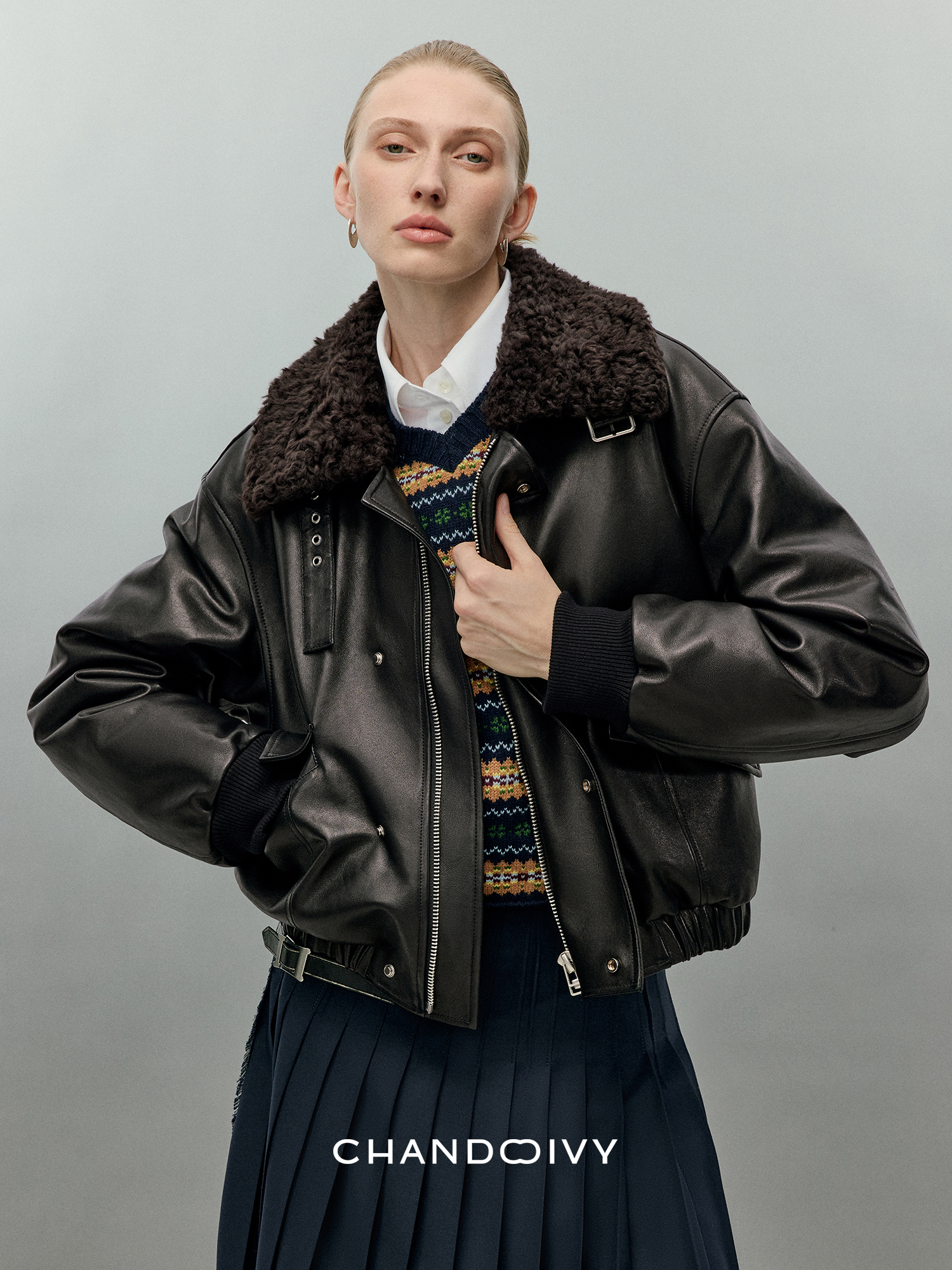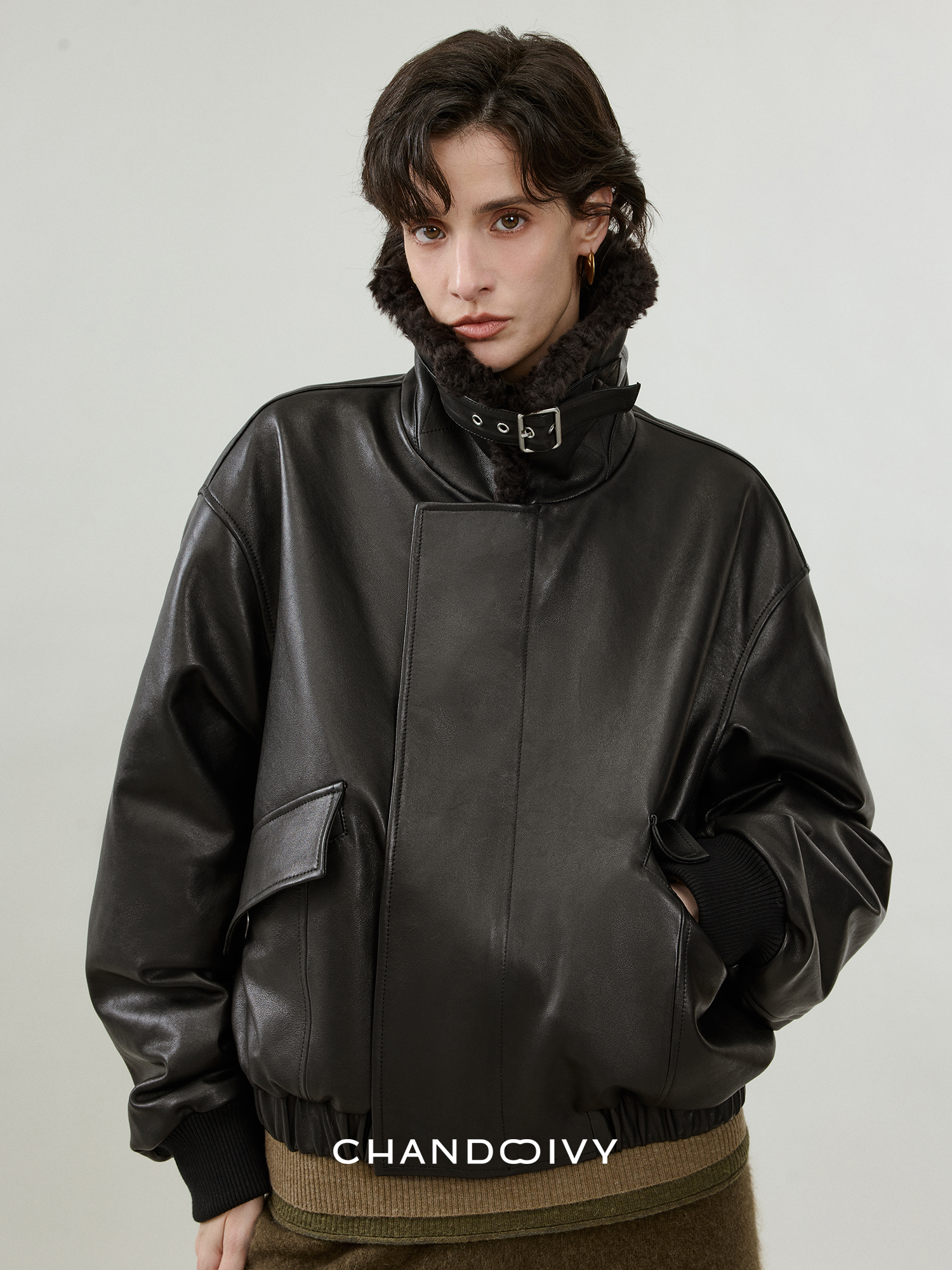 Chandooivy American Retro Full Vegetable-Tanned Goatskin 95 White Goose down Merino Fur Collar Leather down Jacket