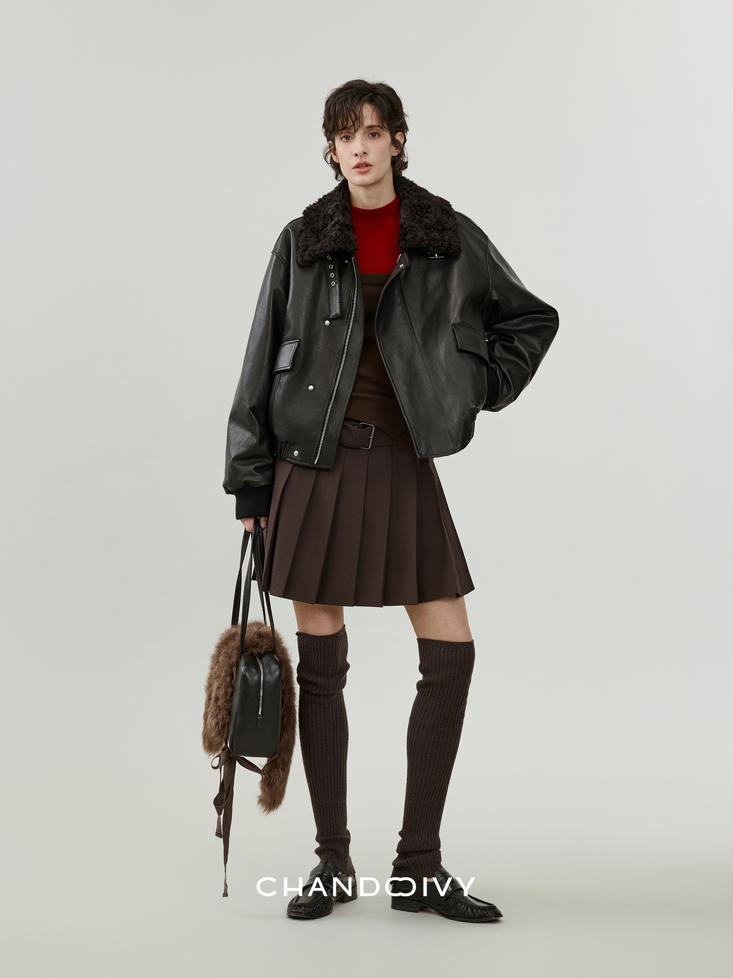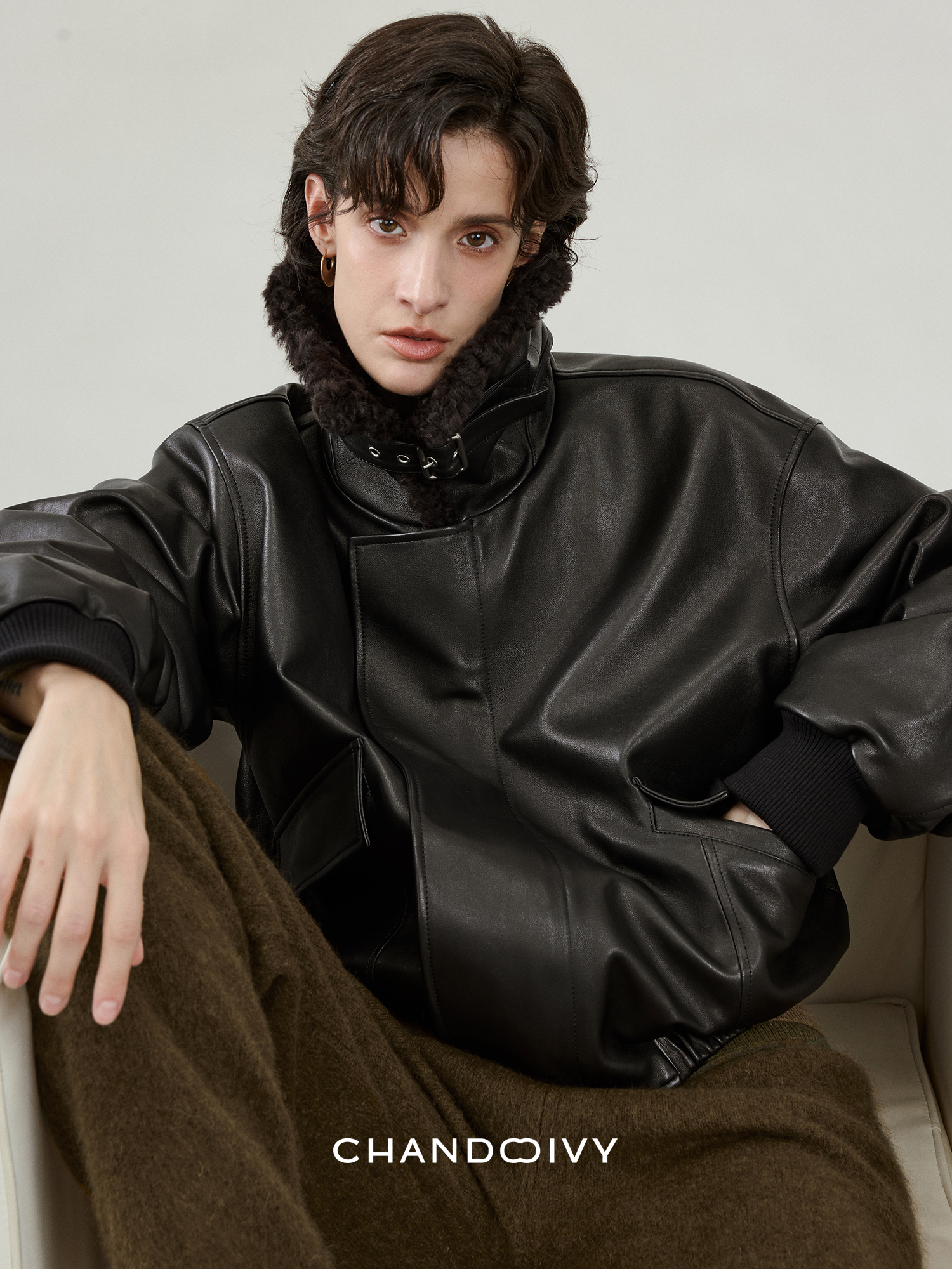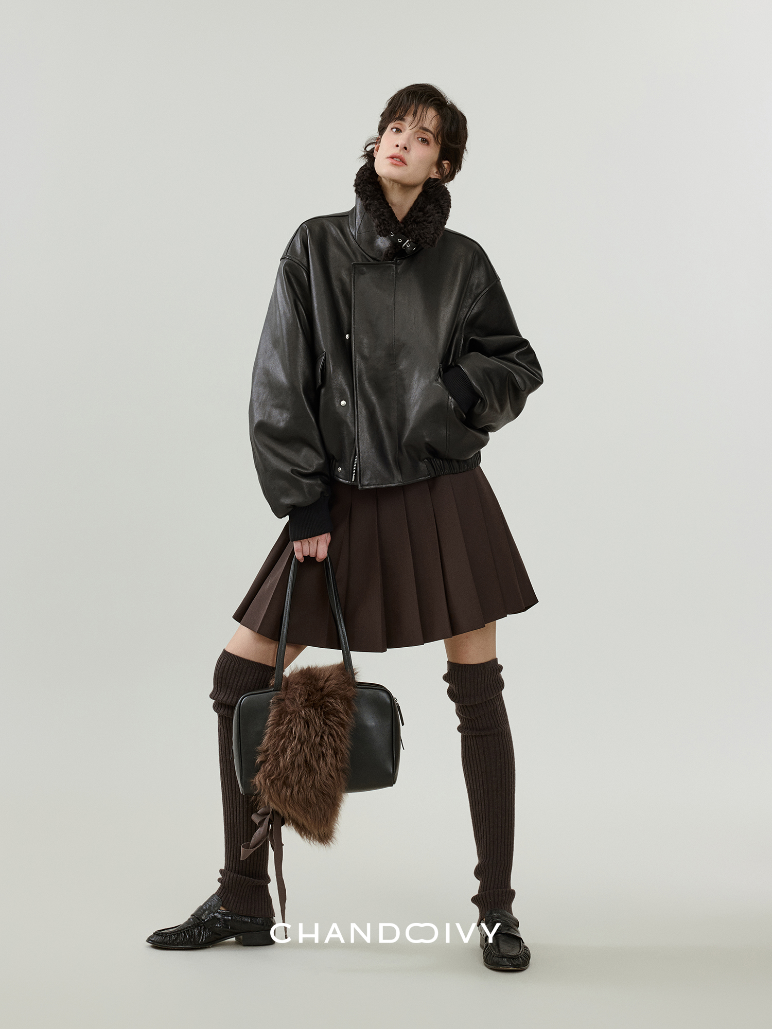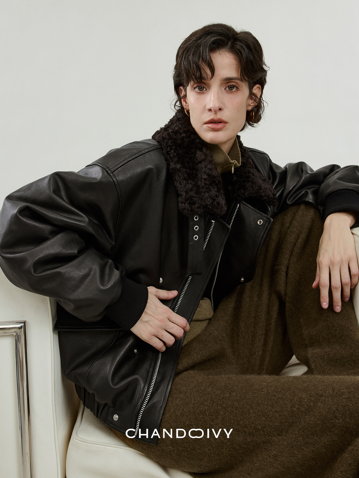 Chandooivy American Retro Full Vegetable-Tanned Goatskin 95 White Goose down Merino Fur Collar Leather down Jacket