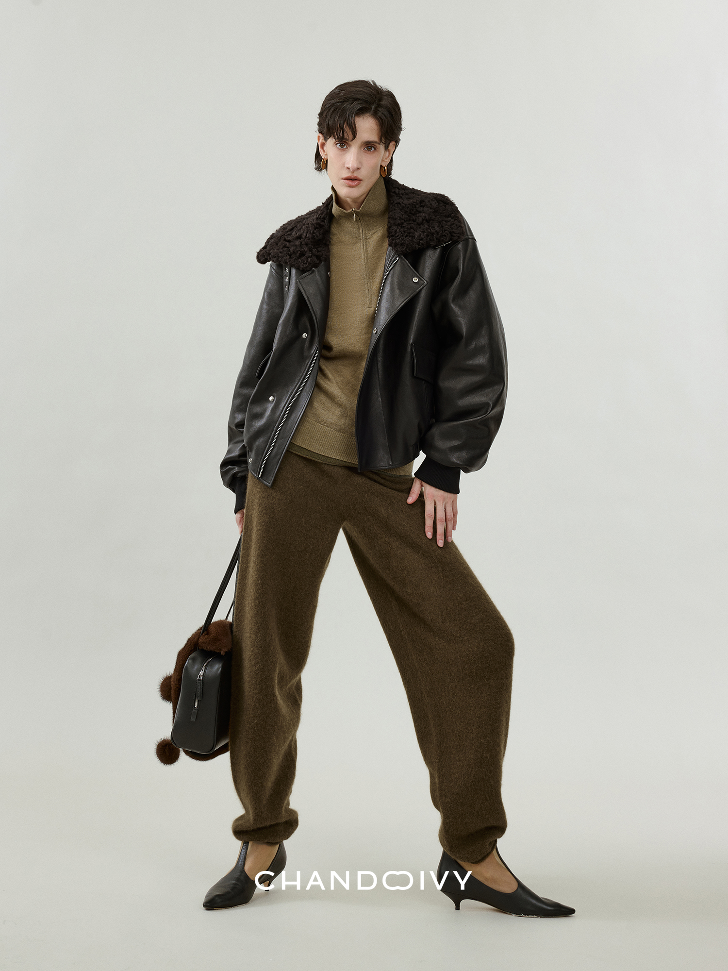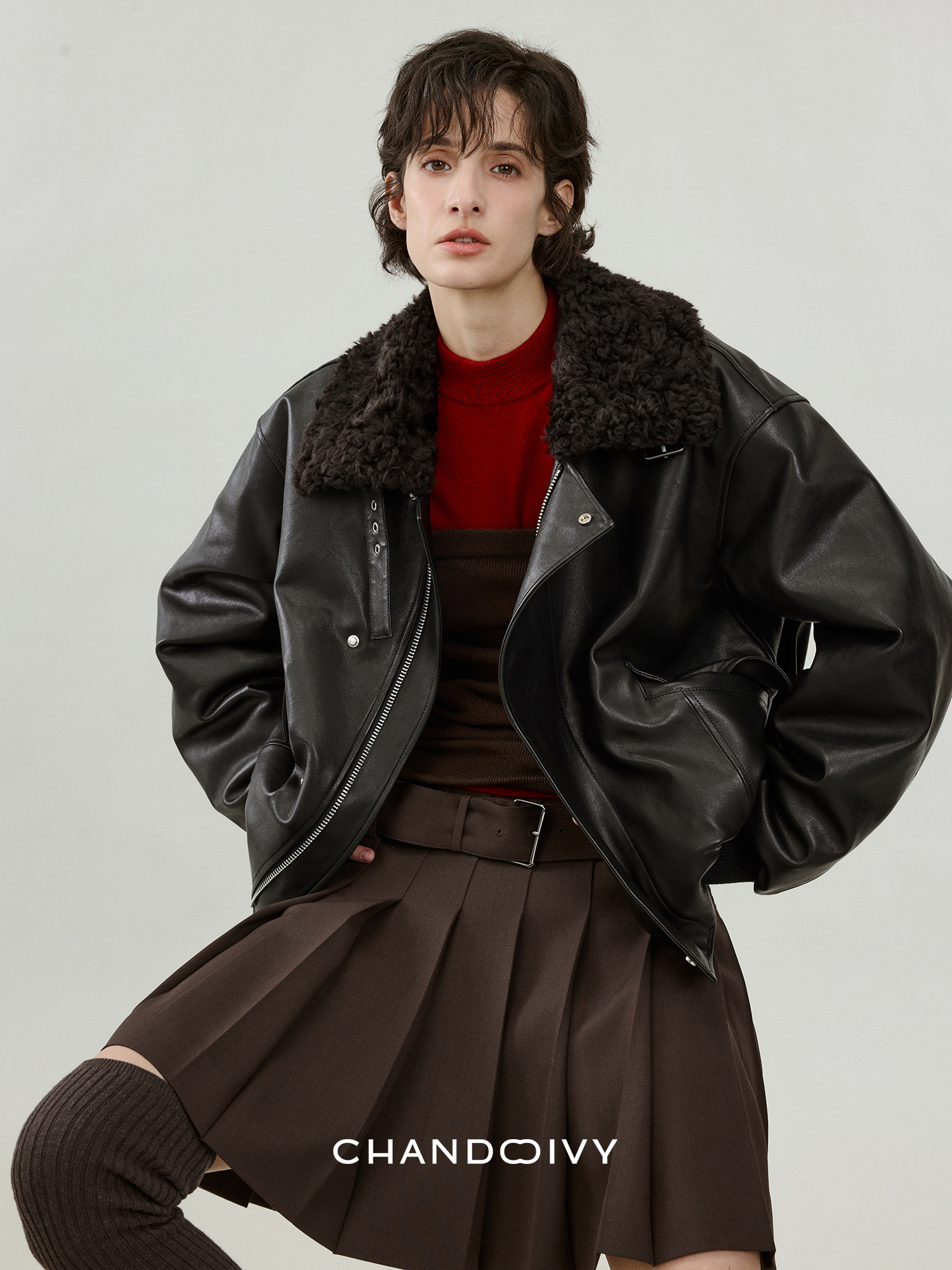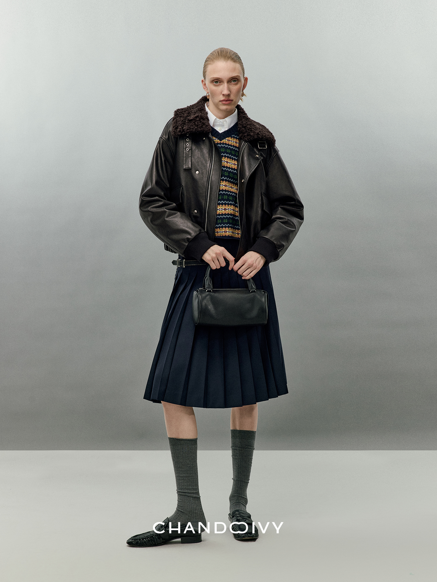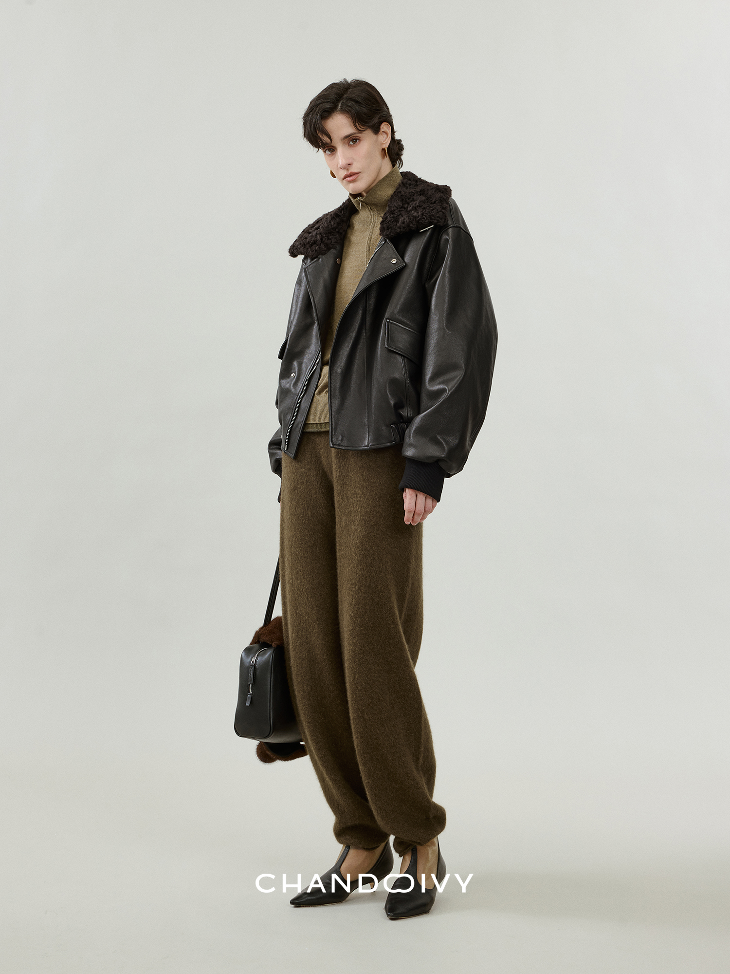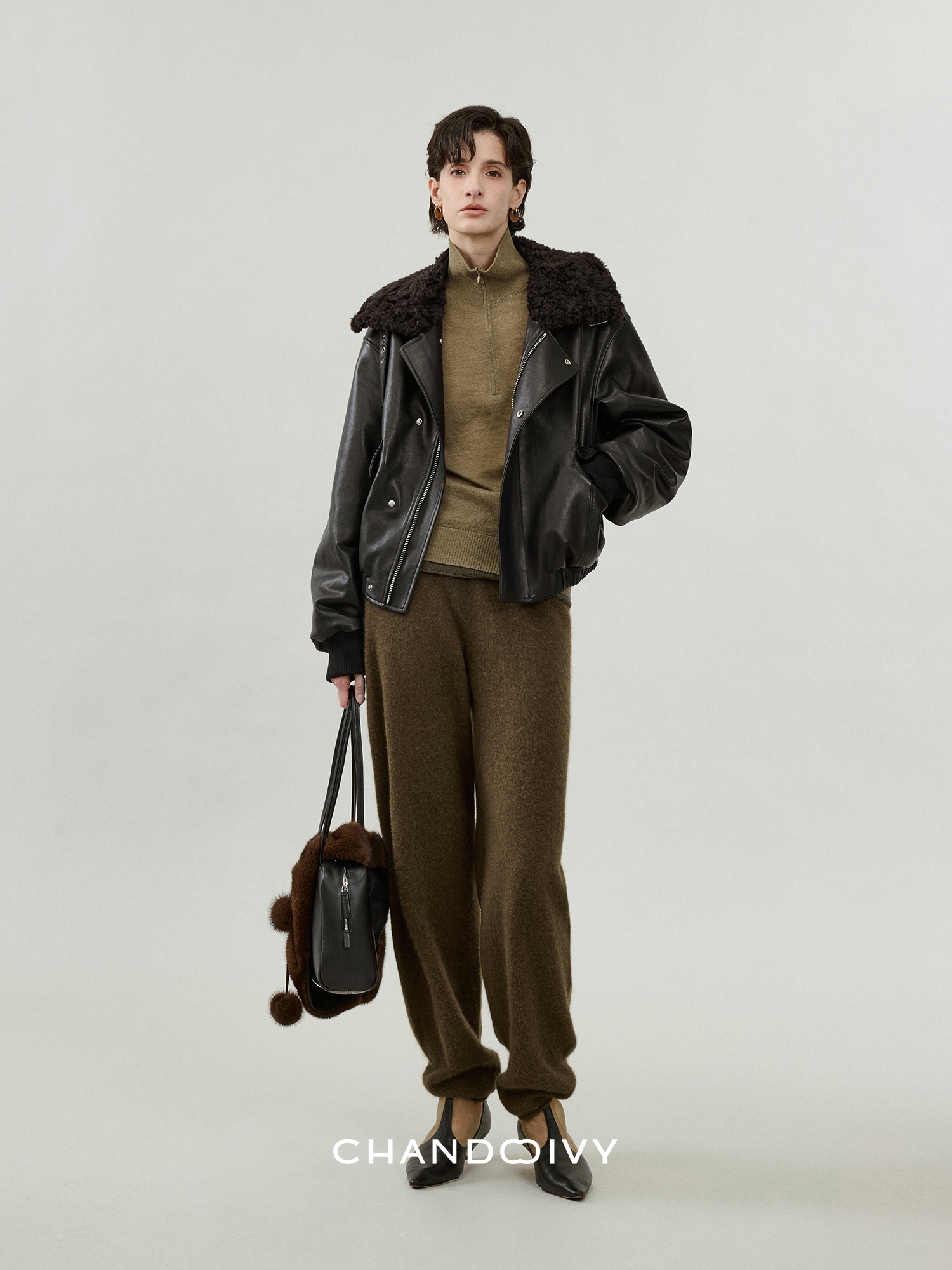 Chandooivy American Retro Full Vegetable-Tanned Goatskin 95 White Goose down Merino Fur Collar Leather down Jacket