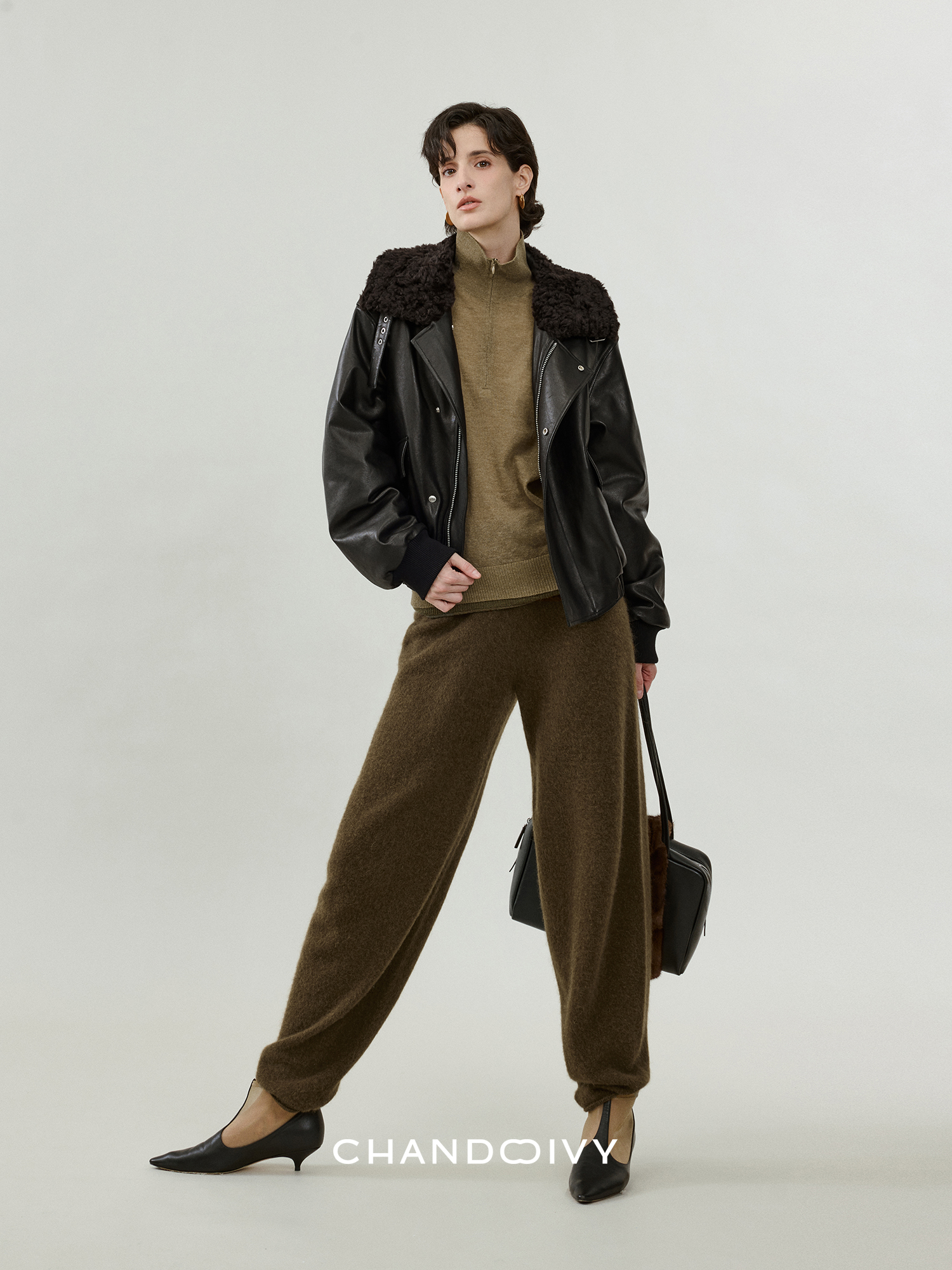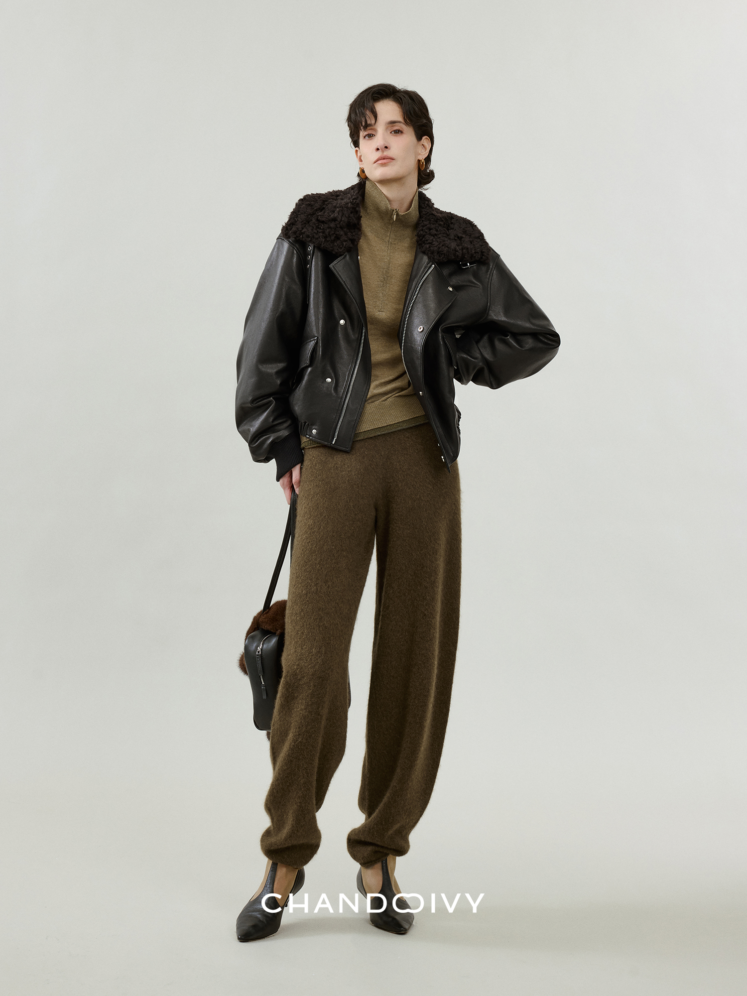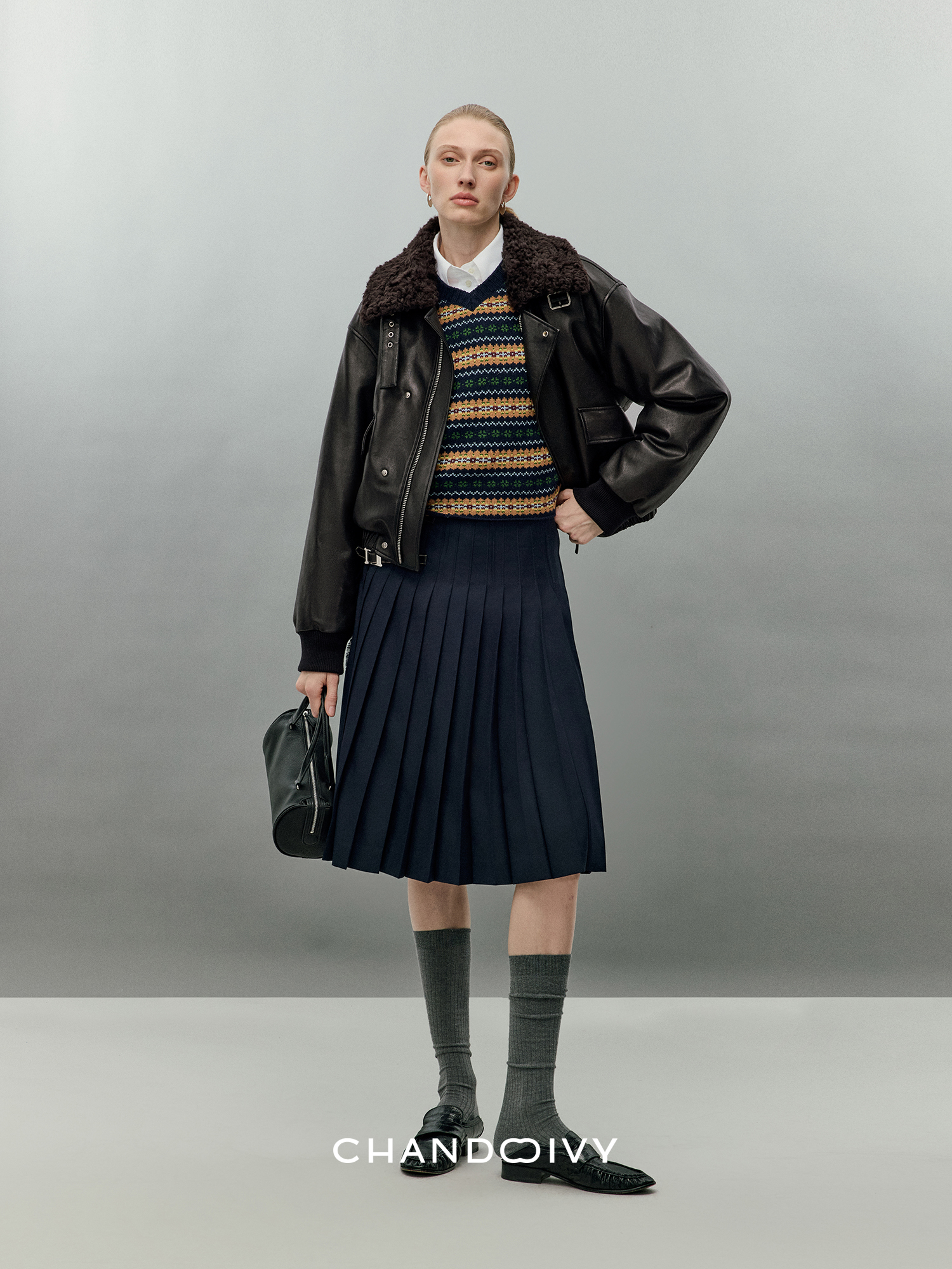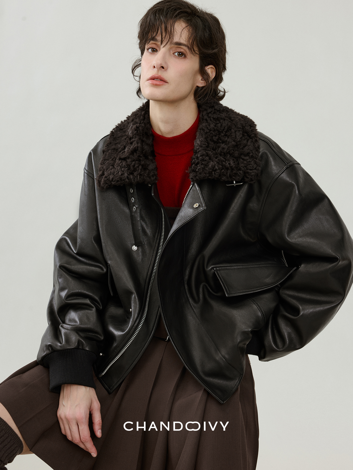 Chandooivy American Retro Full Vegetable-Tanned Goatskin 95 White Goose down Merino Fur Collar Leather down Jacket