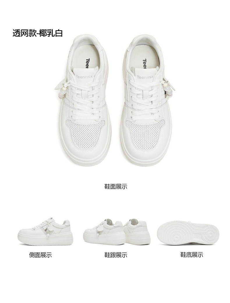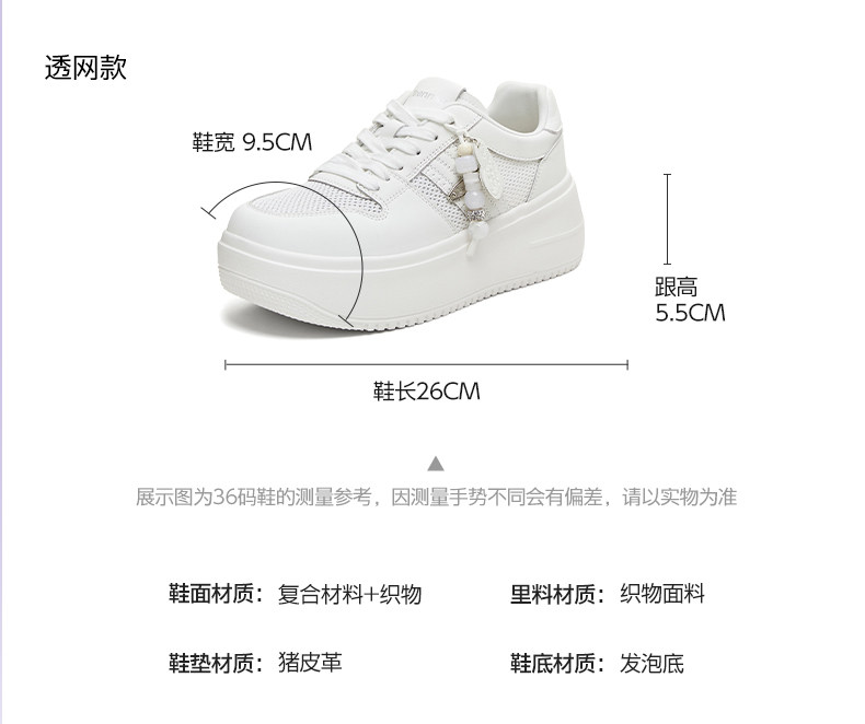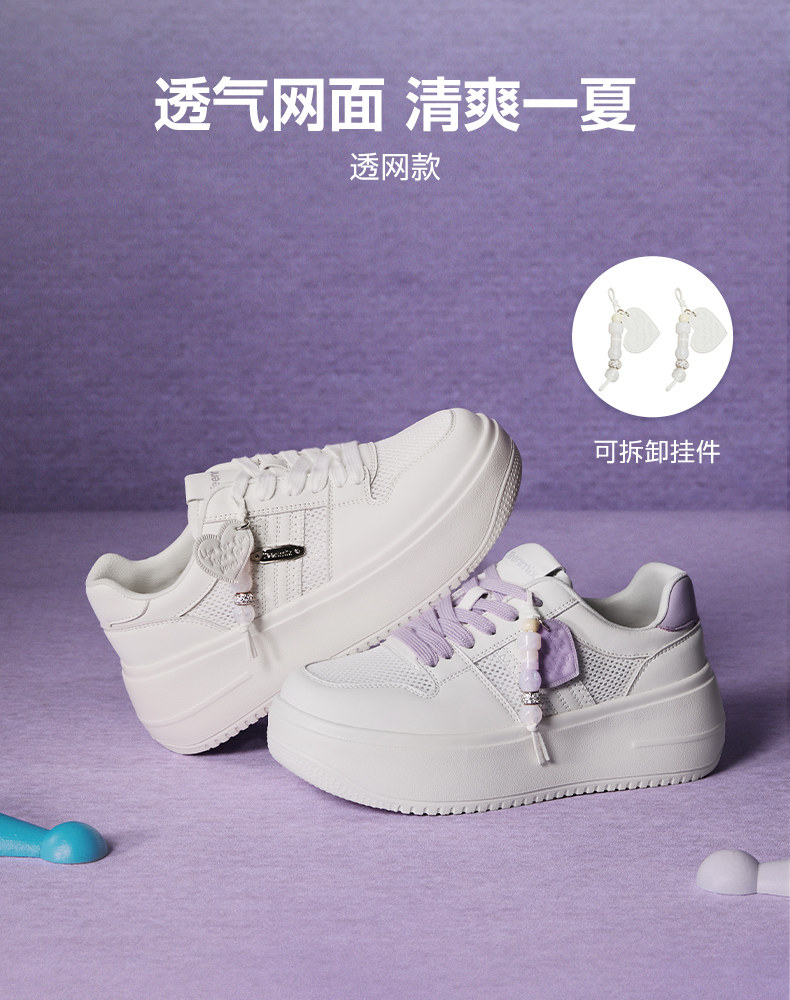 Hou Minghao's Same Style Tianmeiyi Mesh Breathable Rice Cake White Shoes with Thick Soles and Height-Increasing Design, Unisex Casual Sports Sneakers