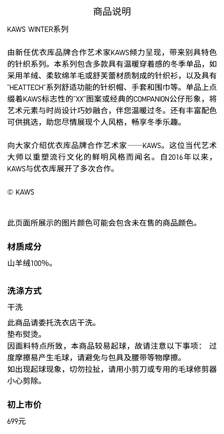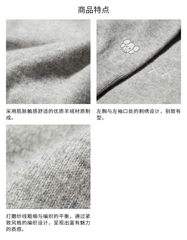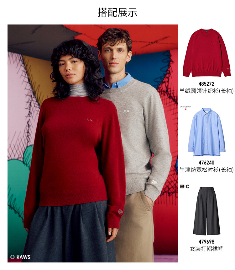 Uniqlo Men's and Women's Clothing Kaws Cashmere Crew Neck Knitwear Long-Sleeved Sweater 25 Autumn and Winter New Style 485272