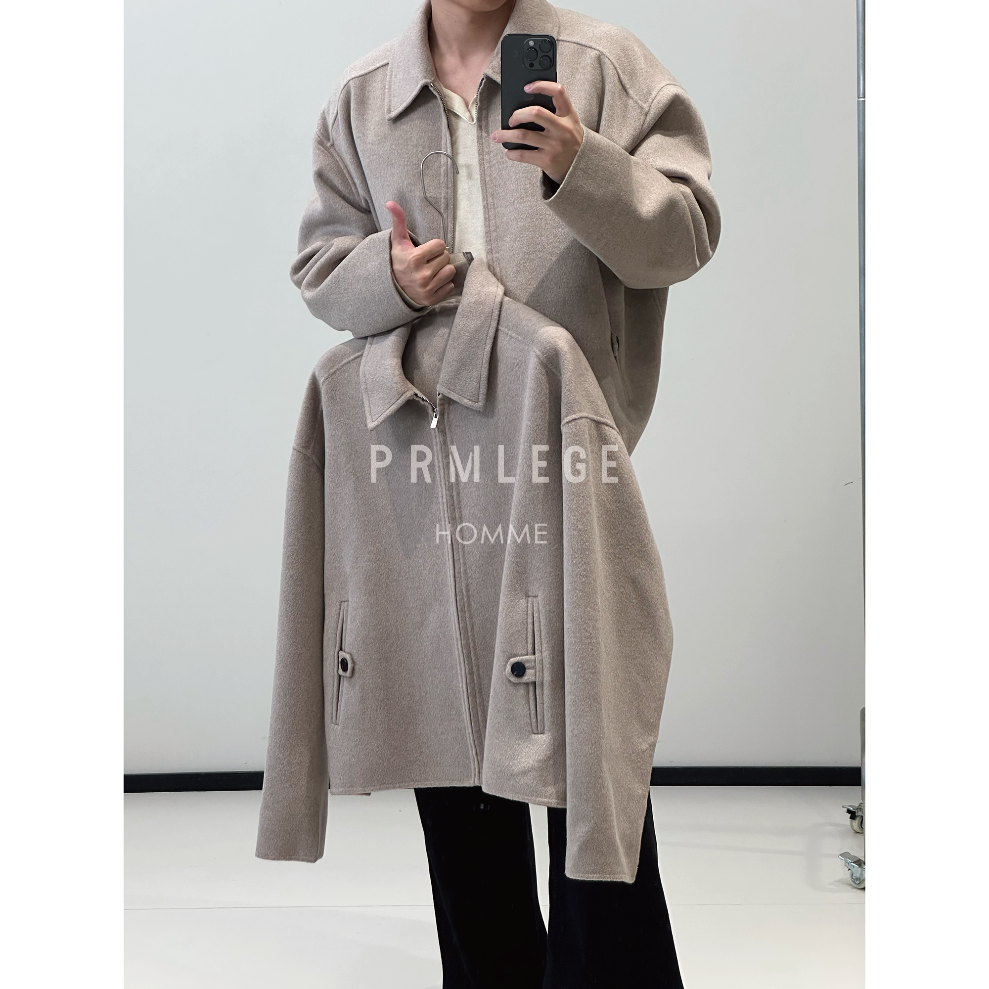 Prmlege "Cashmere and Sheep Wool Blend" 800G/Excella Zipper/Lapel Handmade Double-Sided Wool Jacket