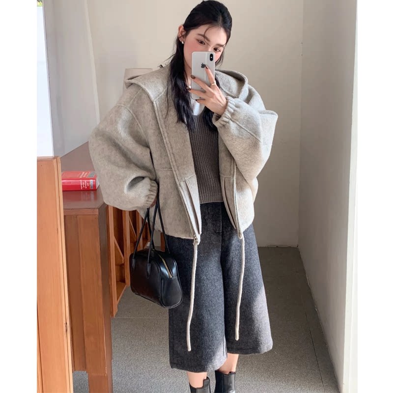 Unique and Super Stylish Gray Woolen Coat for Women in Late Winter, New Thickened Short Woolen Jacket for Winter 2025