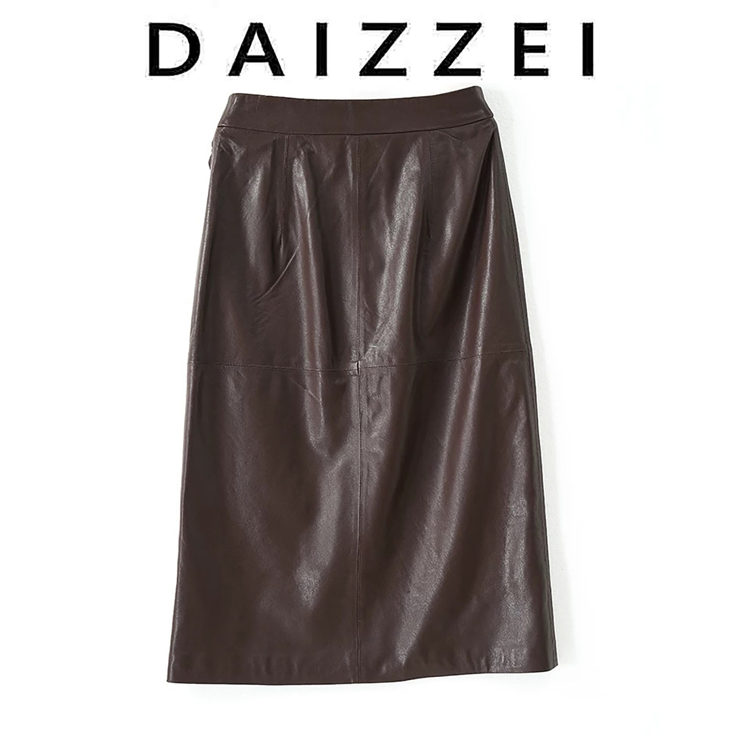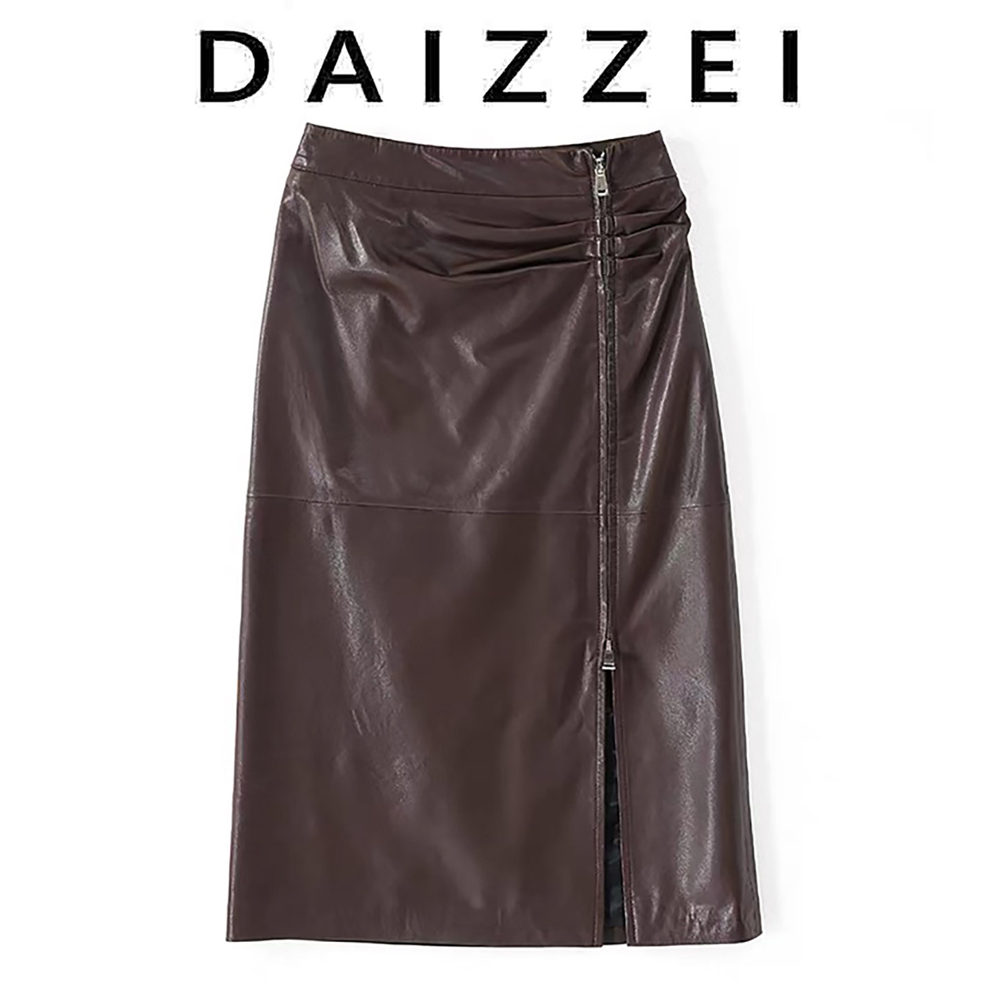 Daizzei~ Retro High-Waisted Slit Pencil Leather Skirt for Women, New Autumn Style, Elegant, Light Luxury, High-End Feel, A-Line Skirt