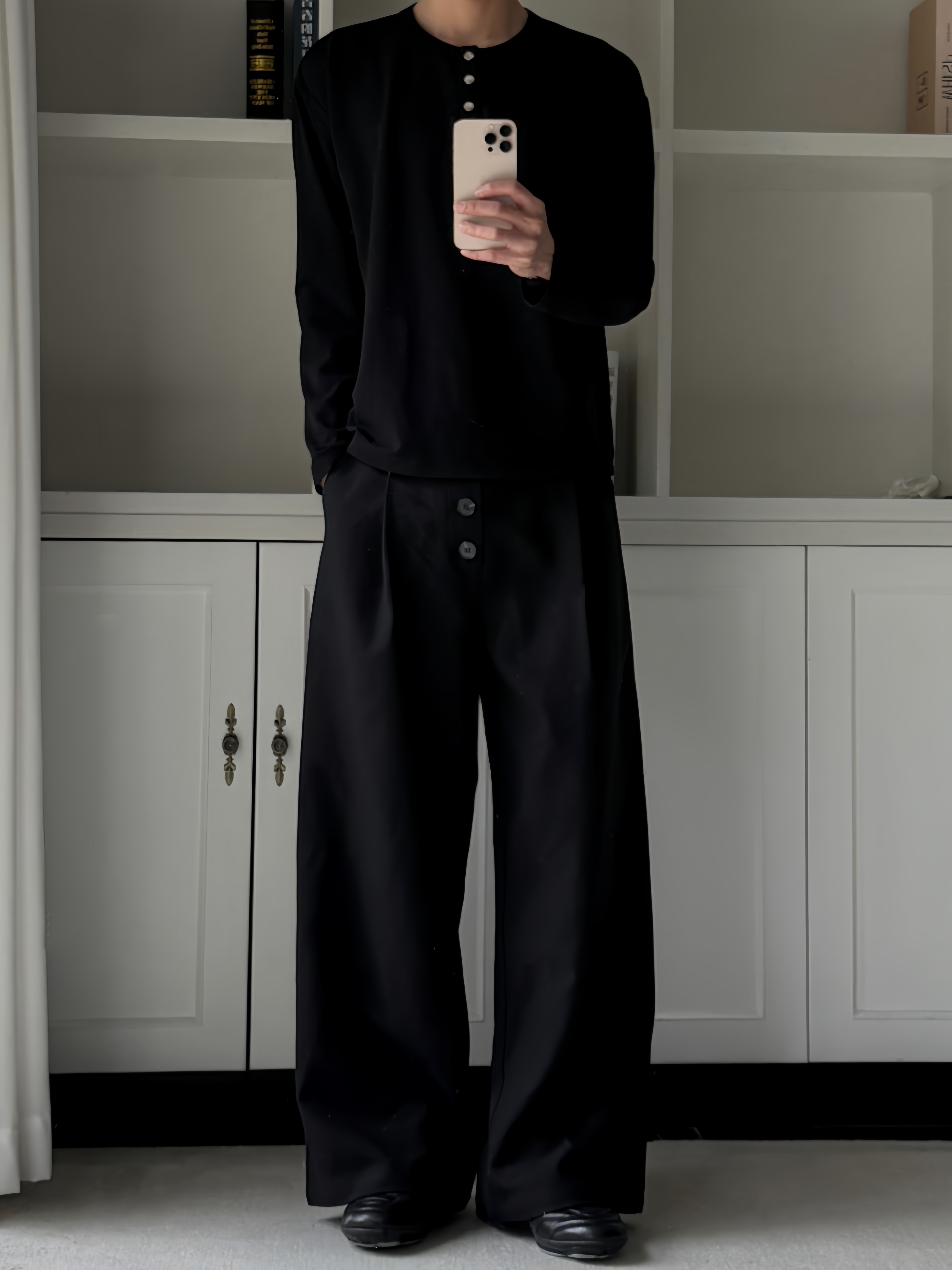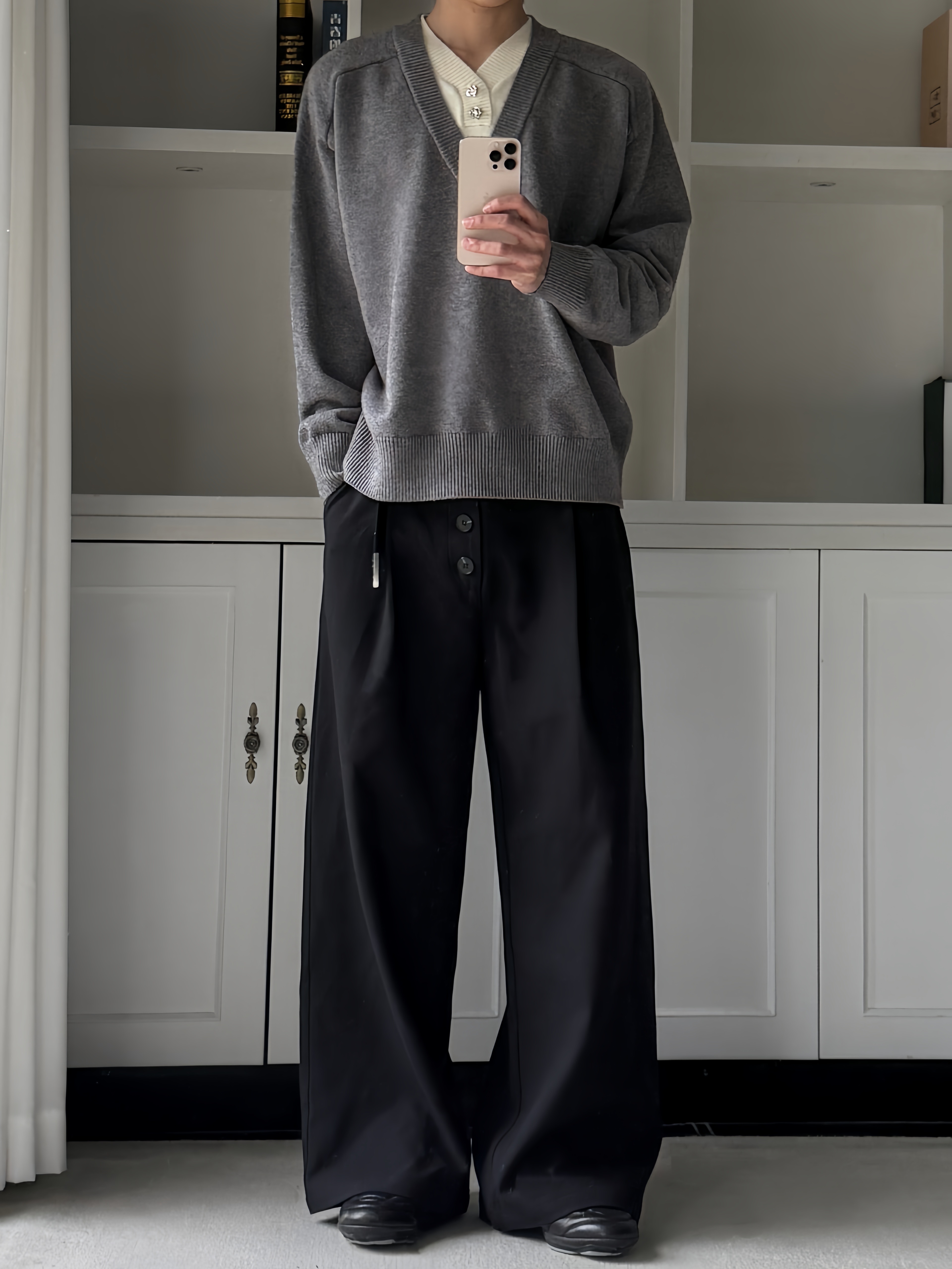 Xanvas Heavyweight Autumn and Winter Composite 650g Pleated Buttoned A-Line Wide-Leg Trousers, Old Money Style, Clean Fit, Versatile
