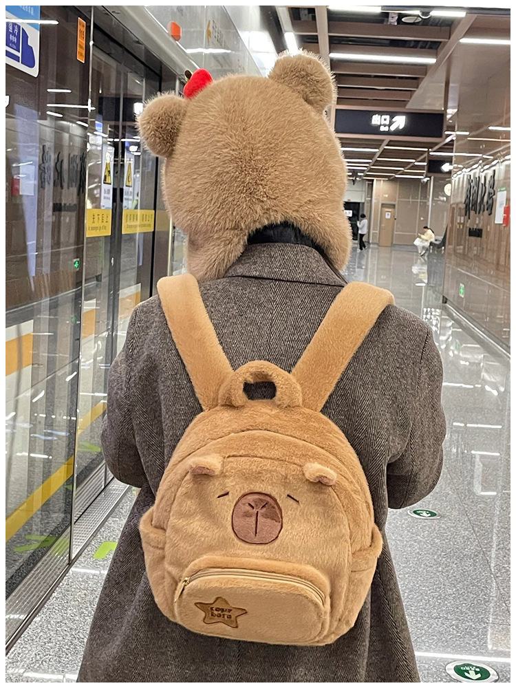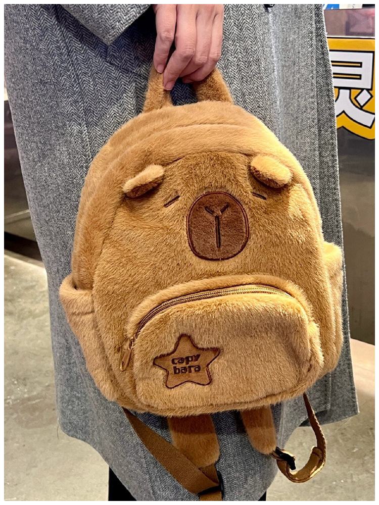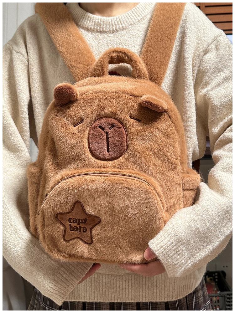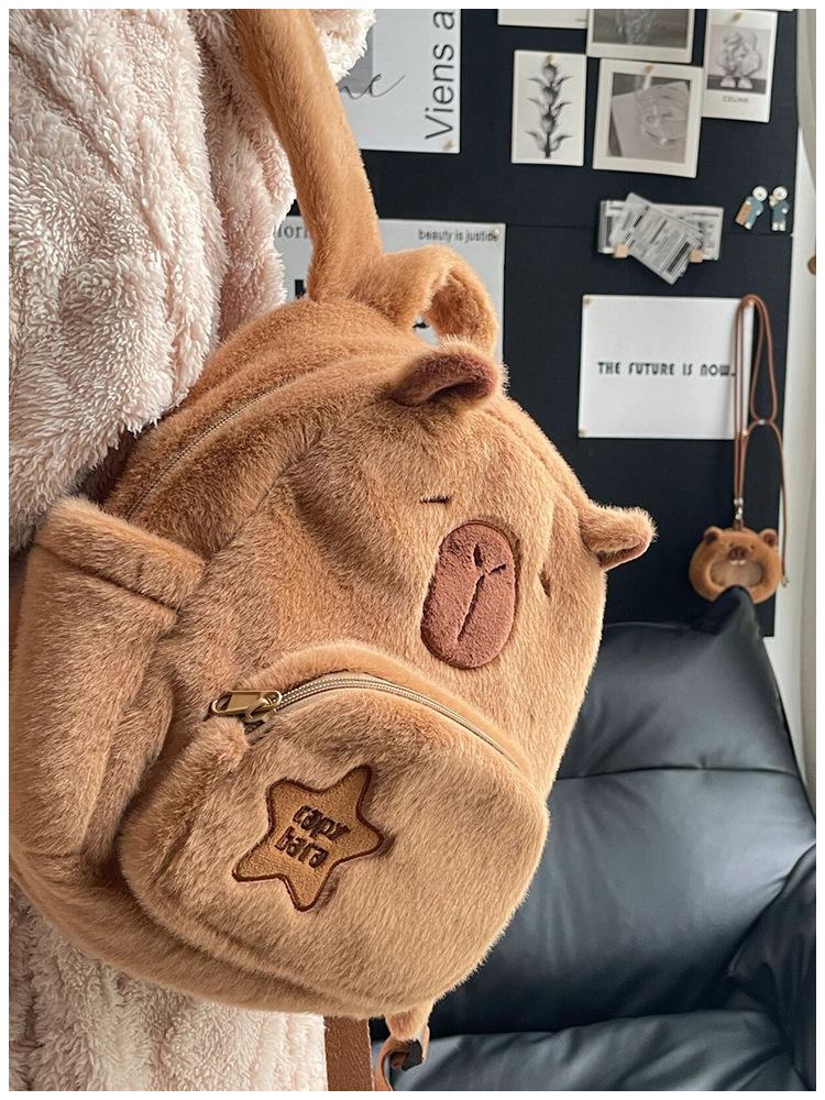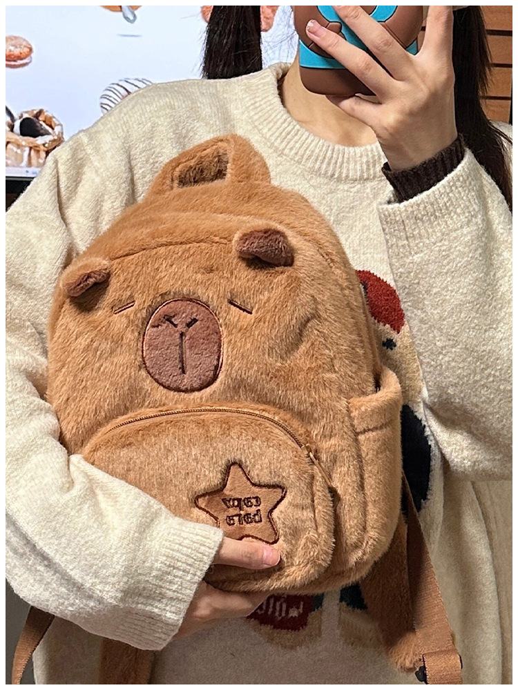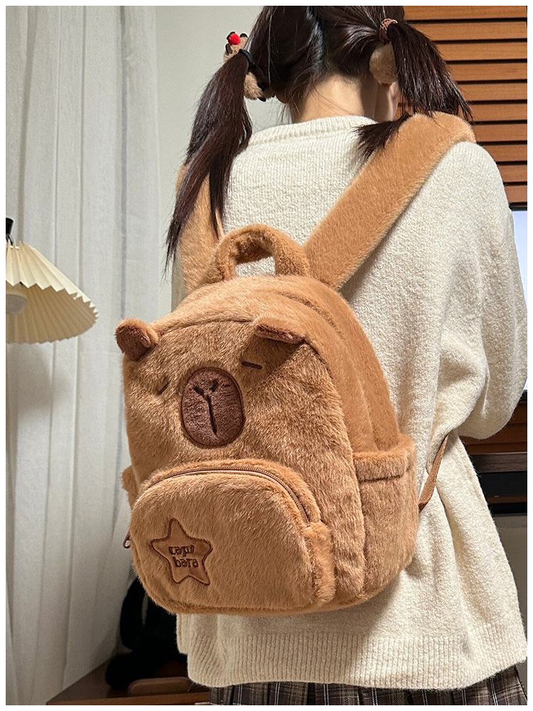 New Capybara Plush Bag Capybara Backpack Cute Versatile Furry Bag Girls Cartoon Student Small Backpack