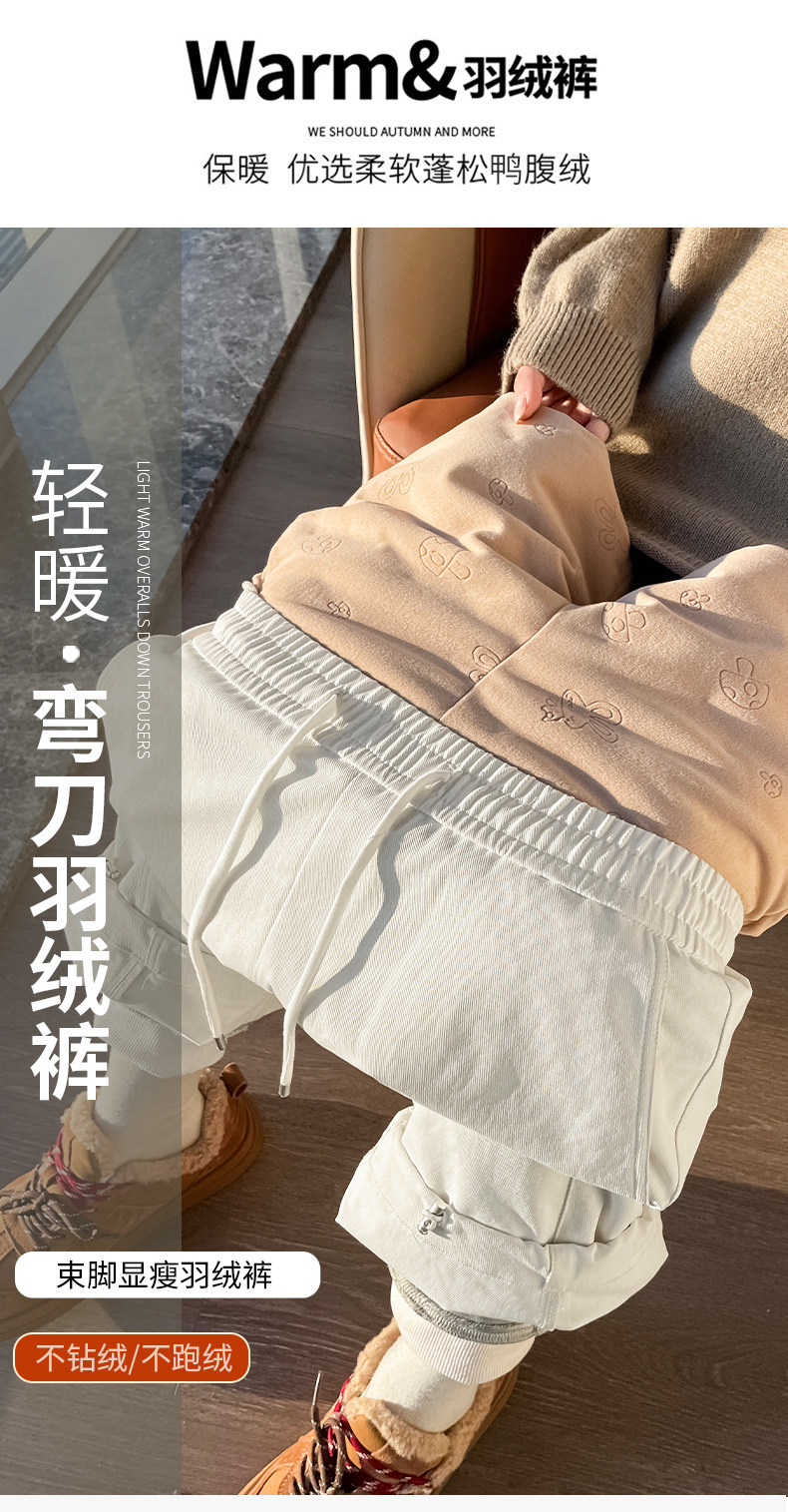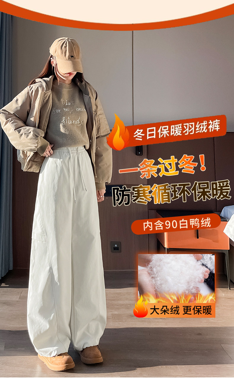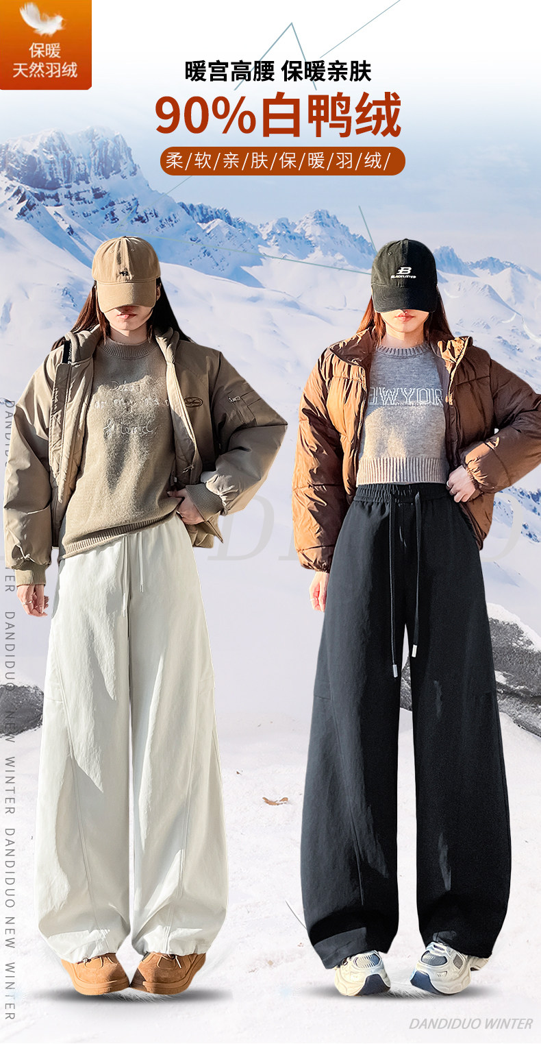 White Duck down Wide-Leg down Pants for Women, Winter Outdoor Wear, Cold-Resistant up to Minus 40 Degrees, Thickened and Warm Harbin Cotton Pants