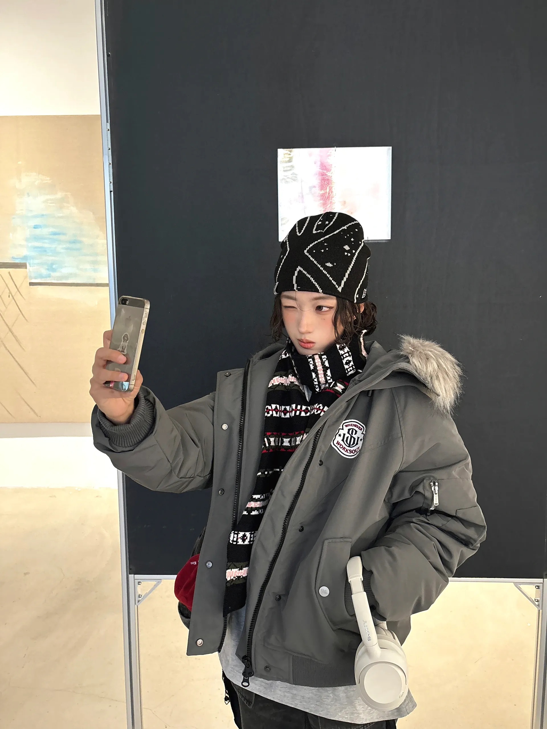 Workwear Parka Cotton Jacket for Women 2025 New Winter Cotton Coat with Large Fur Collar Thickened Couple's Korean Style Winter Jacket
