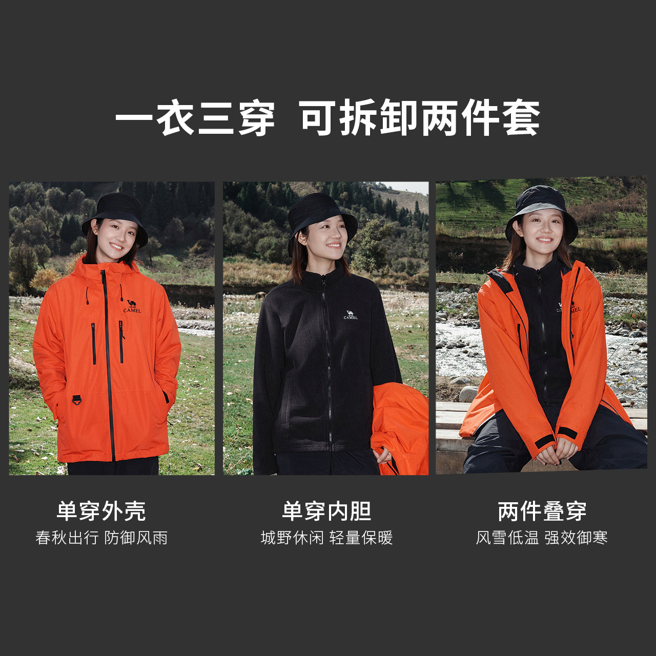 Camel Aurora Pink Jacket Three-In-One Unisex Winter Waterproof Coat Two-Piece Set with Fleece Lining and Thickened Mountaineering Clothing