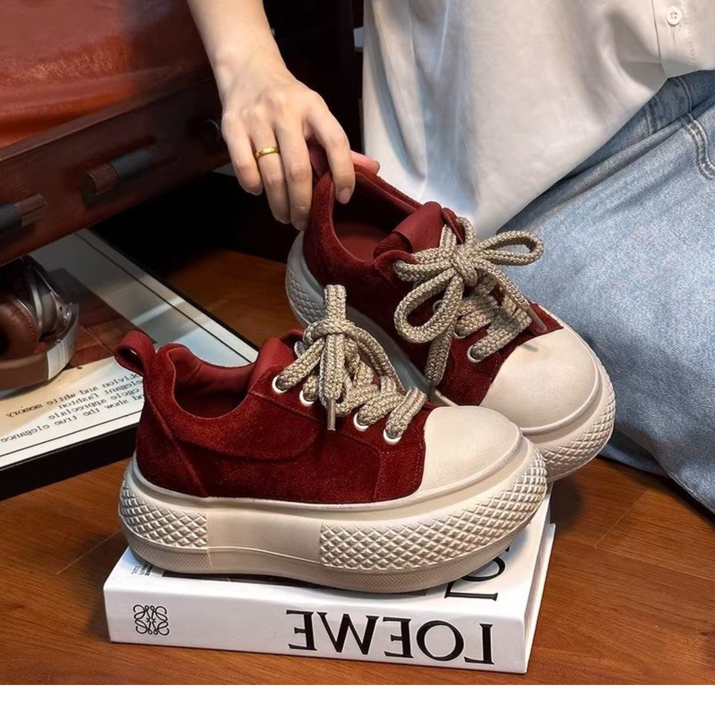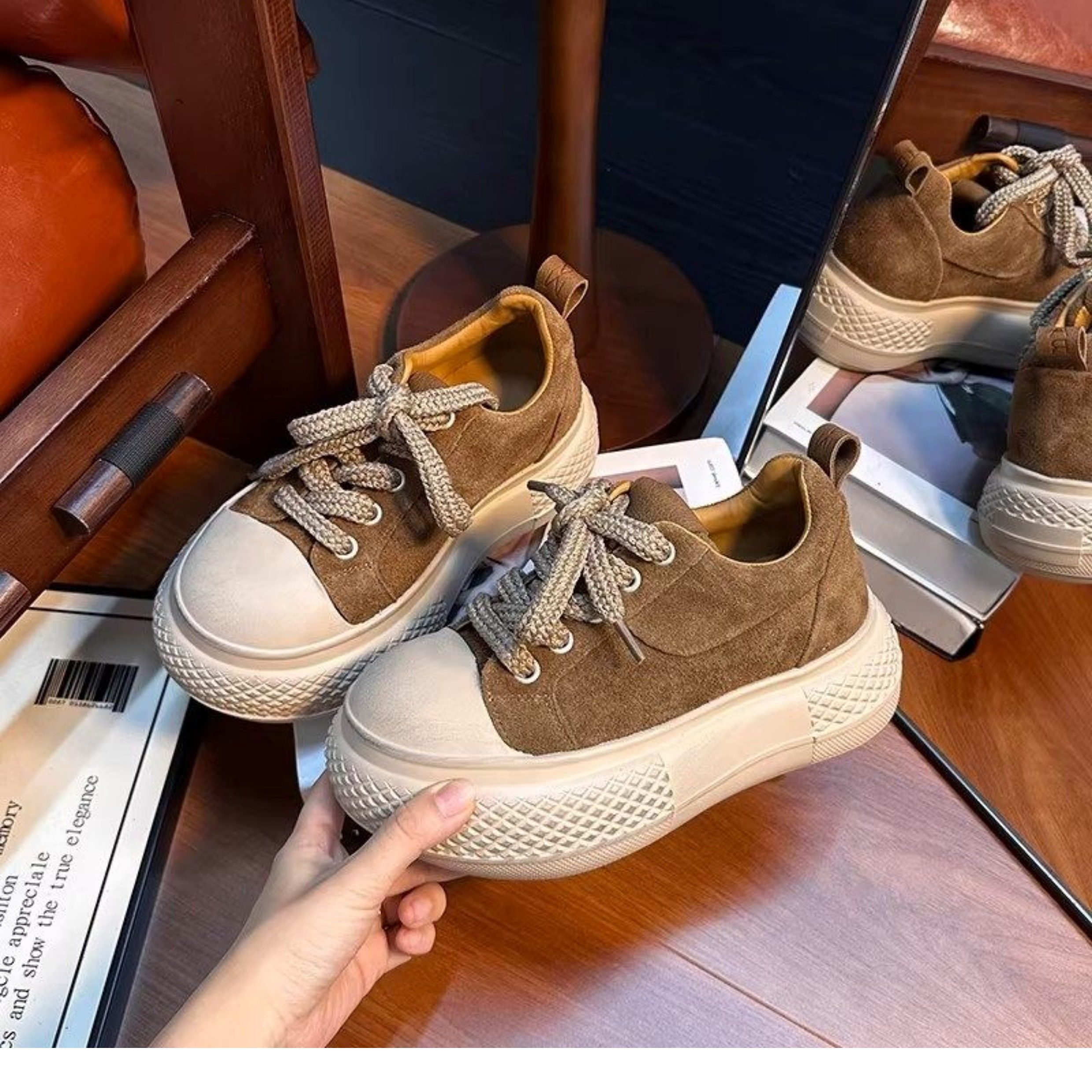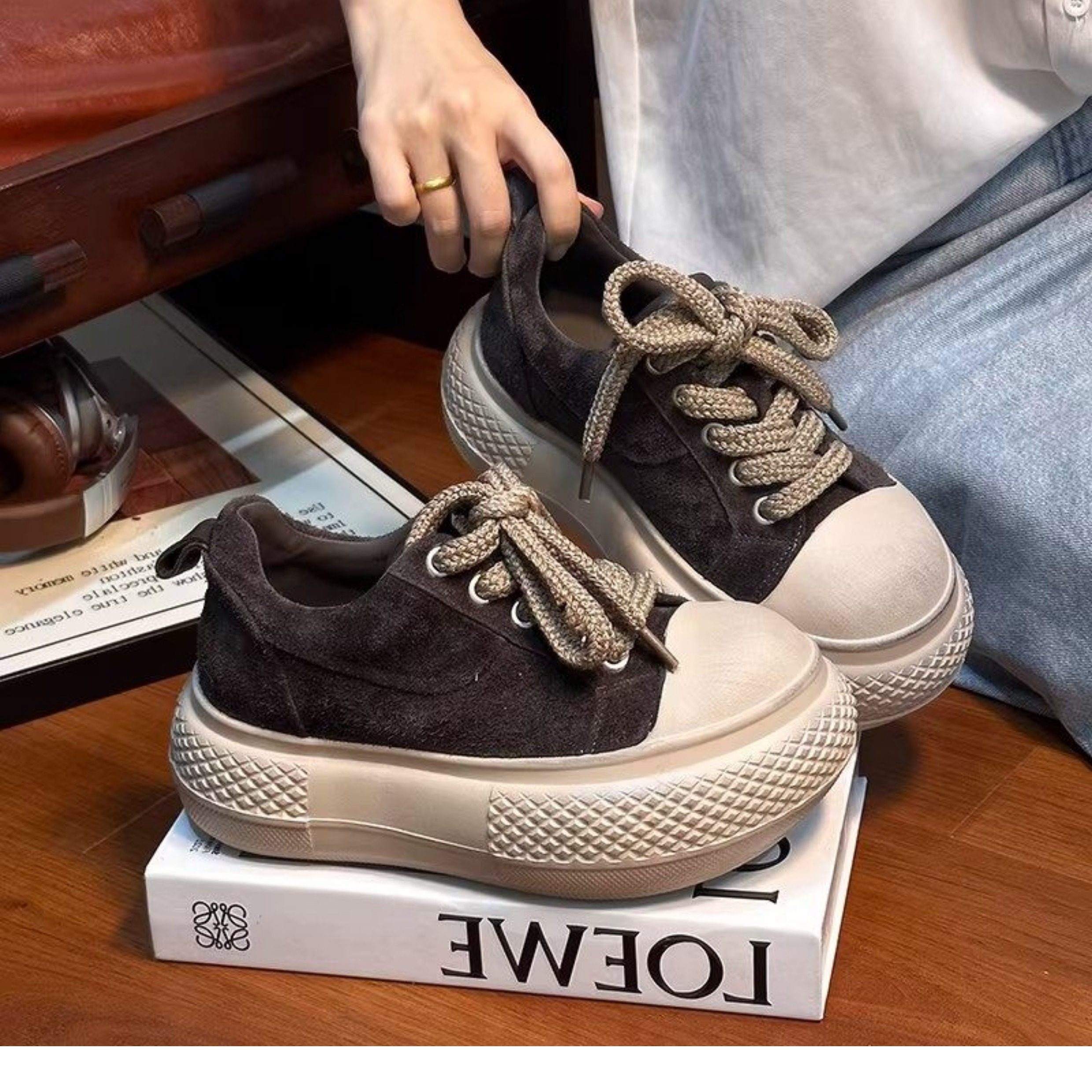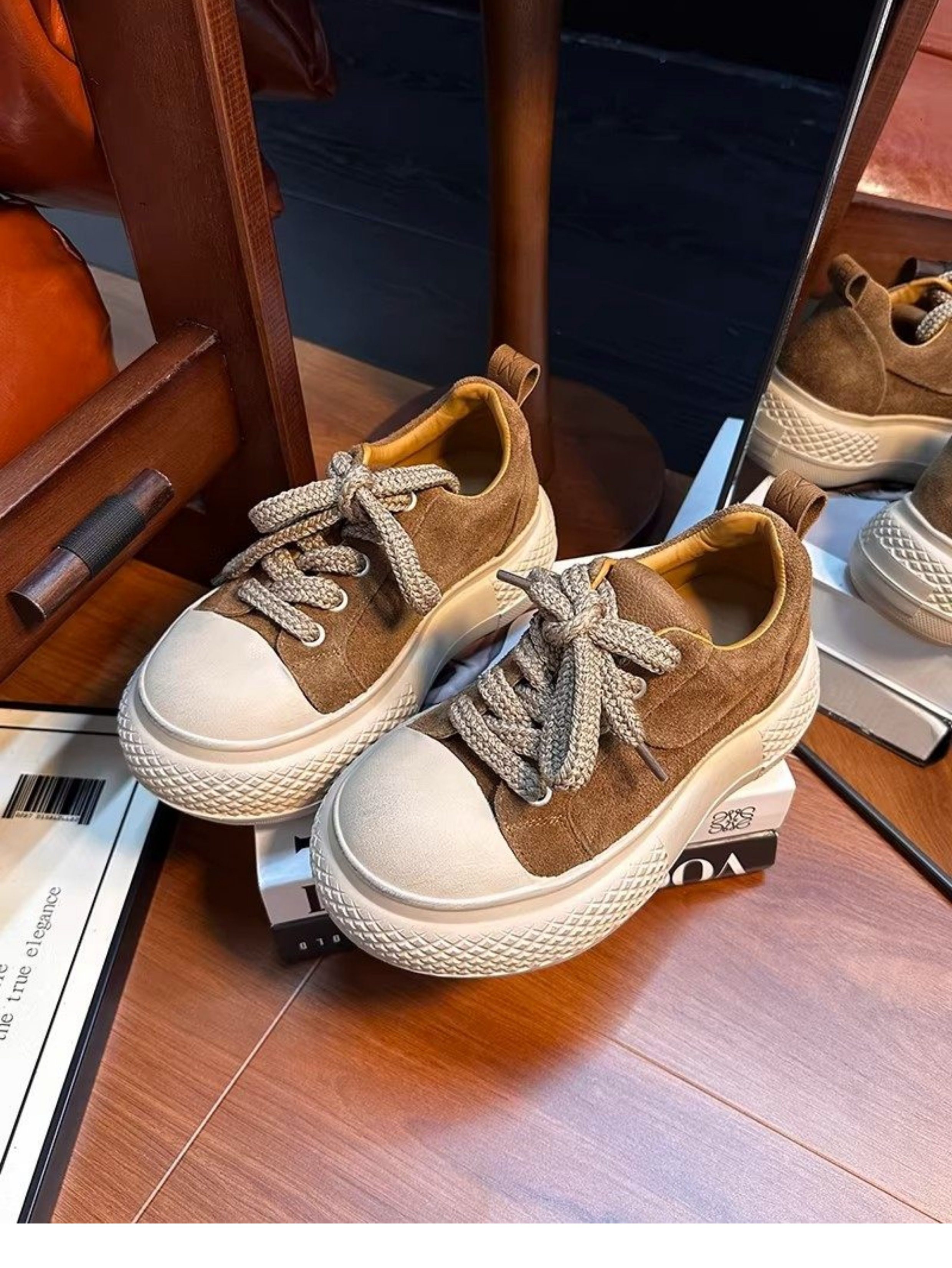 Hong Kong Retro Distressed Matte Leather Loafers for Women, Spring Fashion, Petite Thick-Soled Height-Increasing Casual Sneakers