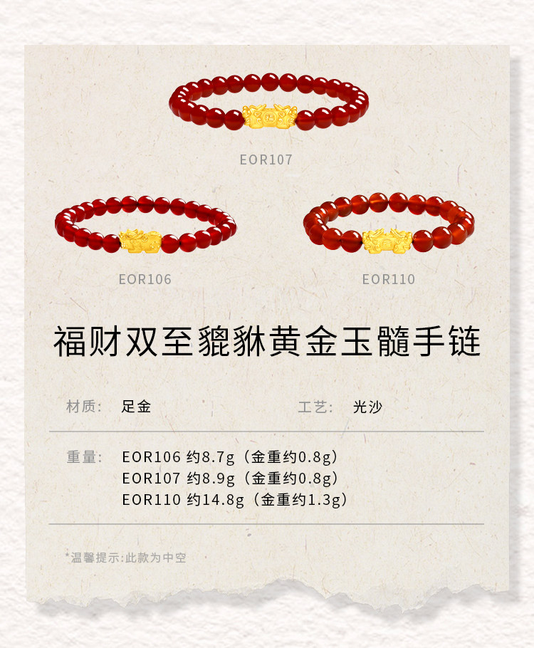 【Holiday Gift】Chow Tai Fook Cultural Blessings Exquisite Pixiu Pure Gold Red Agate Bracelet Gift for Couples